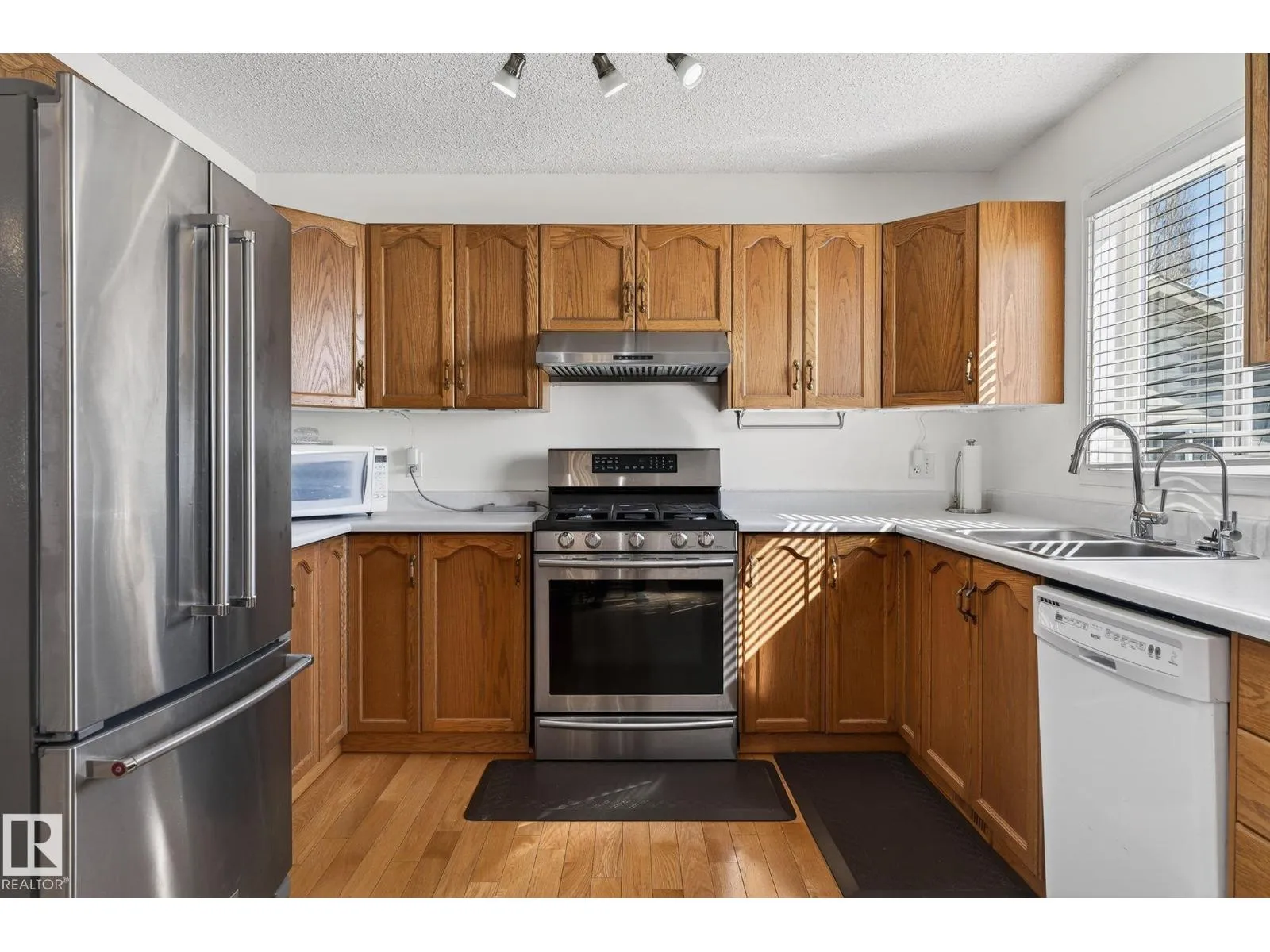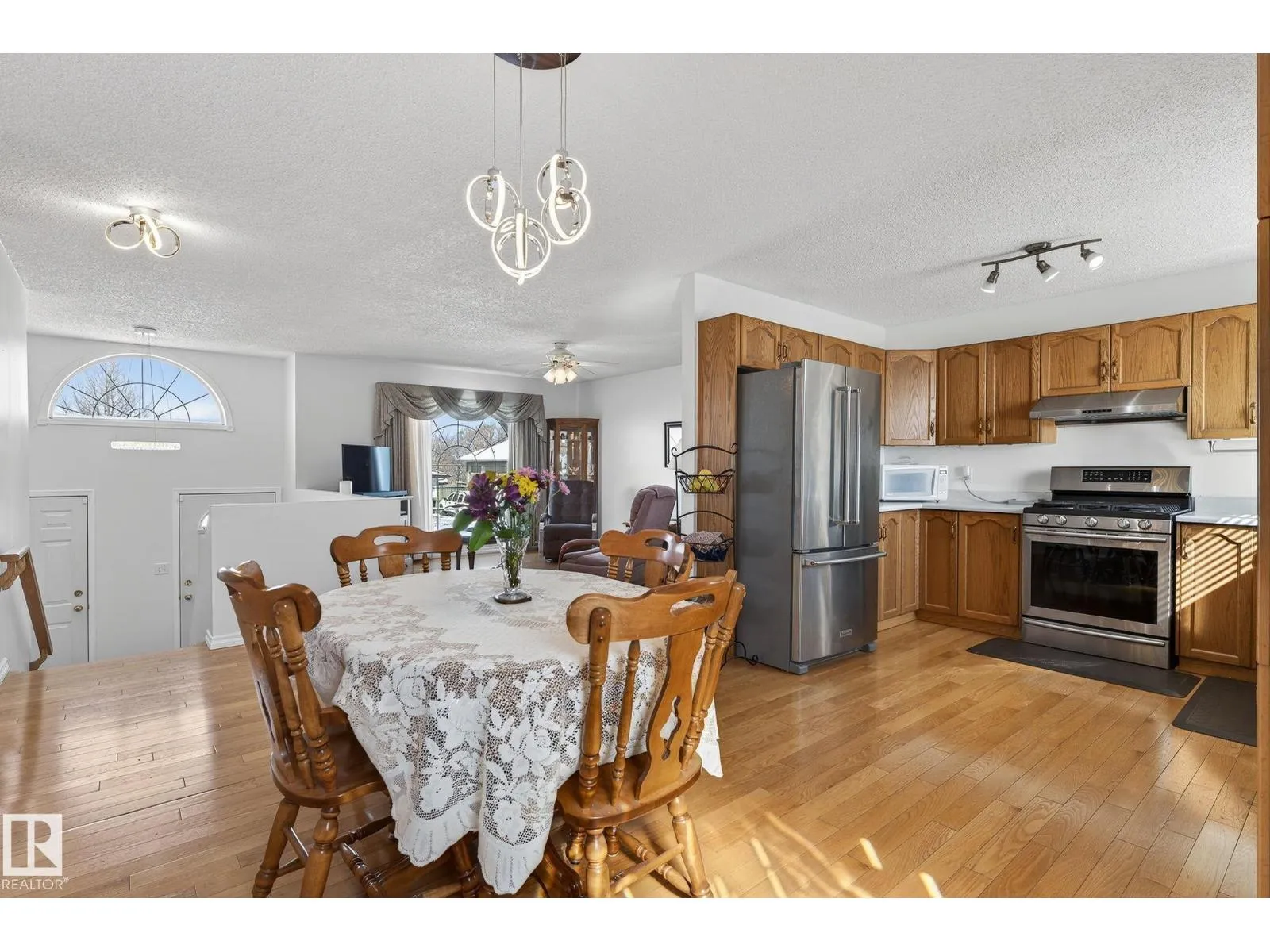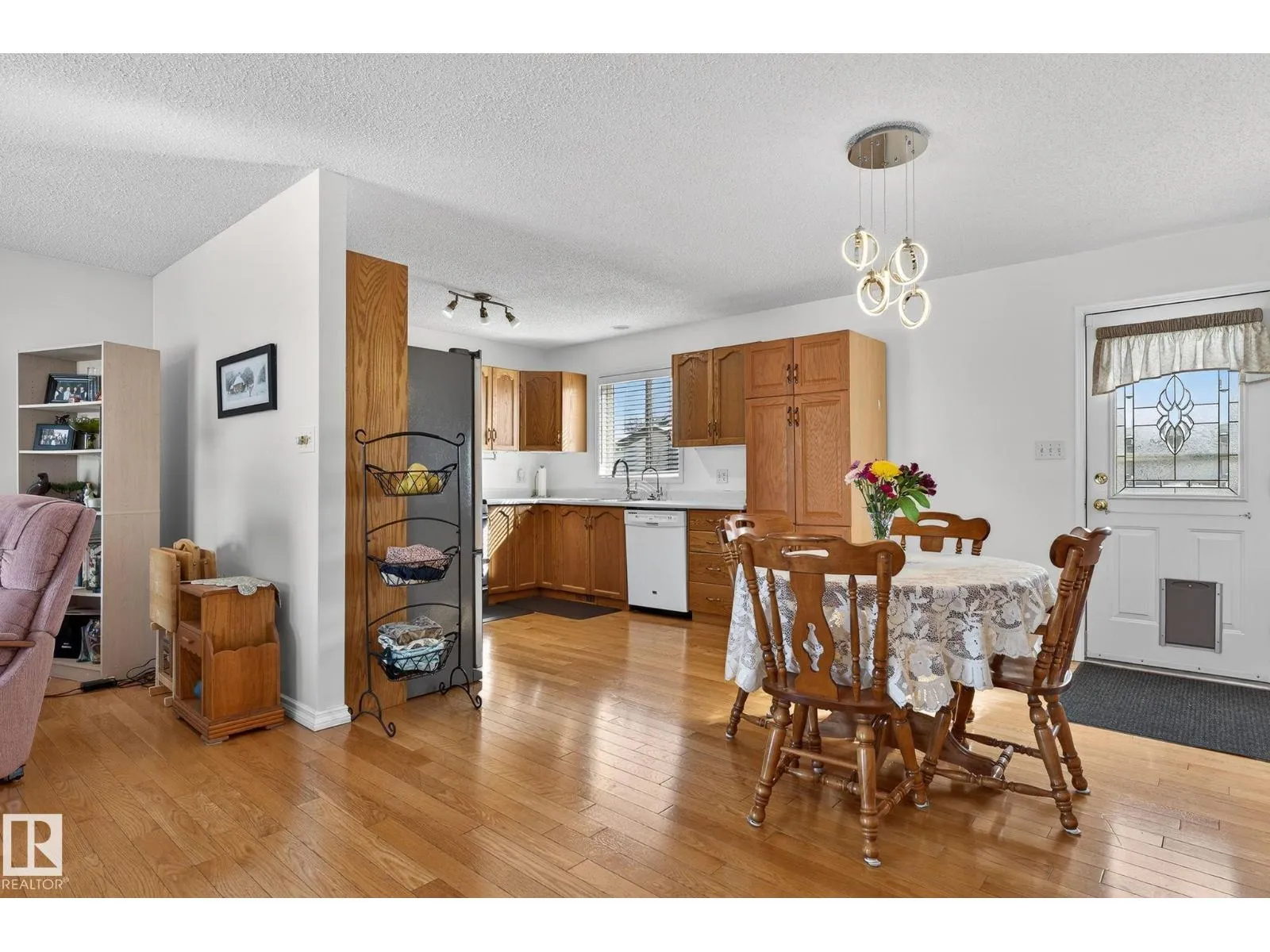 Beautifully maintained bi-level just steps from scenic river valley walking trails! This bright and functional home features a warm, open-concept main floor with hardwood flooring and a layout perfect for everyday living and entertaining. The spacious kitchen offers ample cabinetry and flows seamlessly into the dining and living areas. The large primary bedroom includes a convenient pocket door to the main bathroom, with a second bedroom completing the upper level. The fully finished basement adds valuable living space with a generous family room, an additional bedroom, full bathroom, and laundry area. Outside, the backyard is a true gardeners dream - thoughtfully designed with garden beds, rock landscaping, and plenty of space to relax or entertain. A fantastic opportunity to own in a desirable location close to nature, trails, and all amenities! (id:27476)