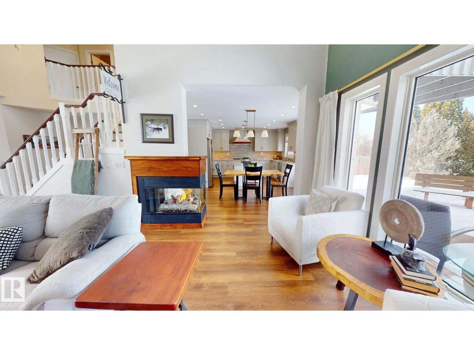 Stunning River Valley Retreat in Fort Saskatchewan where modern luxury meets natural privacy, only 20 minutes from Edmonton. Beautifully renovated 3 bedroom, 2.5 bathroom detached home, nestled on an expansive lot that backs directly onto the pristine River Valley, this property offers a rare blend of high end modern upgrades and serene outdoor living. The main floor features a spectacular gourmet kitchen(2023) by Mod Kitchens. Thoughtfully designed for both function and style, it boasts: Custom solid maple cabinetry, quartz counters with premium hardware and clever storage solutions. New High end Bosch package, speed oven/microwave and matching wall oven. 36, 5 burner gas range, 18,000 BTU main burner. Dual deep sink, garburator, hot water dispenser and commercial taps. Seamless flow into living room with 3 sided fireplace. New LVP floor throughout for durability and style. New carpet in master bedroom and basement. New doors throughout the whole home. Other new additions include hot water ta (id:27476)