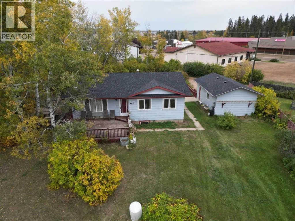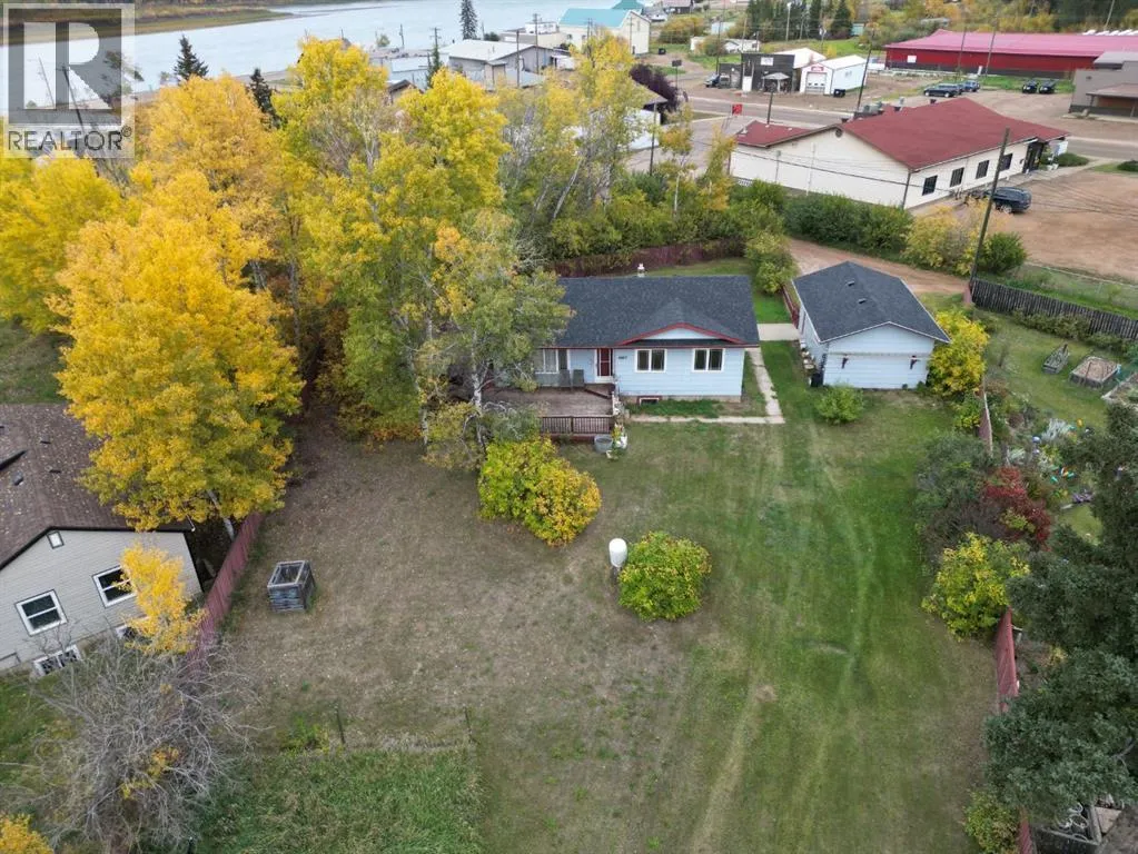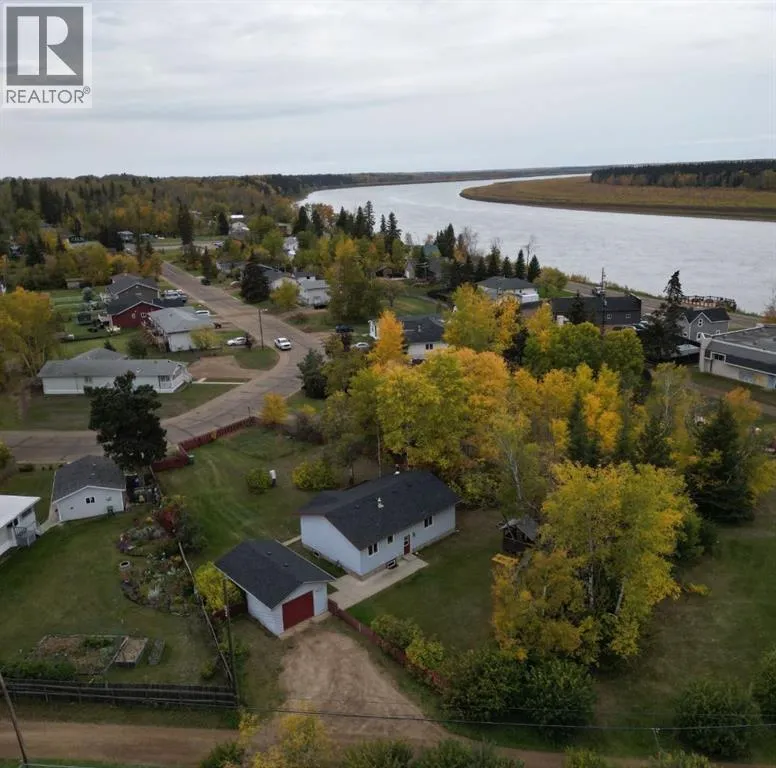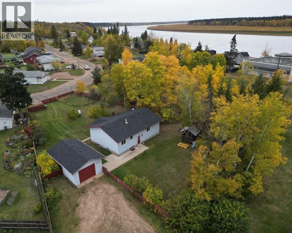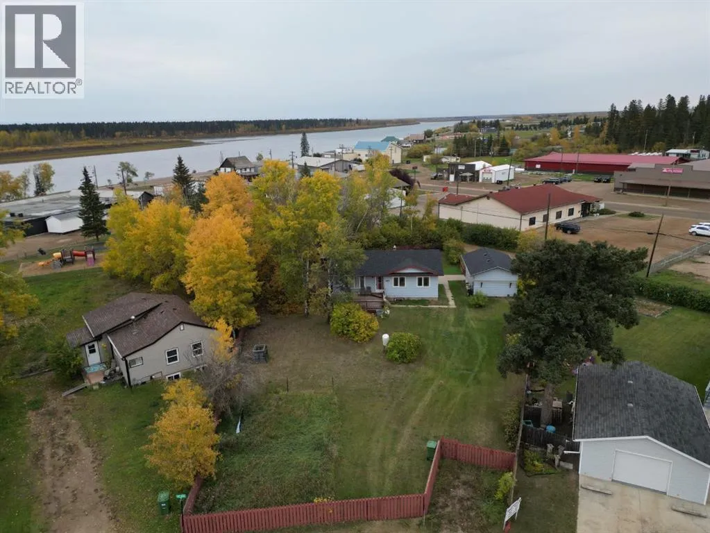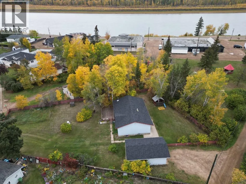 Nestled in the heart of Fort Vermilion, this charming bungalow sits on a massive fenced lot, just steps from the breathtaking Peace River. Home just got new shingles on the roof, and is priced to sell at only $230,000! The spacious main floor offers three bedrooms, a full bath, and an inviting open-concept living, dining, and kitchen area, perfect for entertaining or cozy nights in. Step outside onto the wraparound deck, where you can enjoy the peace and quiet of evening sunsets in your expansive outdoor living space. The basement is nearly complete and features 2 bedrooms, a laundry room and a 3 piece bathroom. The main area features a wood stove for additional heating source. A detached 16 by 26 garage provides sheltered parking, with front and back alley access for added convenience. Ideally located near schools, the grocery store, and the hospital, this home is a rare find in a fantastic location. Donât miss outâcome see if this charming bungalow is the perfect fit for you! (id:27476)