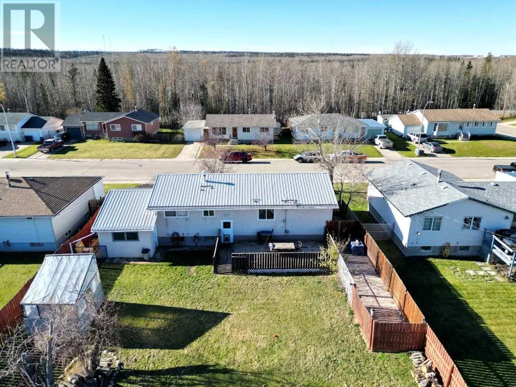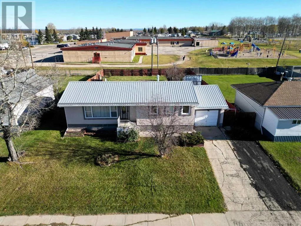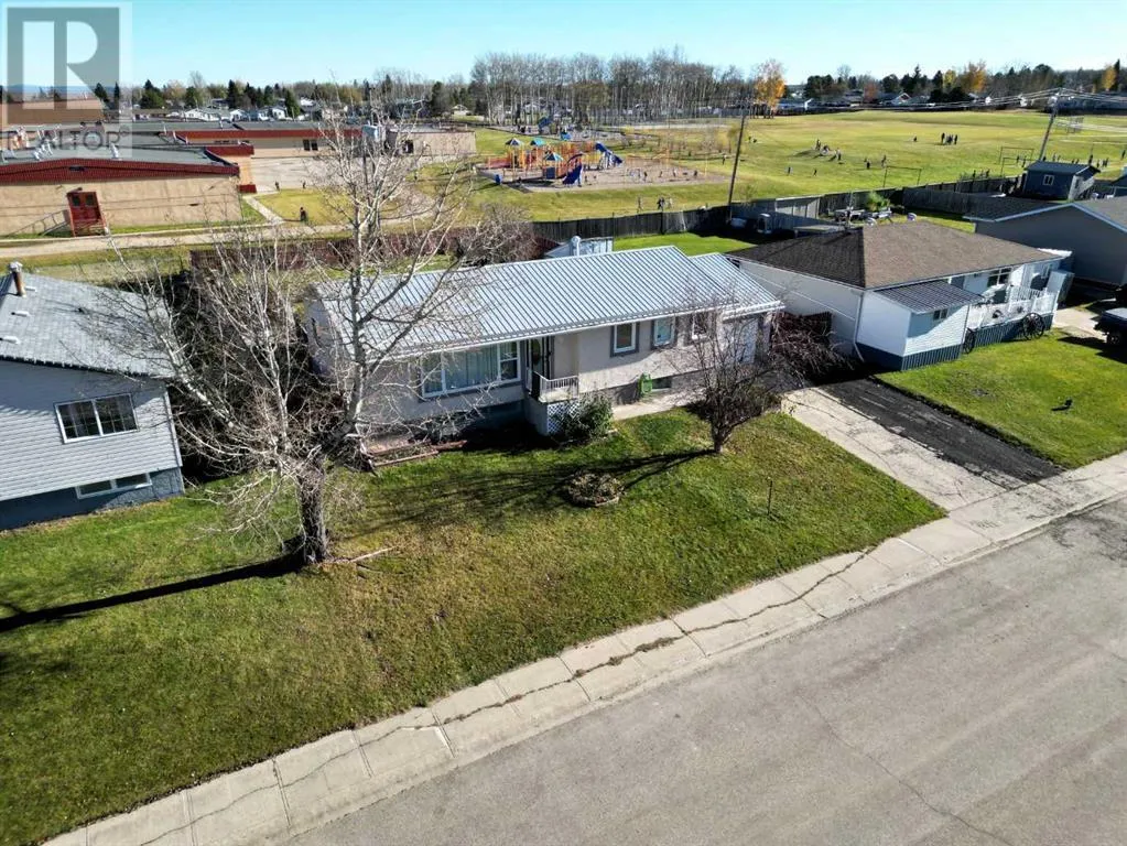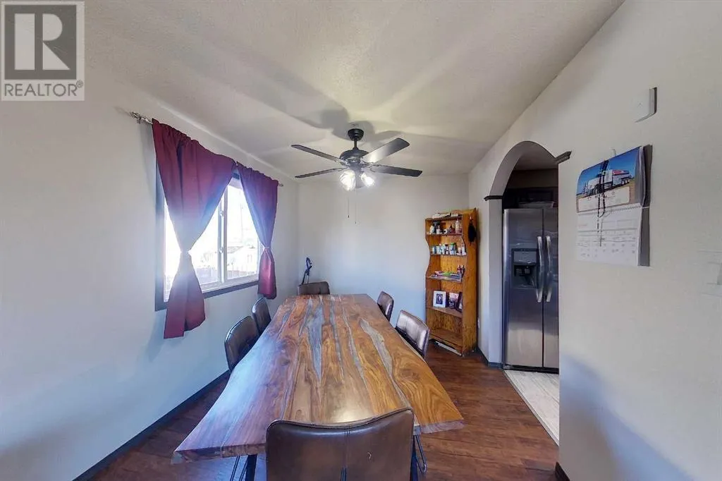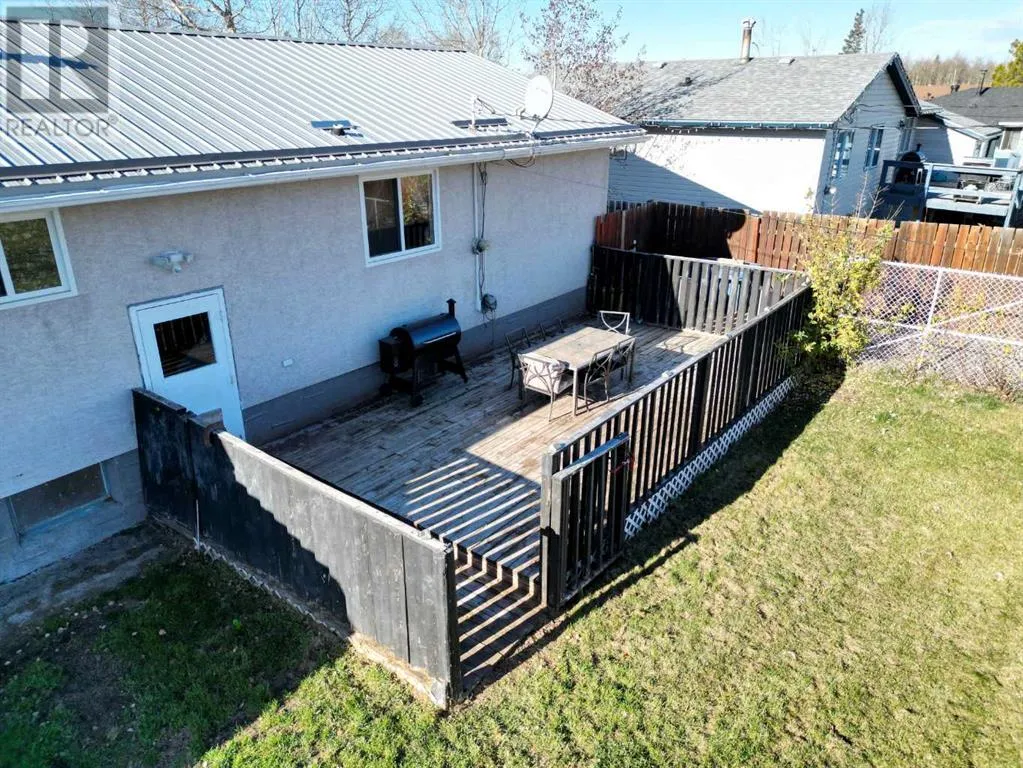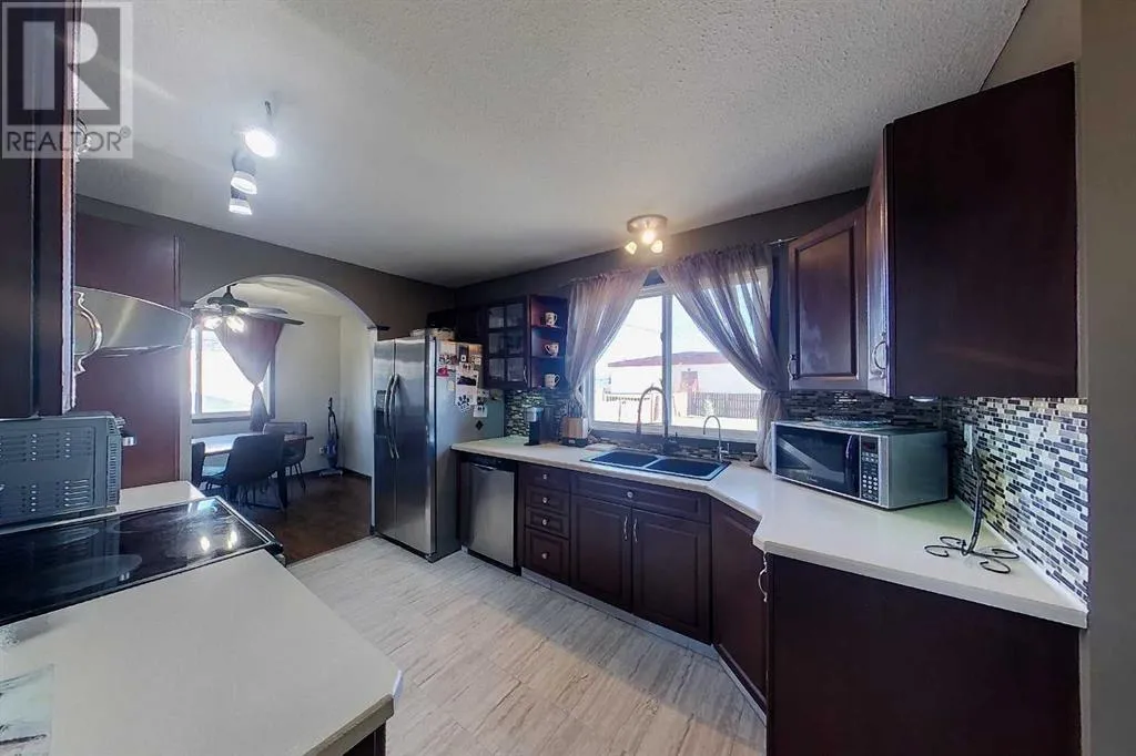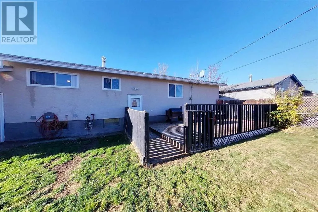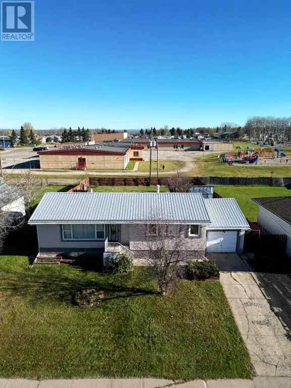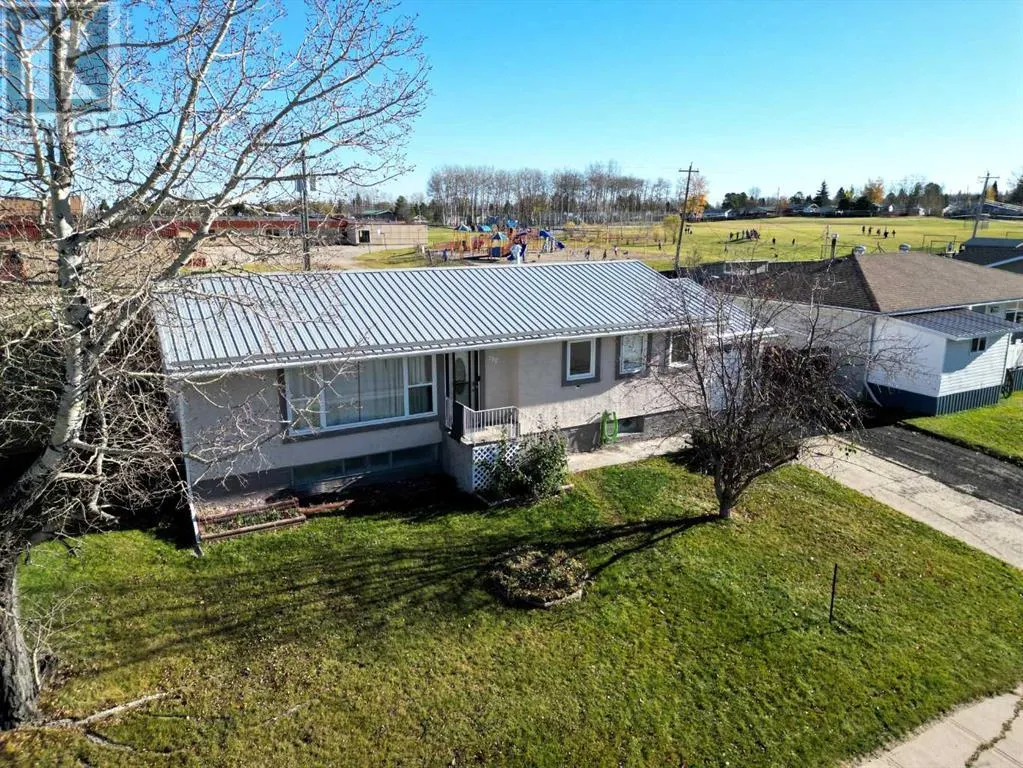 This charming 4-bedroom, 2-bath bungalow boasts a durable metal roof and is perfect for families. The open living and dining room lead to a well-appointed kitchen with stainless appliances, including a fridge, stove, and dishwasher. For clean, purified water, it features a water purification system.Upstairs, youâll find 3 bedrooms and a 4-piece bathroom with tile flooring. The laminate flooring extends into the kitchen, which has laminate counters and a built-in hood fan. The spacious backyard backs onto a school field, offering ample outdoor space with a dog run, a greenhouse, and a large deck. Plus, thereâs RV parkingIn the basement, thereâs a recreational room, an office, a 3-piece bathroom, and a 4th bedroom. The extra-large utility/laundry room is perfect for handling household chores. The basement features carpet and linoleum, with a large storage area under the stairs.Enjoy cozy evenings with a firepit and wood that stays. This home is a wonderful blend of modern convenience and classic charm. (id:27476)