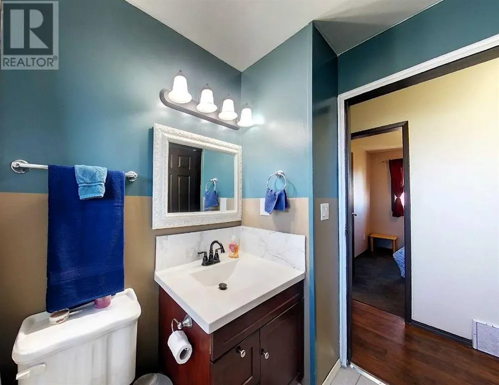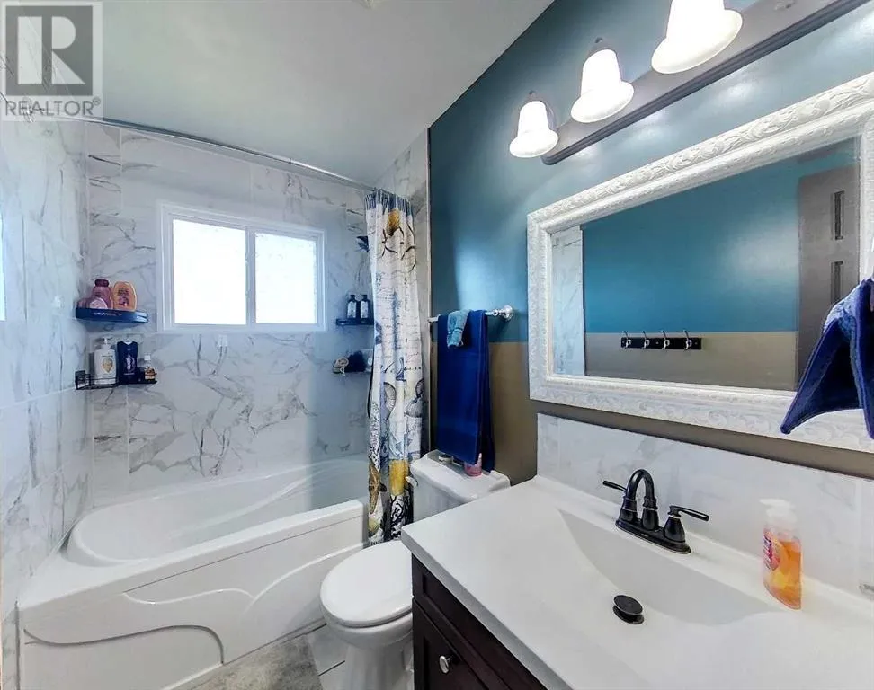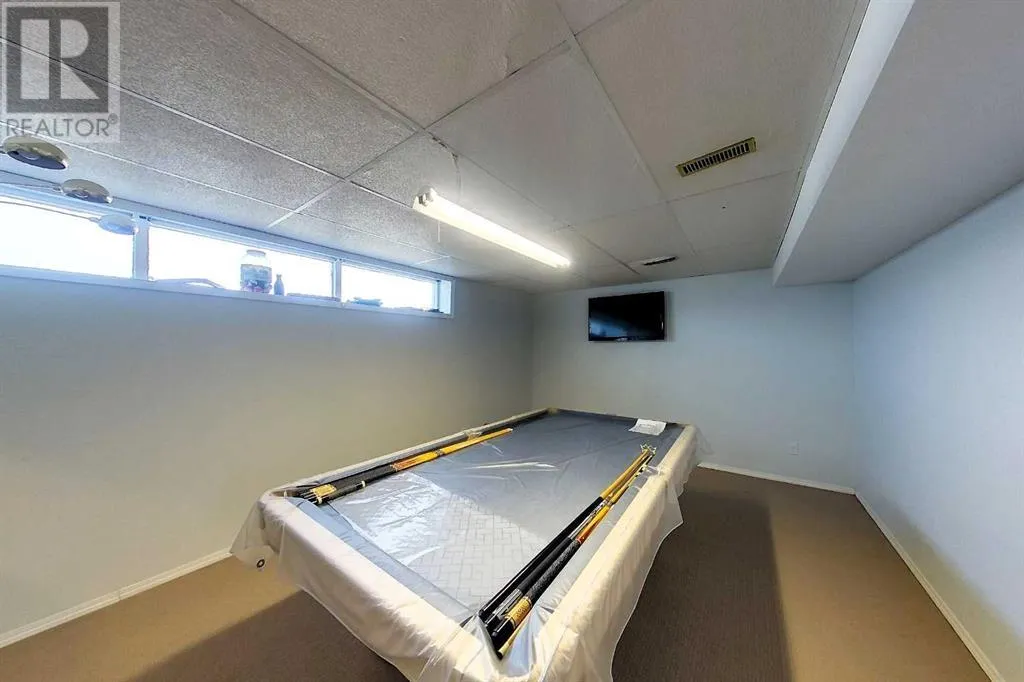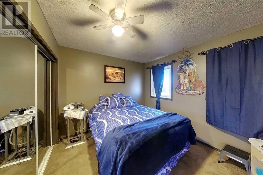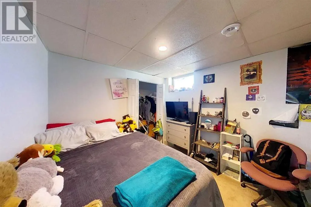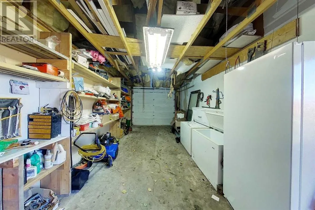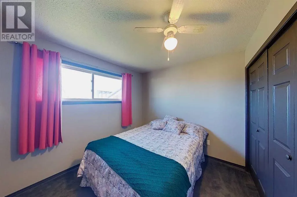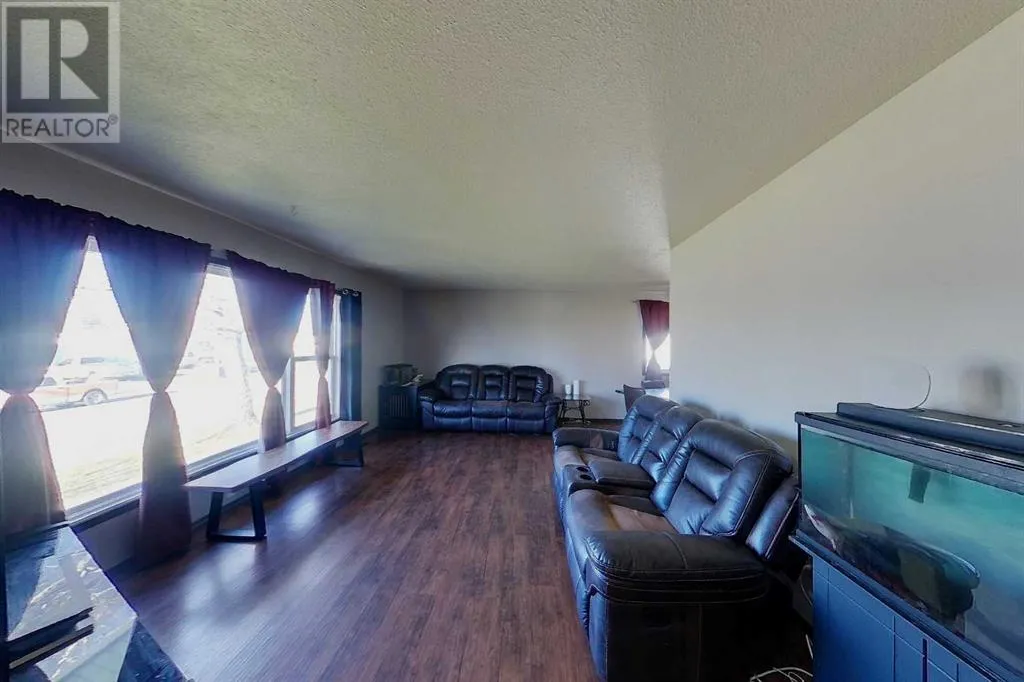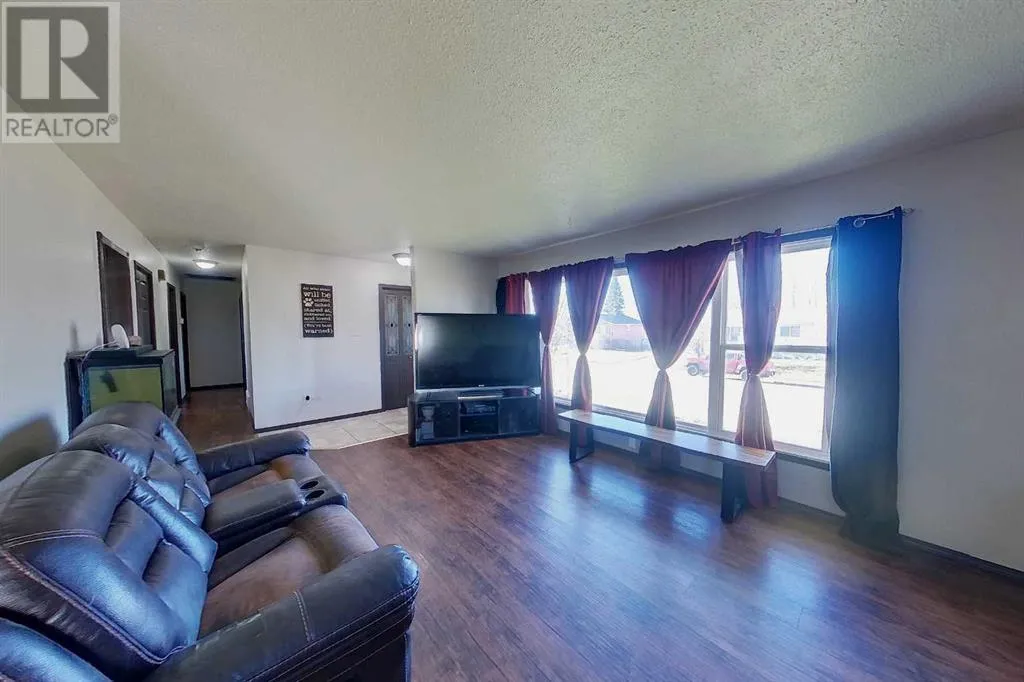 This charming 4-bedroom, 2-bath bungalow boasts a durable metal roof and is perfect for families. The open living and dining room lead to a well-appointed kitchen with stainless appliances, including a fridge, stove, and dishwasher. For clean, purified water, it features a water purification system.Upstairs, youâll find 3 bedrooms and a 4-piece bathroom with tile flooring. The laminate flooring extends into the kitchen, which has laminate counters and a built-in hood fan. The spacious backyard backs onto a school field, offering ample outdoor space with a dog run, a greenhouse, and a large deck. Plus, thereâs RV parkingIn the basement, thereâs a recreational room, an office, a 3-piece bathroom, and a 4th bedroom. The extra-large utility/laundry room is perfect for handling household chores. The basement features carpet and linoleum, with a large storage area under the stairs.Enjoy cozy evenings with a firepit and wood that stays. This home is a wonderful blend of modern convenience and classic charm. (id:27476)