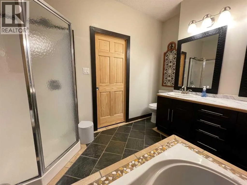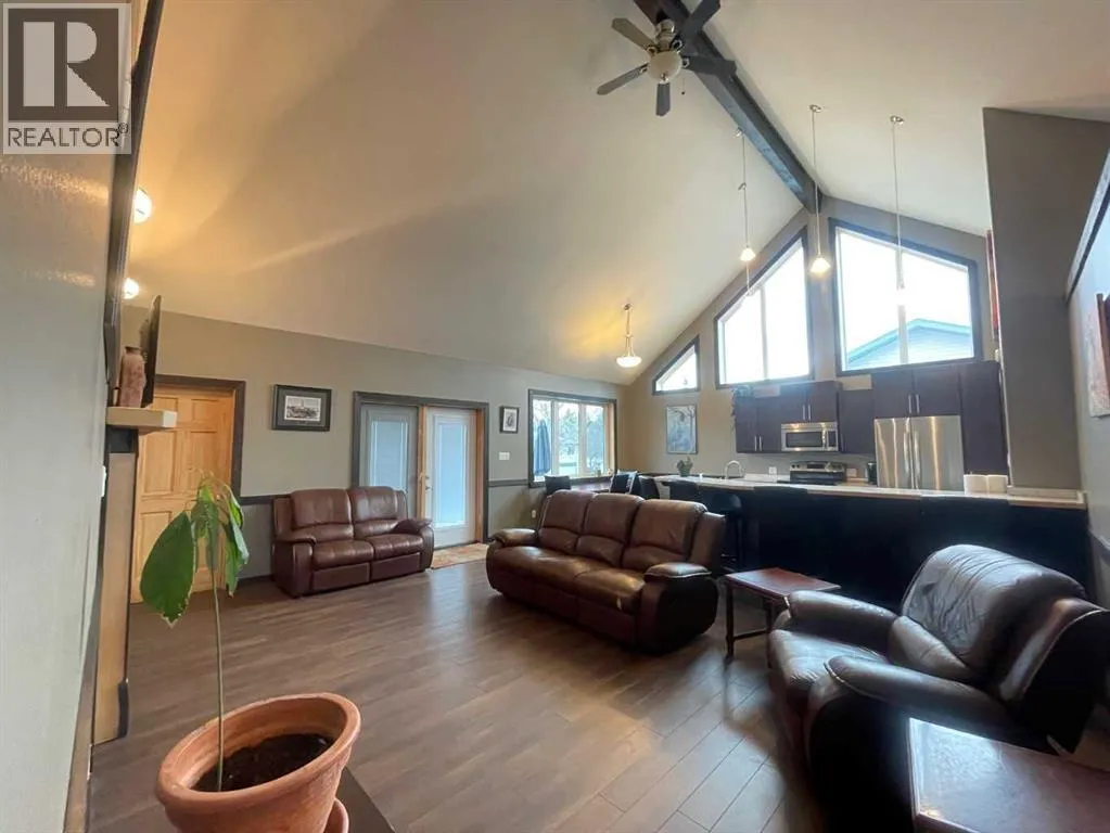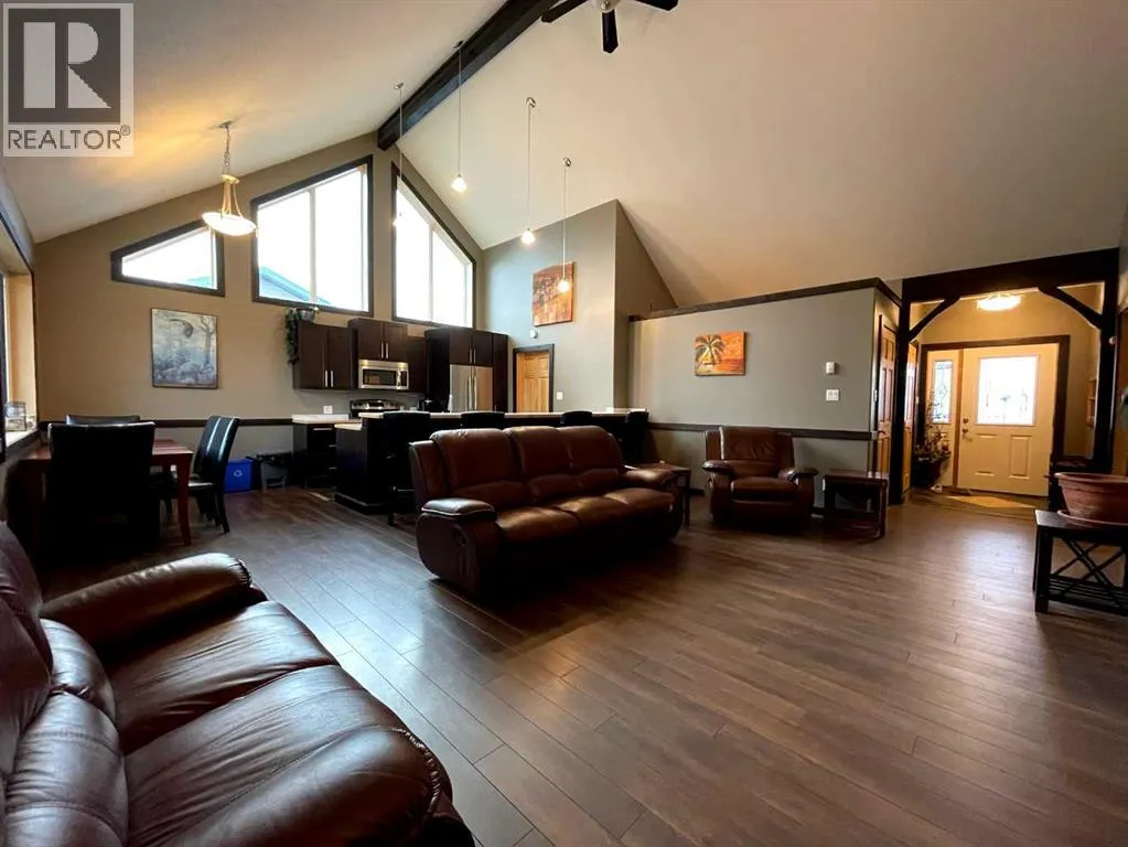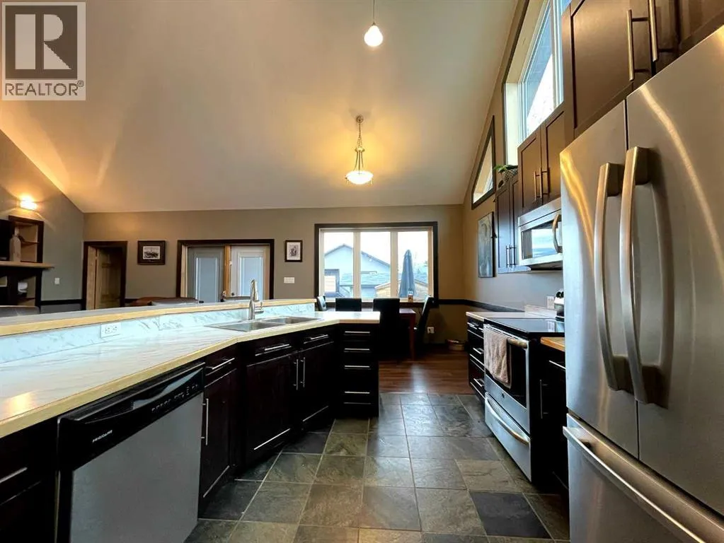 This home is an exquisite custom-built 2013 bungalow on a corner lot! There are extra high-end finishes throughout the home. You enter the home to beautiful slate & Bulgarian laminate floors and a stunning travertine insert, leading to the living room with custom eastern white pine beam vaulted ceilings and large windows giving you all the natural light your heart could desire. With the center of the home holding a combined kitchen & dining area as well as the living room it is the perfect place to entertain your guests. The master bedroom off the living room has a separate exit to the deck, vaulted ceilings, two walk-in closets, and a 5pc ensuite with dual sinks. On the other side of the home, there are two other ample-sized bedrooms and a 4pc bathroom. The main floor laundry is off the kitchen just before you enter your heated 20x25 garage. It is the perfect spot to keep your toys and the snow off of your vehicle in those winter months! Downstairs has a separate entry and holds an additional kitchen, dining area, family room, 3 bedrooms, a 3pc bathrooms, laundry room, and the mechanical equipment room. Parking is not an issue at all here! outside you will find a 2 car concrete pad, off-street parking on the front and side of the property, and RV parking on the side of the home! Add this one to your list it is a must-see with all the natural light and high ceilings it is one of a kind!! Home comes fully furnished just need to bring your clothing bag! (id:27476)