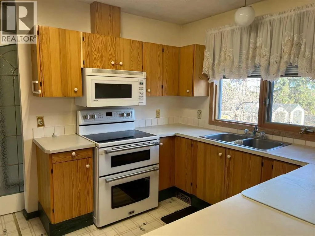 WELCOME TO YOUR FOREVER HOME BACKING ON TO GREENZONE !!LOCATION IS THE NUMBER ONE RULE IN REAL-ESTATE. You have a park in your own back yard with different kinds of apple, pear and crabapple trees backing on to green zone and plum trees in the front yard. Large gate for you to access the green zone for all your hiking, biking, snowmobiling & quading. 2 sheds for all your toy storage. It is like living in the country with town amenities. Your home has 3 bedrooms & 1 full bathroom, large living room with bay window, hardwood flooring, the kitchen has loads of counter space with lots of cupboards and a side pantry. Kitchen comes with fridge, stove, dishwasher and microwave. Dining room has Patio doors to a smaller deck. Just off the back door you will find a large deck where you can enjoy your morning coffee or a family BBQ. Down stairs you have a huge family room with a wood burning fireplace to keep you cozy and warm this winter. You have 1 more bedroom, 1\2 bath and office.. ALL YOUR MAJOR HOME UP GRADES ARE DONE FOR YOU. Newer furnace, newer water heater, outside has stucco siding, newer shingles, some newer windows. All you may want to do is upgrade your flooring downstairs this winter. Heated 30 by 16 finished garage with hot and cold-water taps. Copper wiring throughout home. This home has been LOVED by the same family since she was built in 1980. No smoking or pets just a wonderful home waiting for a new family to move into and enjoy the home and yard. (id:27476)