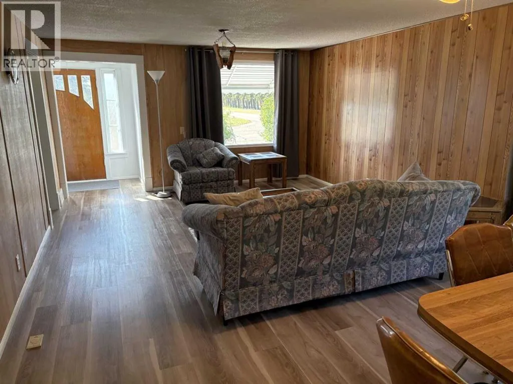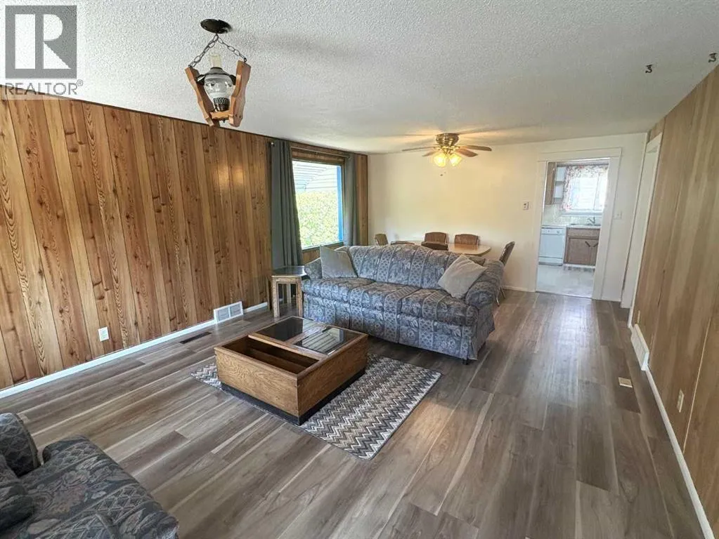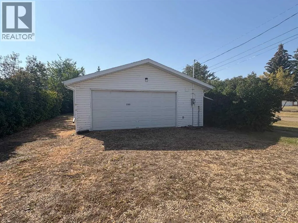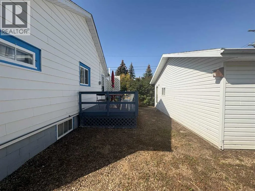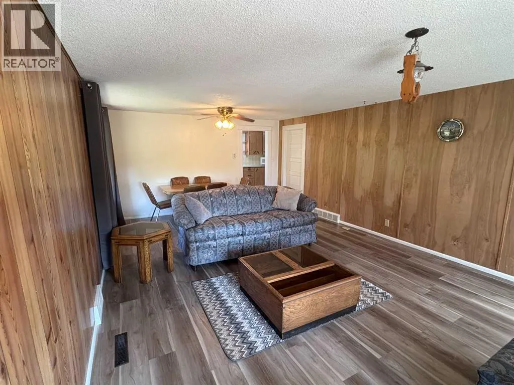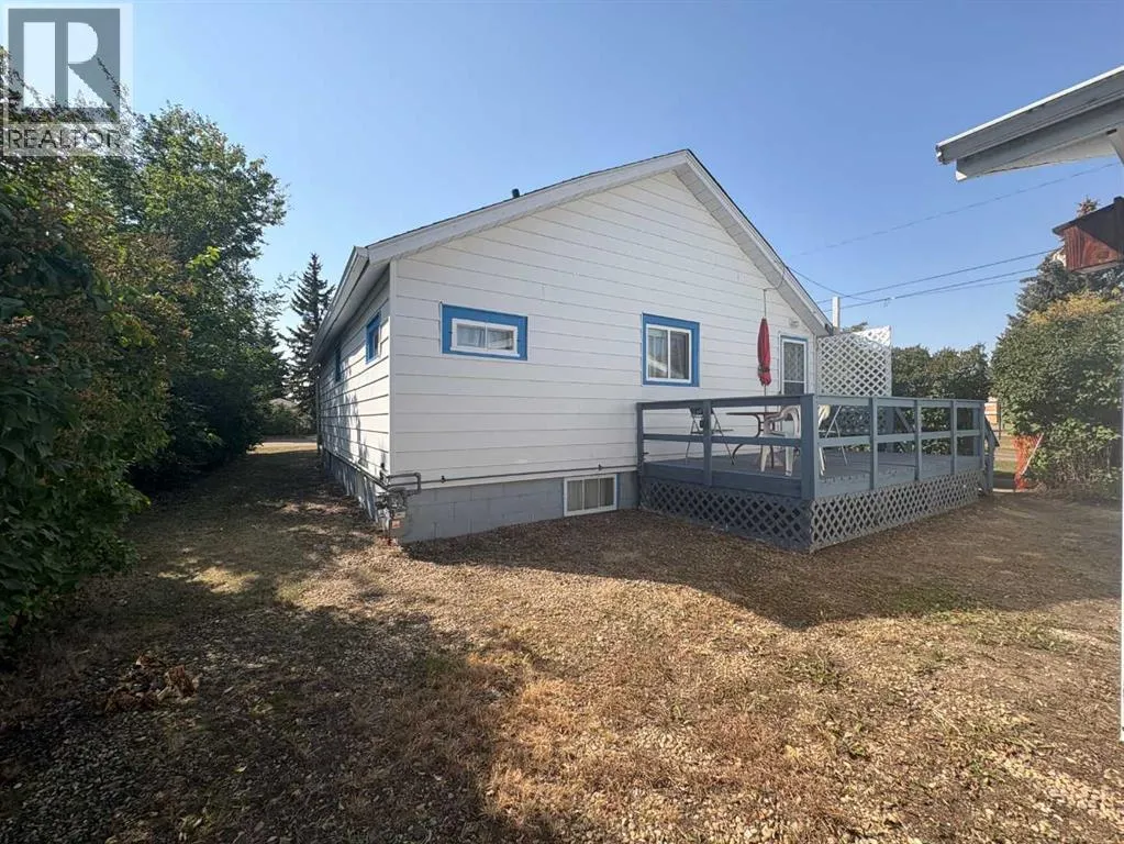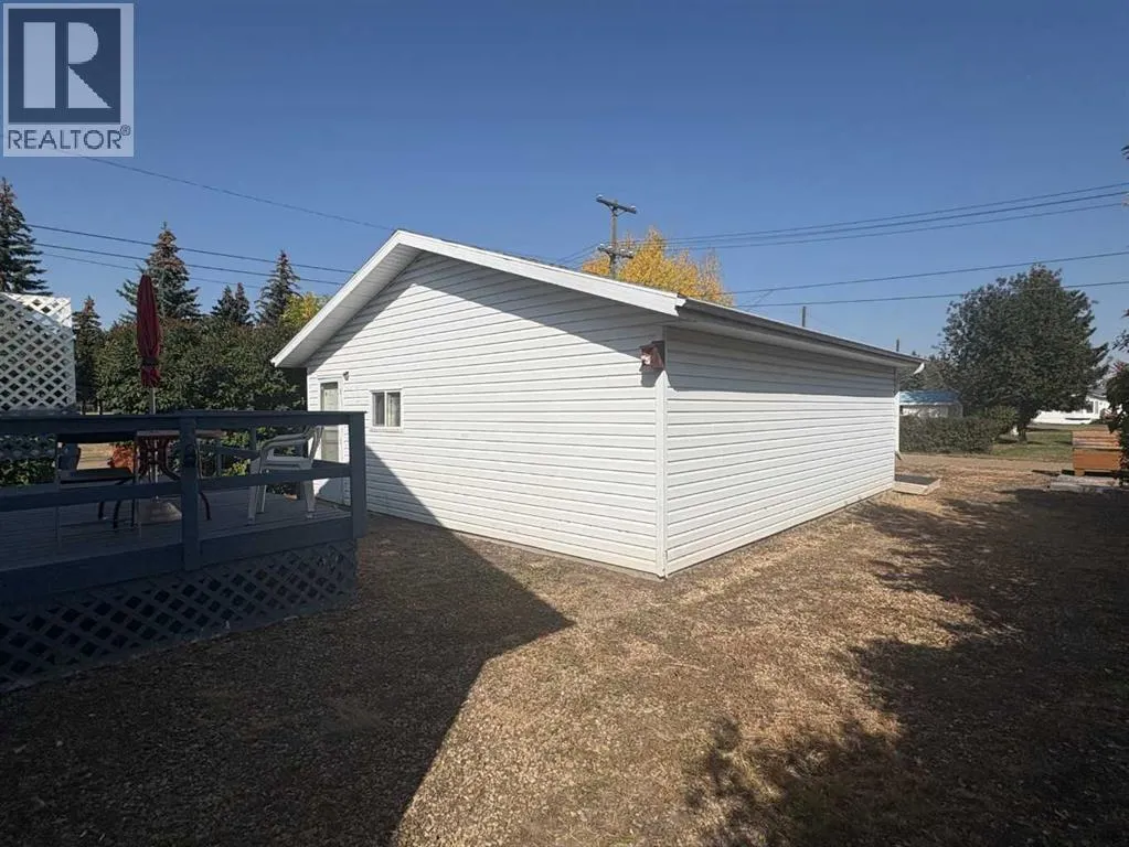 Check out this cute family bungalow. 897 sqft. Three bedroom, two bathrooms. Main floor features spacious kitchen. Large dining/living room. Two nice size bedrooms. Four piece bathroom with extra storage cabinets. In the basement you have one more bedroom. A three-piece bathroom. Family room. Two nice storage rooms and a cold room. You will truly enjoy your private backyard. Have your morning coffee on your front or back deck. There is a natural gas connection for your barbeque on the back deck. The double detached garage has 220 V power with back lane access and RV parking. Some renos over the years include shingles, electrical, flooring, front deck. Enjoy the peace and quiet of small town living in the quaint community of Galahad. (id:27476)