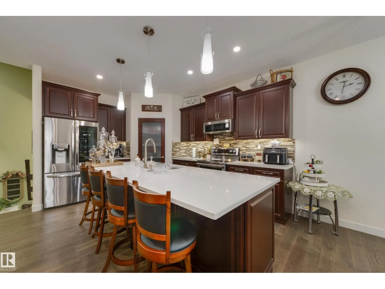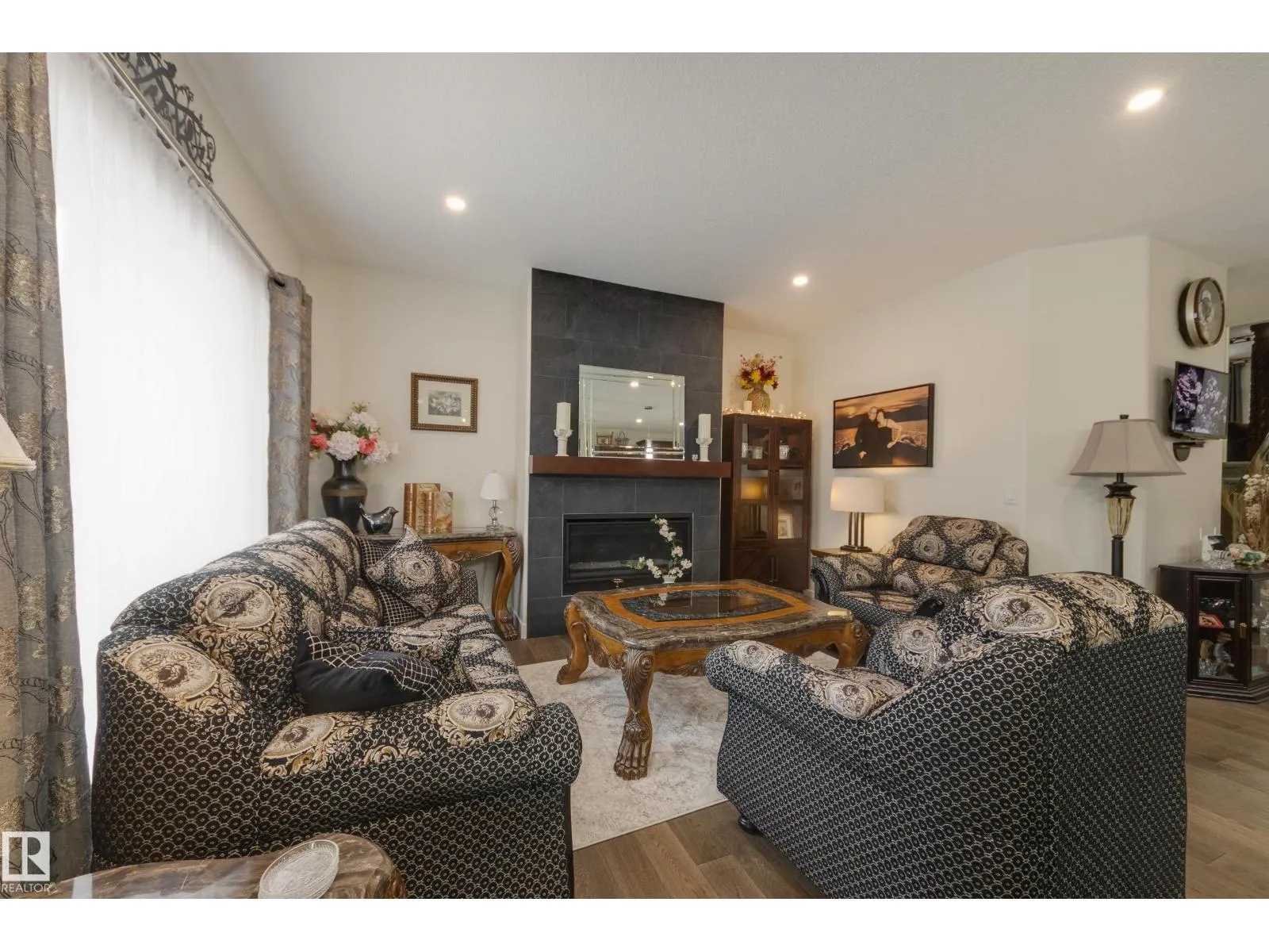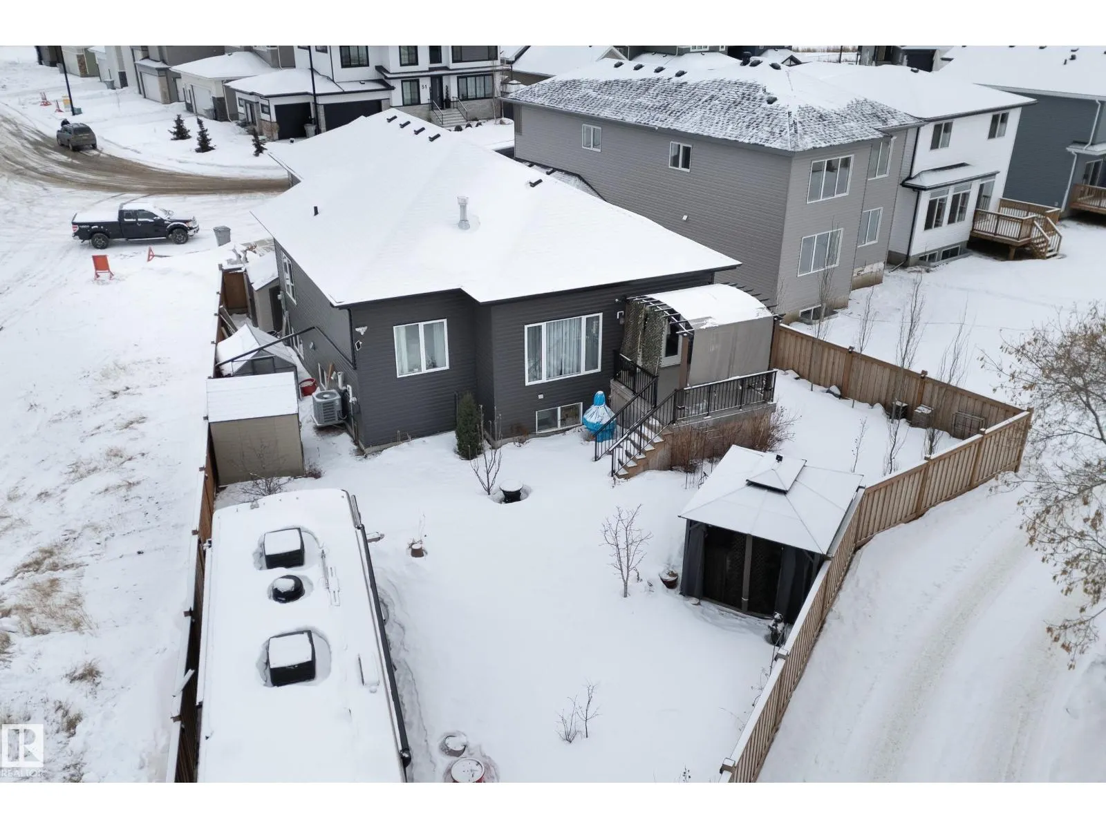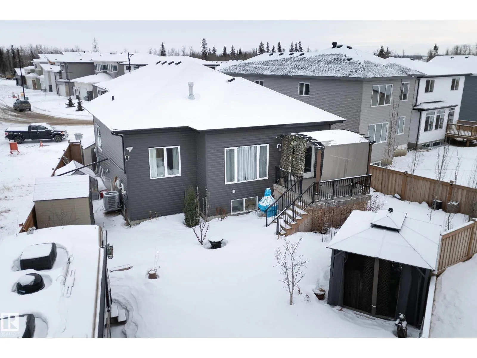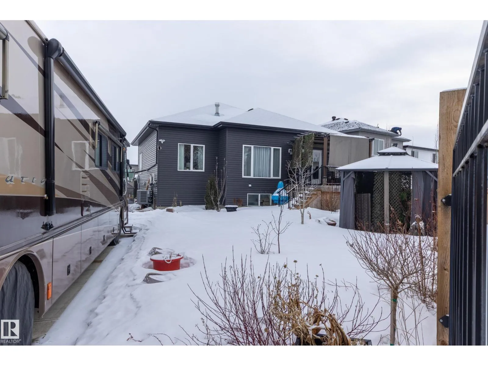 Welcome to this exceptional custom-built home in the quiet, family-friendly community of Gibbons! This thoughtfully upgraded bi-level was designed with comfort and function in mind. Enjoy an oversized heated attached garage, central A/C, 9â ceilings, and a high-quality HVAC system that keeps the home comfortable year-round. The open-concept main floor features a bright living room and cozy gas fireplace. The designer kitchen stands out with upgraded maple cabinetry, soft-close doors and drawers, and custom finishings that elevate the entire space. Two well-sized main-floor bedrooms and a full 4-piece bath are perfect for kids, guests, or a home office. Upstairs, the private primary suite offers a quiet retreat with its own 4-piece bath. The finished basement adds a cozy family room and two large bedrooms, providing space and comfort for everyone. Outside, the fully landscaped yard includes multiple fruit trees, a gazebo for relaxing, an RV pad, and underground sprinklers. This home checks all the boxes! (id:27476)