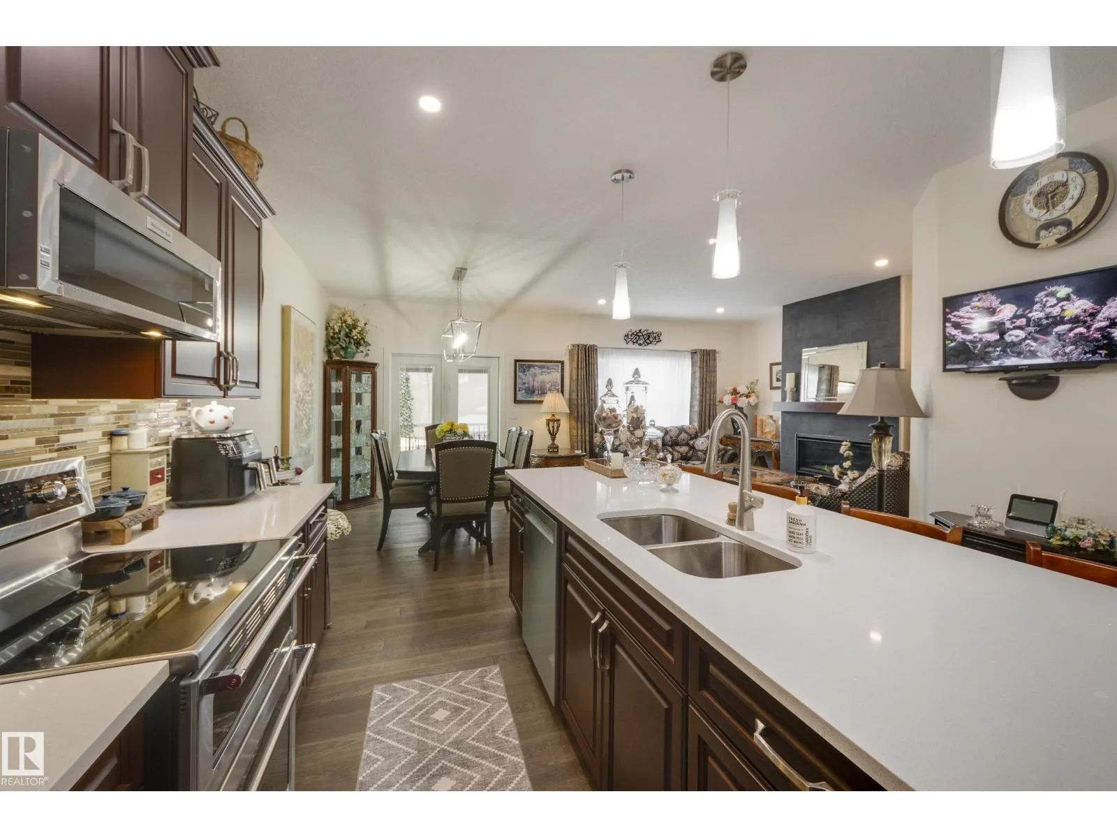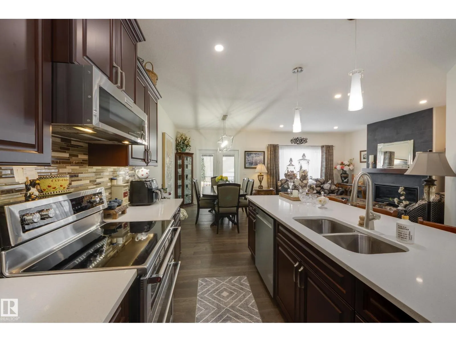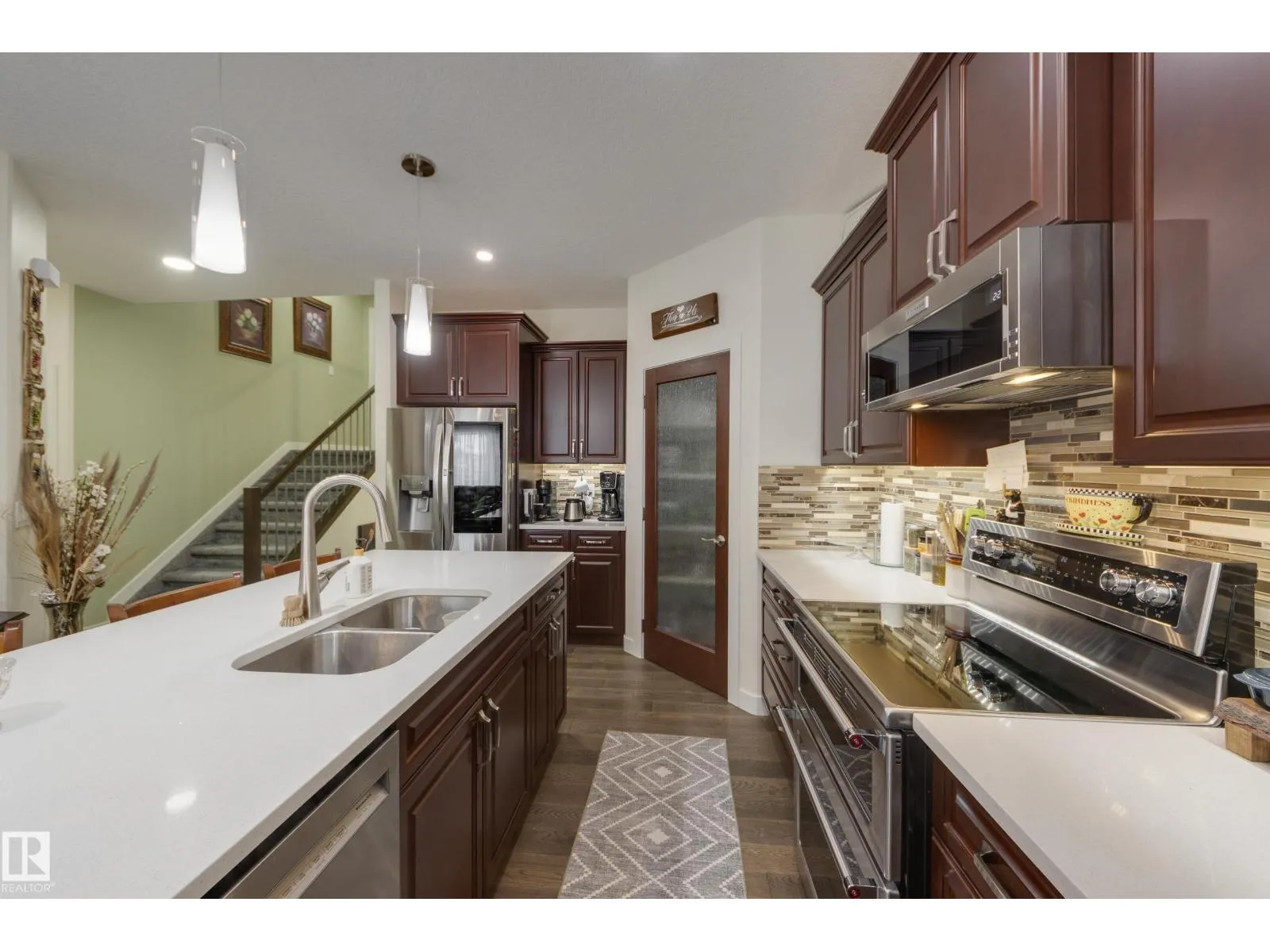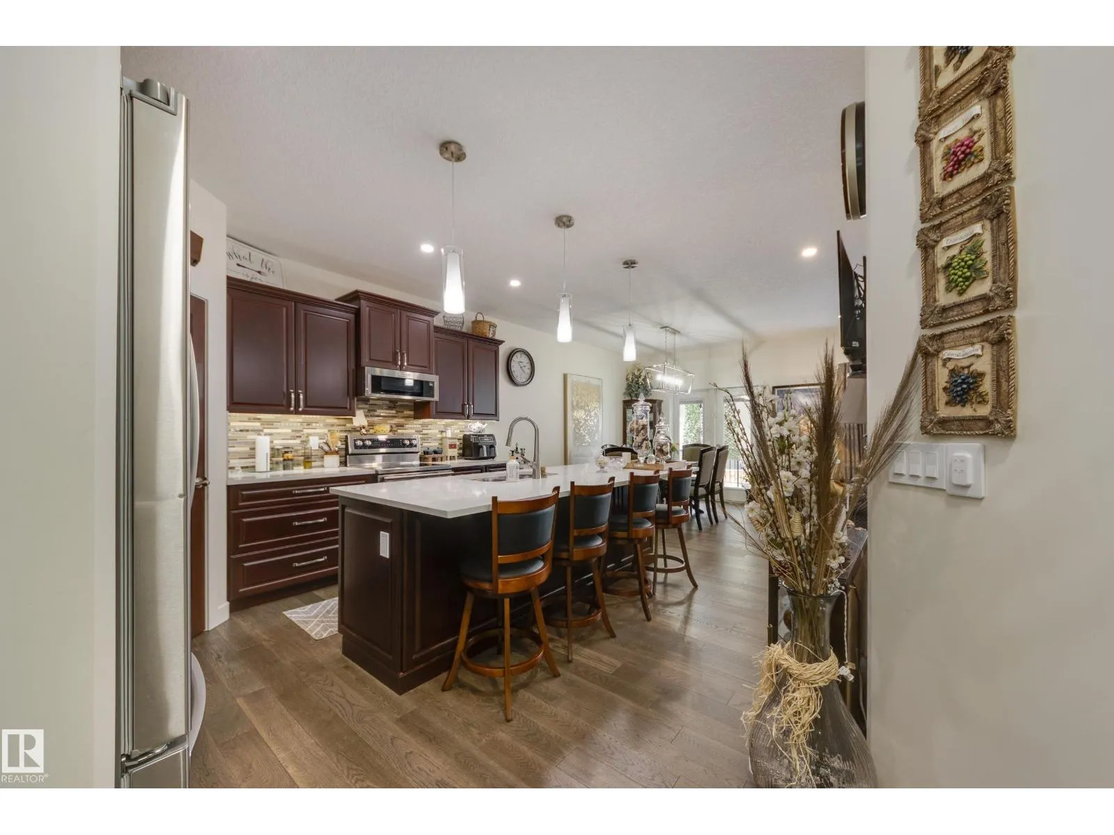 Welcome to this exceptional custom-built home in the quiet, family-friendly community of Gibbons! This thoughtfully upgraded bi-level was designed with comfort and function in mind. Enjoy an oversized heated attached garage, central A/C, 9â ceilings, and a high-quality HVAC system that keeps the home comfortable year-round. The open-concept main floor features a bright living room and cozy gas fireplace. The designer kitchen stands out with upgraded maple cabinetry, soft-close doors and drawers, and custom finishings that elevate the entire space. Two well-sized main-floor bedrooms and a full 4-piece bath are perfect for kids, guests, or a home office. Upstairs, the private primary suite offers a quiet retreat with its own 4-piece bath. The finished basement adds a cozy family room and two large bedrooms, providing space and comfort for everyone. Outside, the fully landscaped yard includes multiple fruit trees, a gazebo for relaxing, an RV pad, and underground sprinklers. This home checks all the boxes! (id:27476)