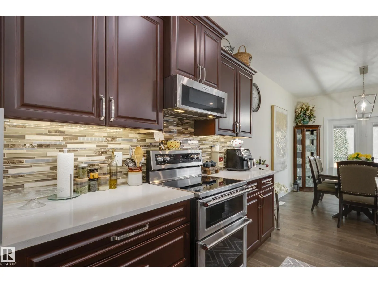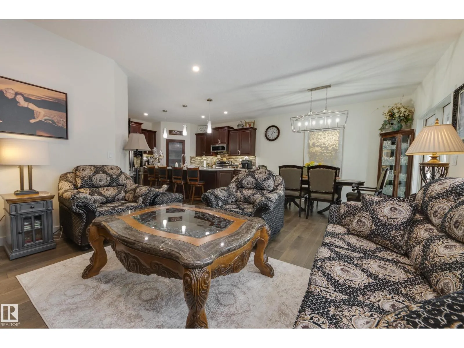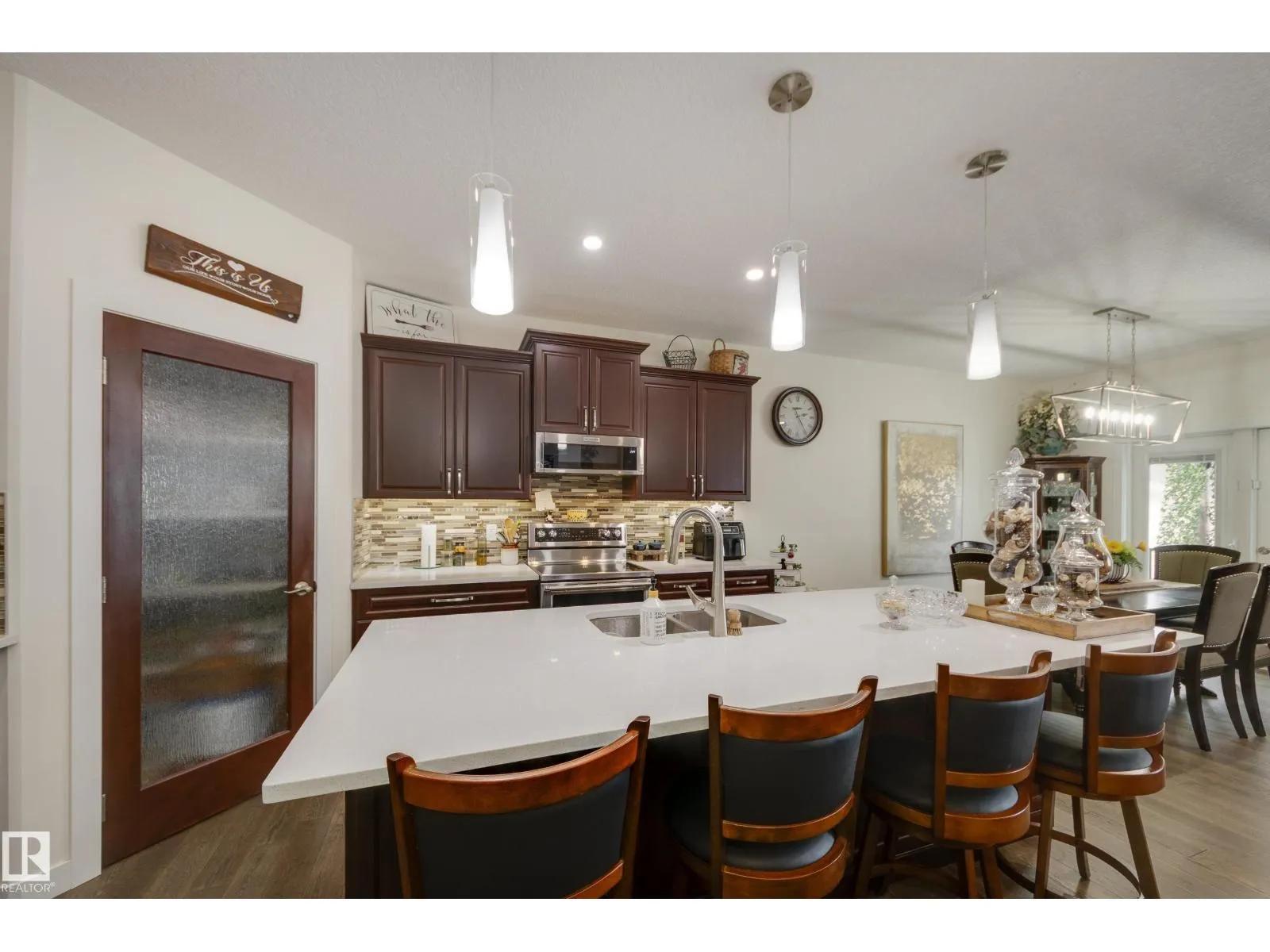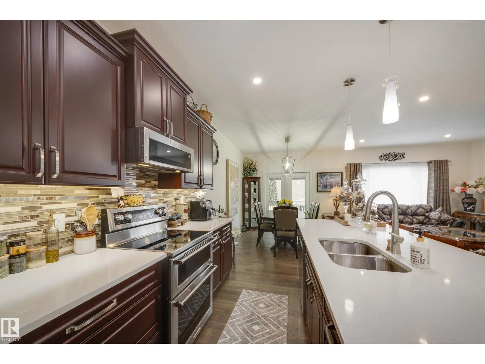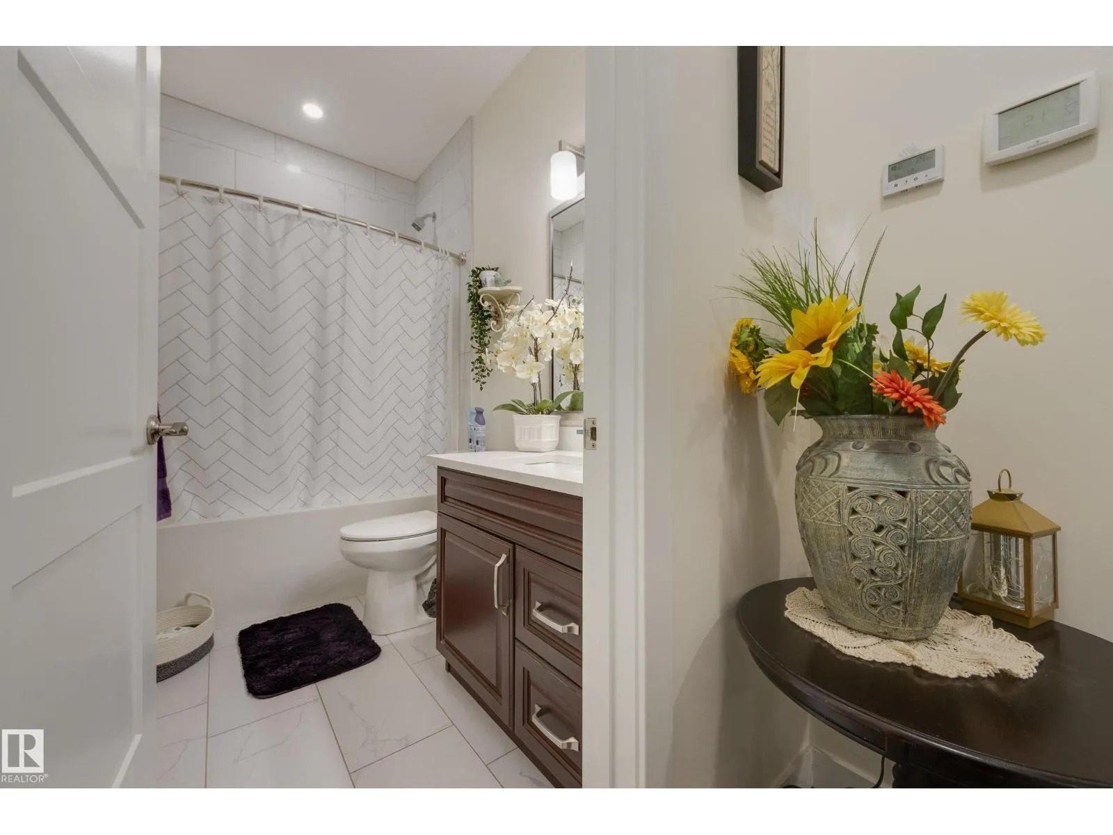 Welcome to this exceptional custom-built home in the quiet, family-friendly community of Gibbons! This thoughtfully upgraded bi-level was designed with comfort and function in mind. Enjoy an oversized heated attached garage, central A/C, 9â ceilings, and a high-quality HVAC system that keeps the home comfortable year-round. The open-concept main floor features a bright living room and cozy gas fireplace. The designer kitchen stands out with upgraded maple cabinetry, soft-close doors and drawers, and custom finishings that elevate the entire space. Two well-sized main-floor bedrooms and a full 4-piece bath are perfect for kids, guests, or a home office. Upstairs, the private primary suite offers a quiet retreat with its own 4-piece bath. The finished basement adds a cozy family room and two large bedrooms, providing space and comfort for everyone. Outside, the fully landscaped yard includes multiple fruit trees, a gazebo for relaxing, an RV pad, and underground sprinklers. This home checks all the boxes! (id:27476)
