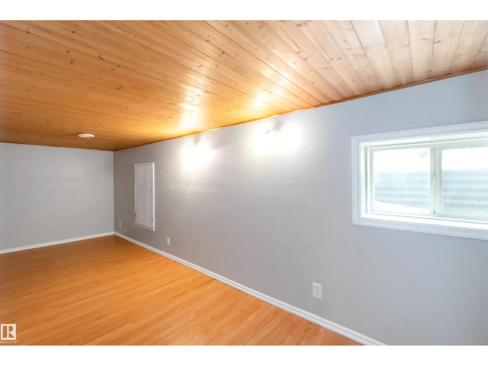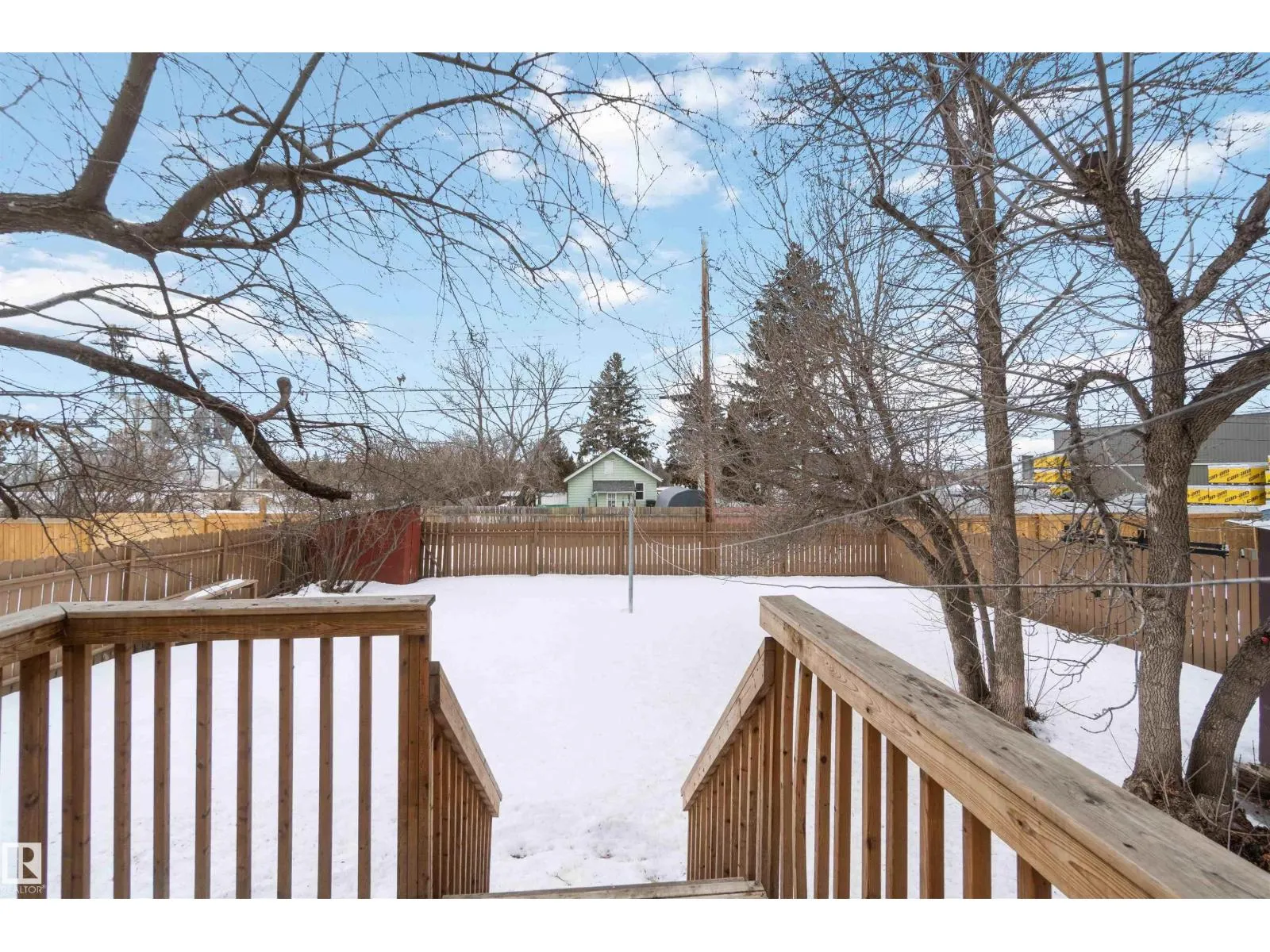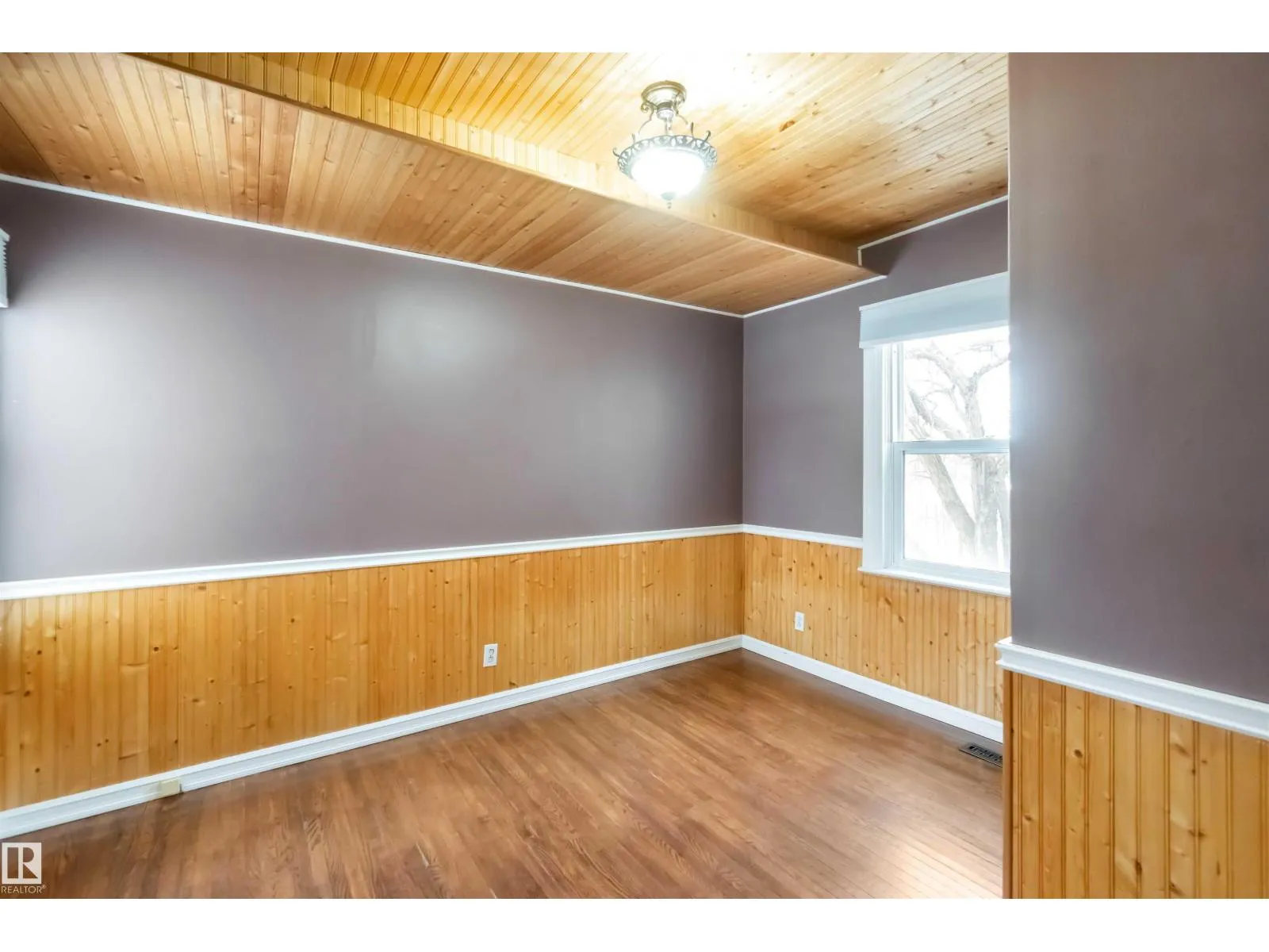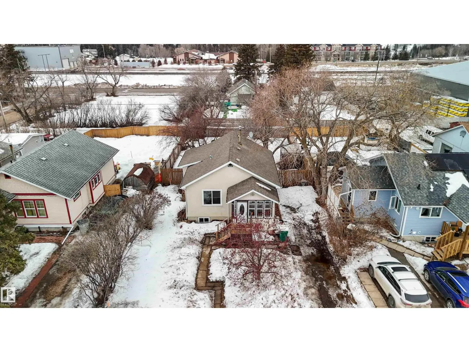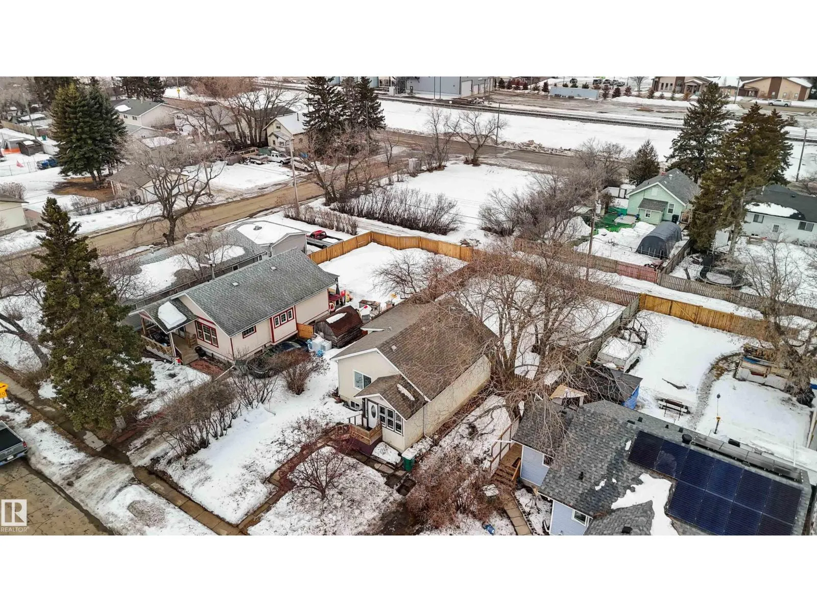 Start your journey & invest in this cute bungalow in the Town ofGibbons. Freshly painted throughout & newer vinyl windows & hardwood floors plus electrical was upgraded in 2025. Sitting on a 50'x150' lot there is ample room for a large garage in the back yard or room for RV storage. Front entrance is through an enclosed front porch - great for boot/shoe storage. Primary bedroom on the main level, den, 4 pc bathroom, galley kitchen with access to a back enclosed porch looking over the yard. The basement is finished with an additional bedroom, flex room, laundry/utility area & family room. Front driveway leading to the fenced back yard. (id:27476)