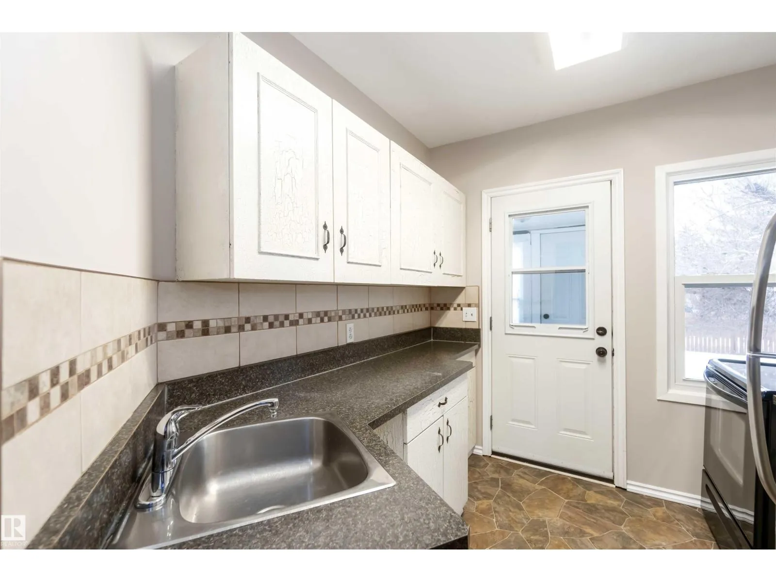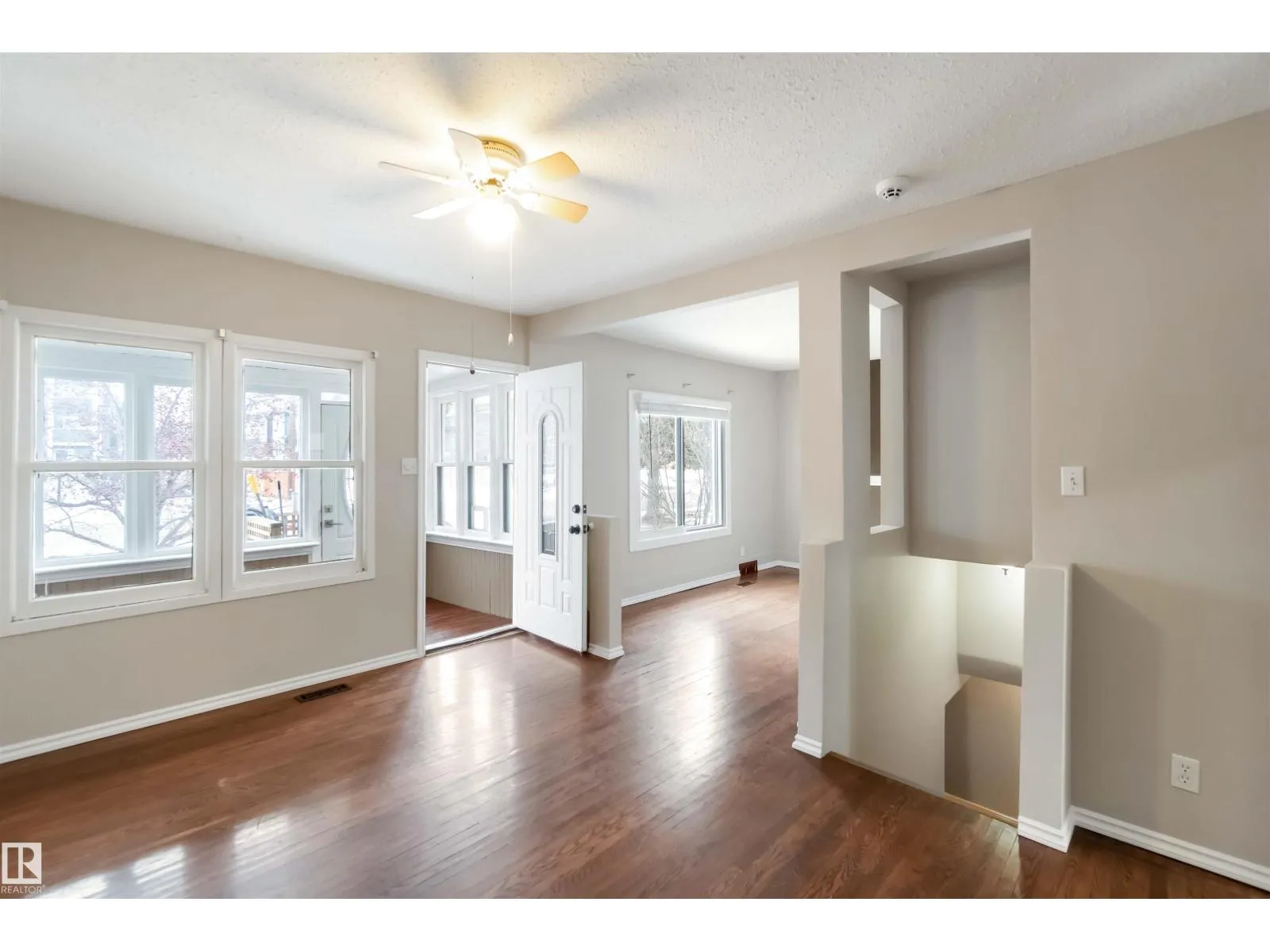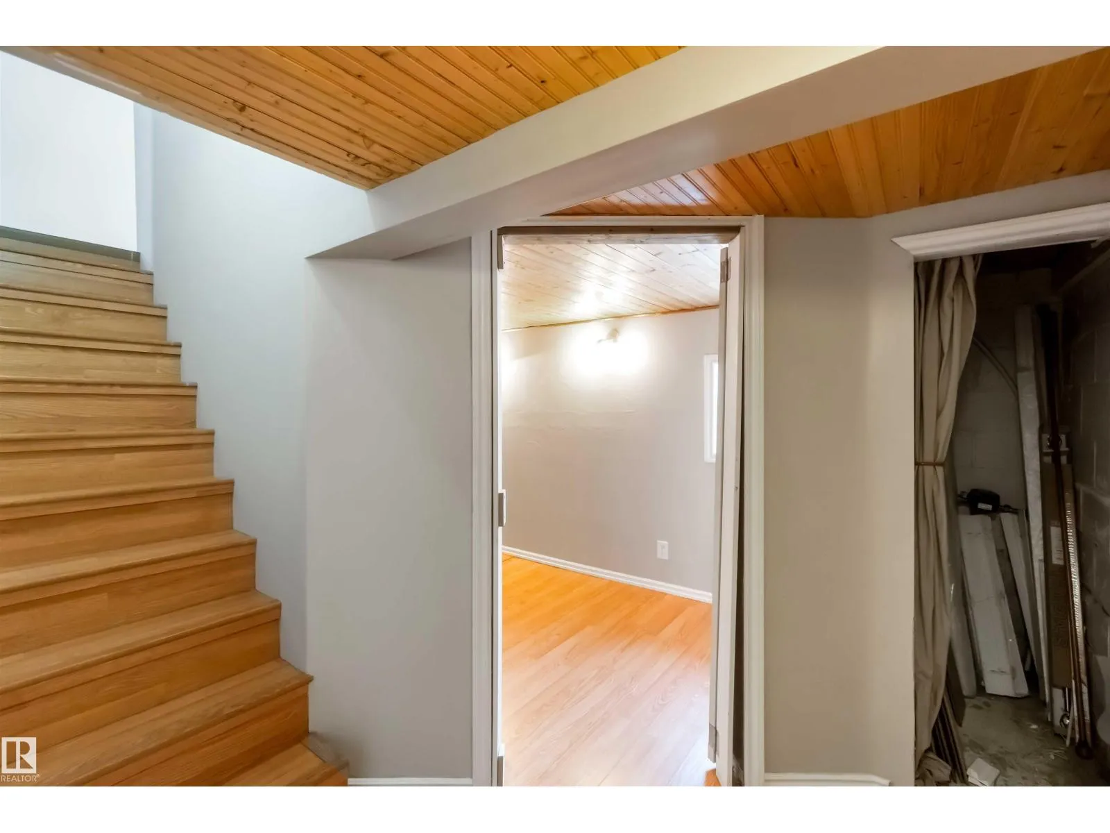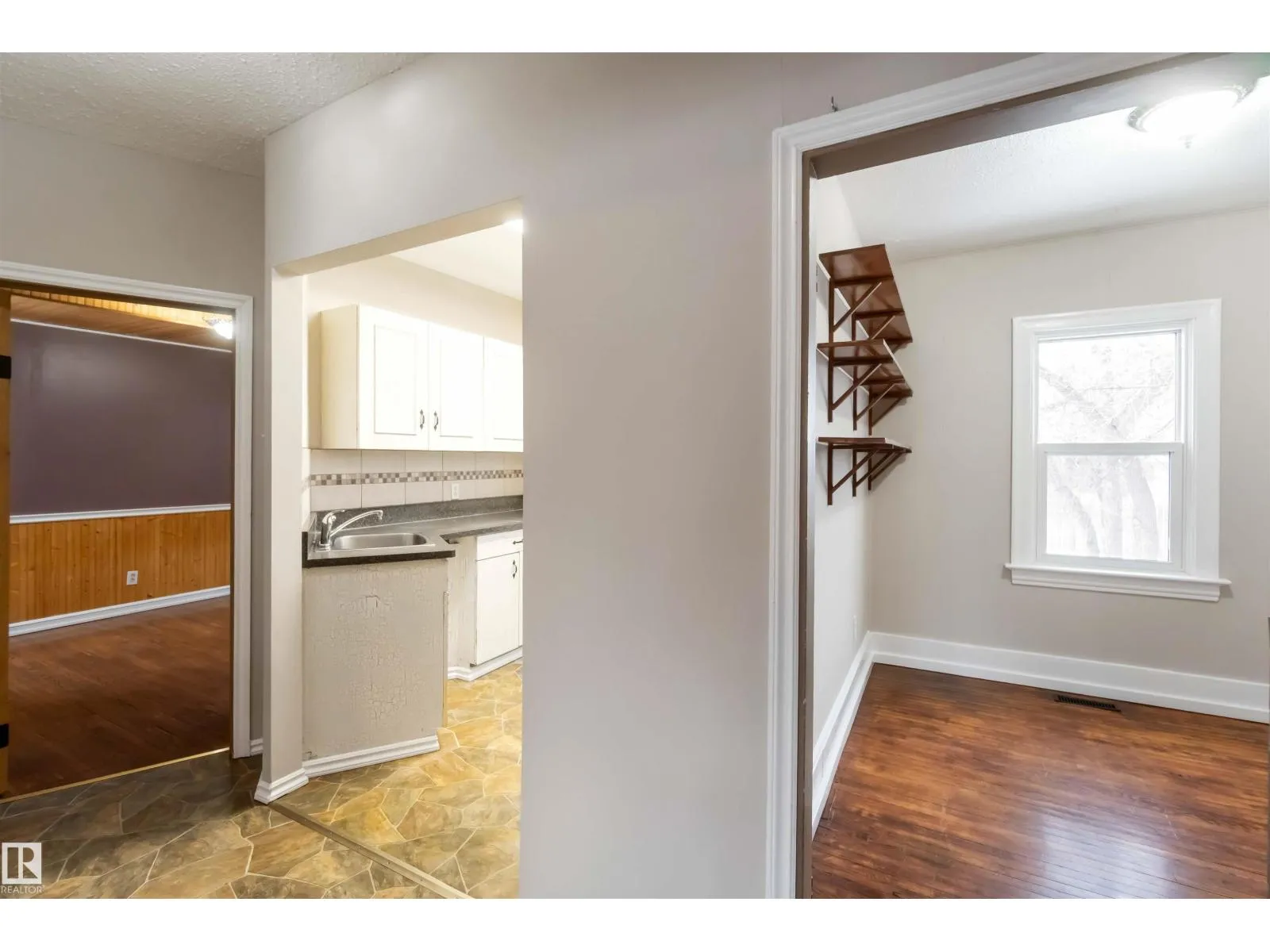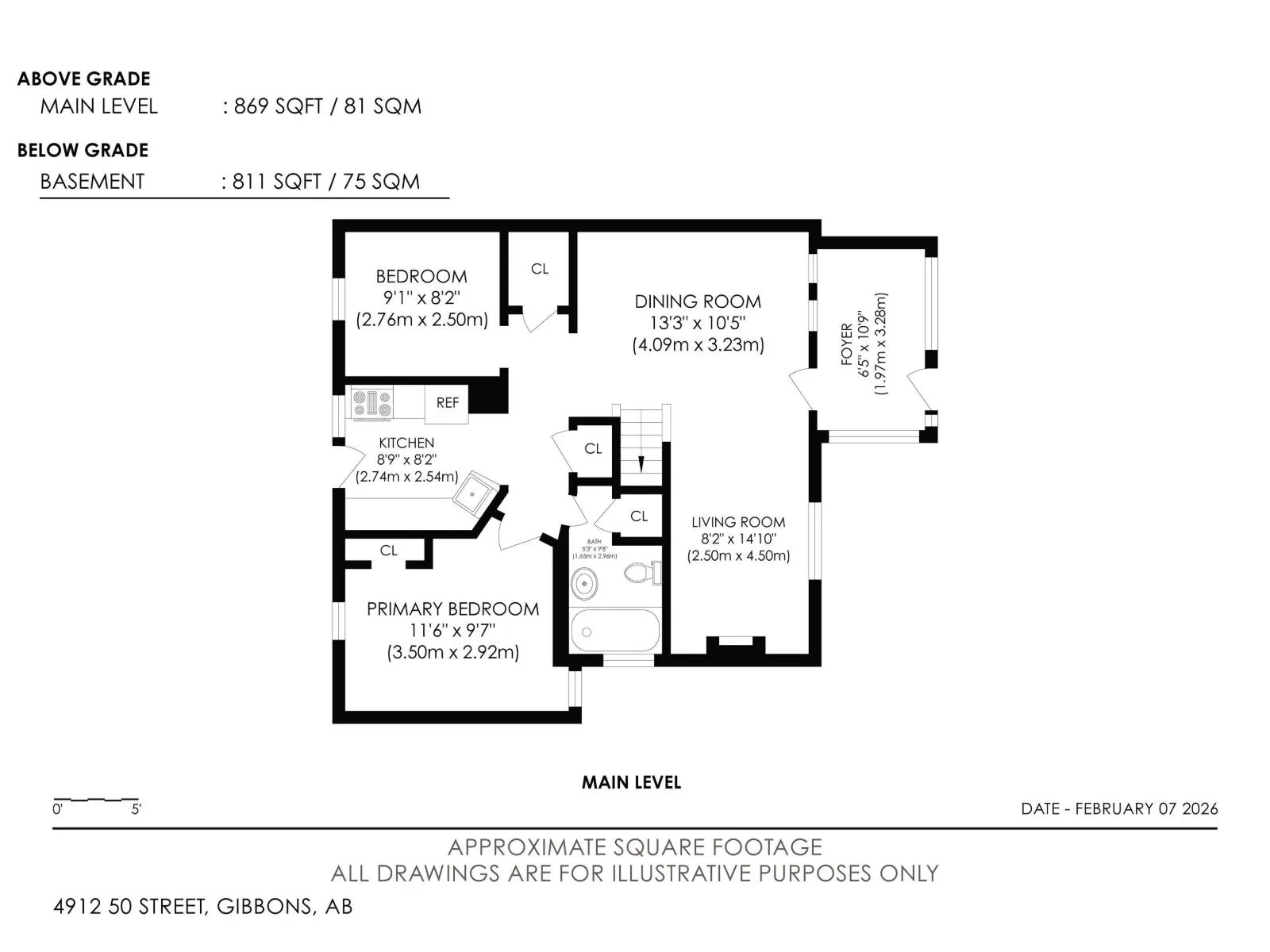 Start your journey & invest in this cute bungalow in the Town ofGibbons. Freshly painted throughout & newer vinyl windows & hardwood floors plus electrical was upgraded in 2025. Sitting on a 50'x150' lot there is ample room for a large garage in the back yard or room for RV storage. Front entrance is through an enclosed front porch - great for boot/shoe storage. Primary bedroom on the main level, den, 4 pc bathroom, galley kitchen with access to a back enclosed porch looking over the yard. The basement is finished with an additional bedroom, flex room, laundry/utility area & family room. Front driveway leading to the fenced back yard. (id:27476)
