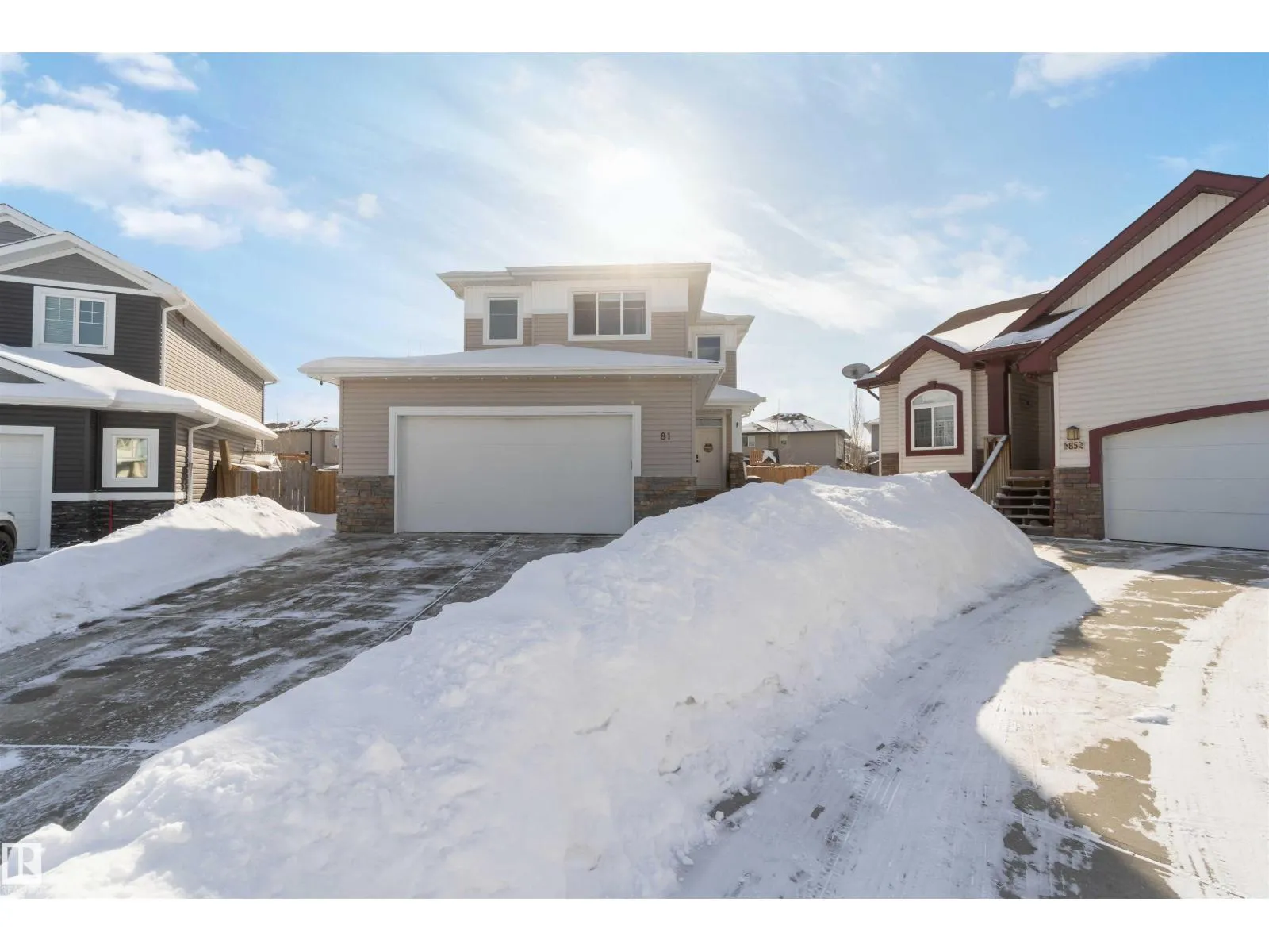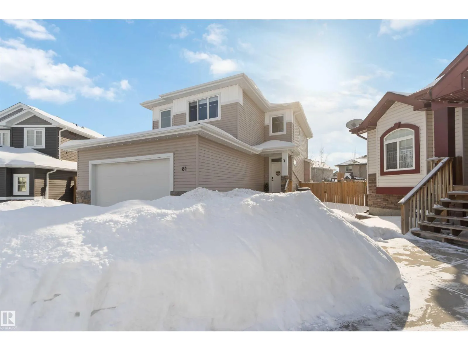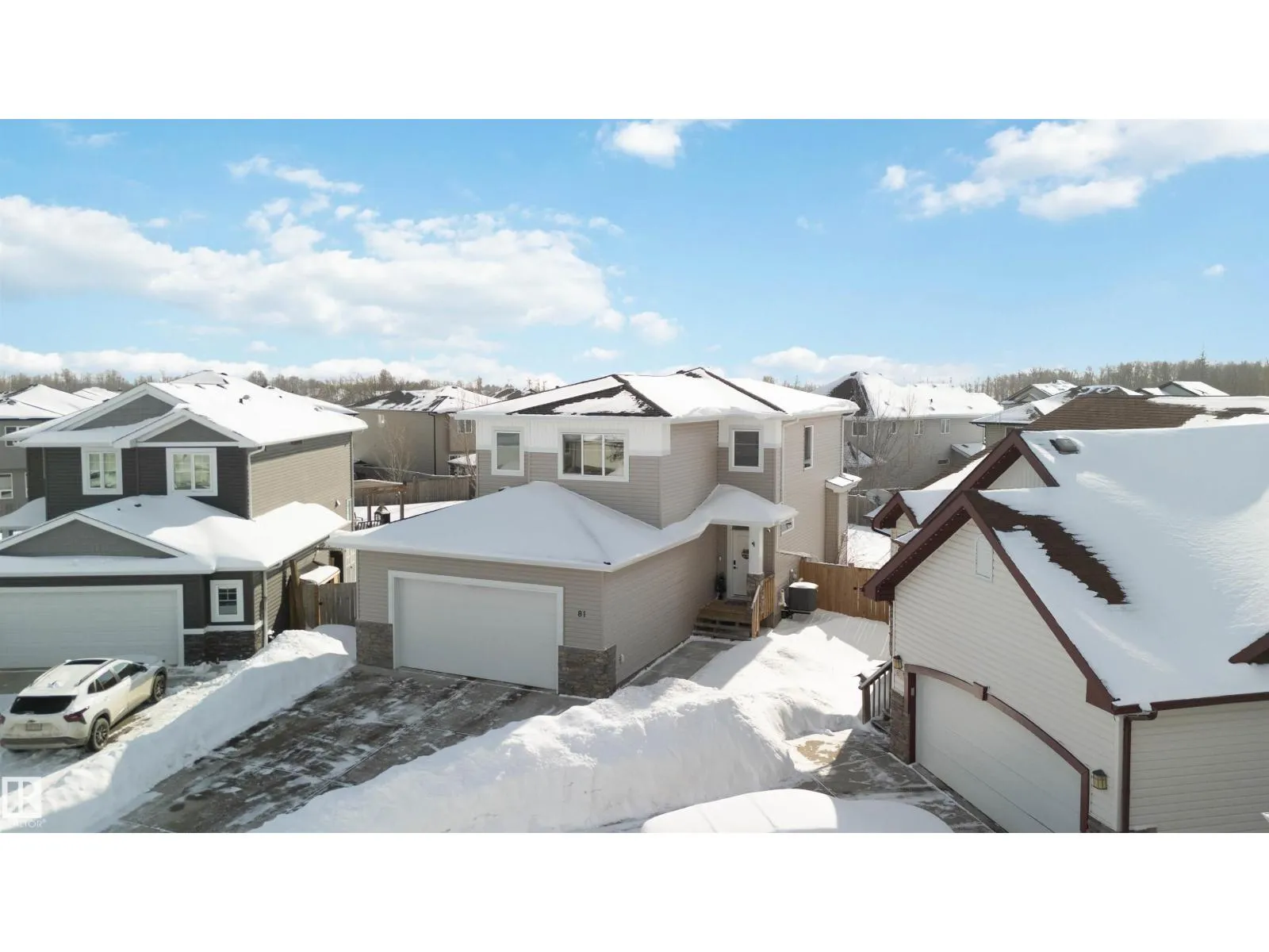 Big Backyard, Big Dreams! Welcome to 81 Landing Trail Dr, a stunning retreat in a quiet, family-friendly cul-de-sac in Gibbons. This home offers over 1,900 sq. ft. of living space with 3 bedrooms upstairs and a main-floor den. Enjoy a functional, good-sized mudroom for the family, stay cool with central AC, or cozy up by the main-level fireplace. The fully finished basement is an entertainer's paradise, featuring a private movie theater and a built-in bar. Step outside to your massive reverse pie-shaped lot, offering a huge deck for summer BBQs and established garden beds and a shed for more storage . Hobbyists will love the heated garage equipped with 220V power, perfect for projects year-round. Located just steps from a brand-new park and local schools, this property offers the perfect blend of comfort, entertainment, and convenience. Donât miss out on this incredible opportunity! (id:27476)