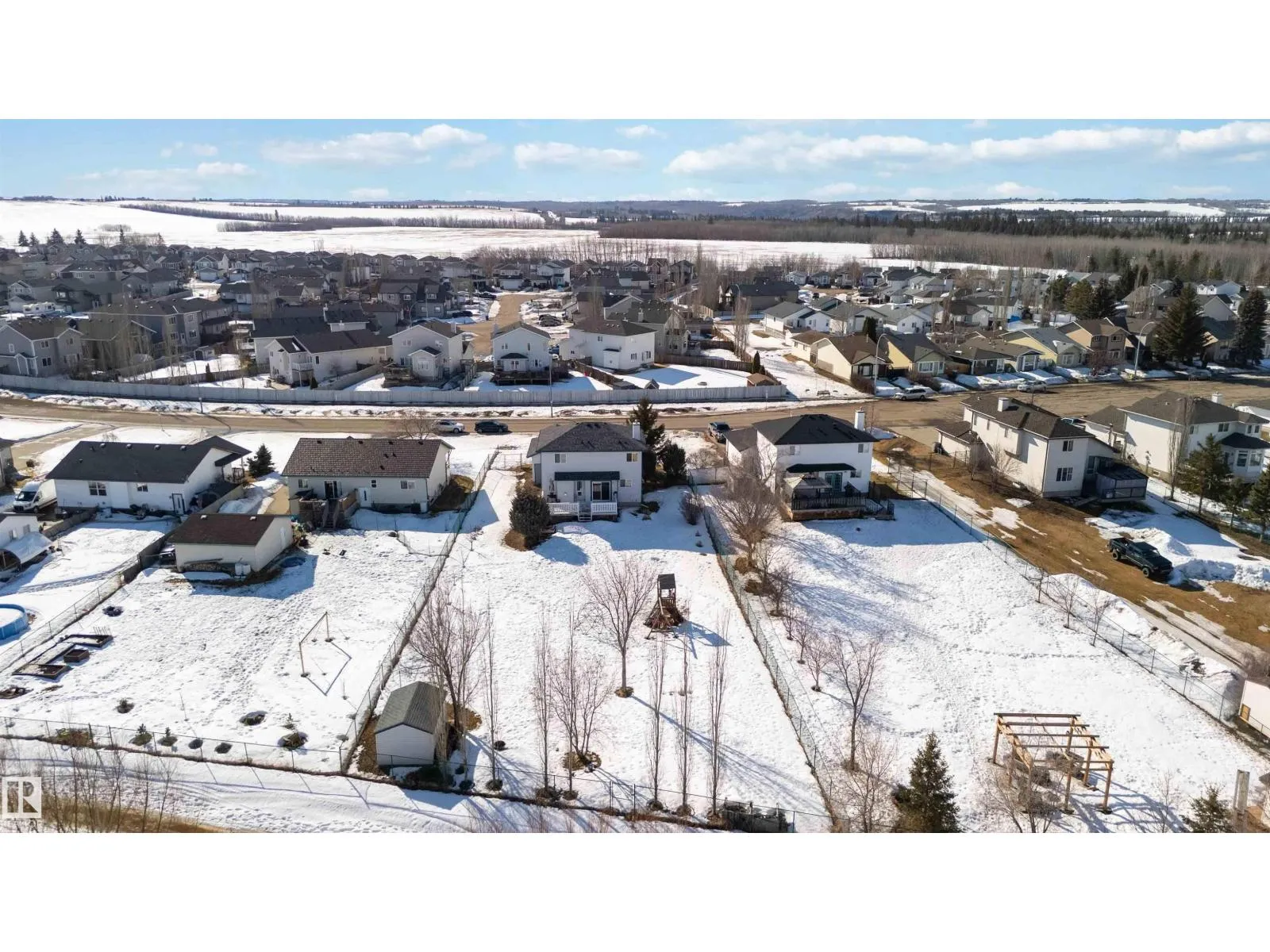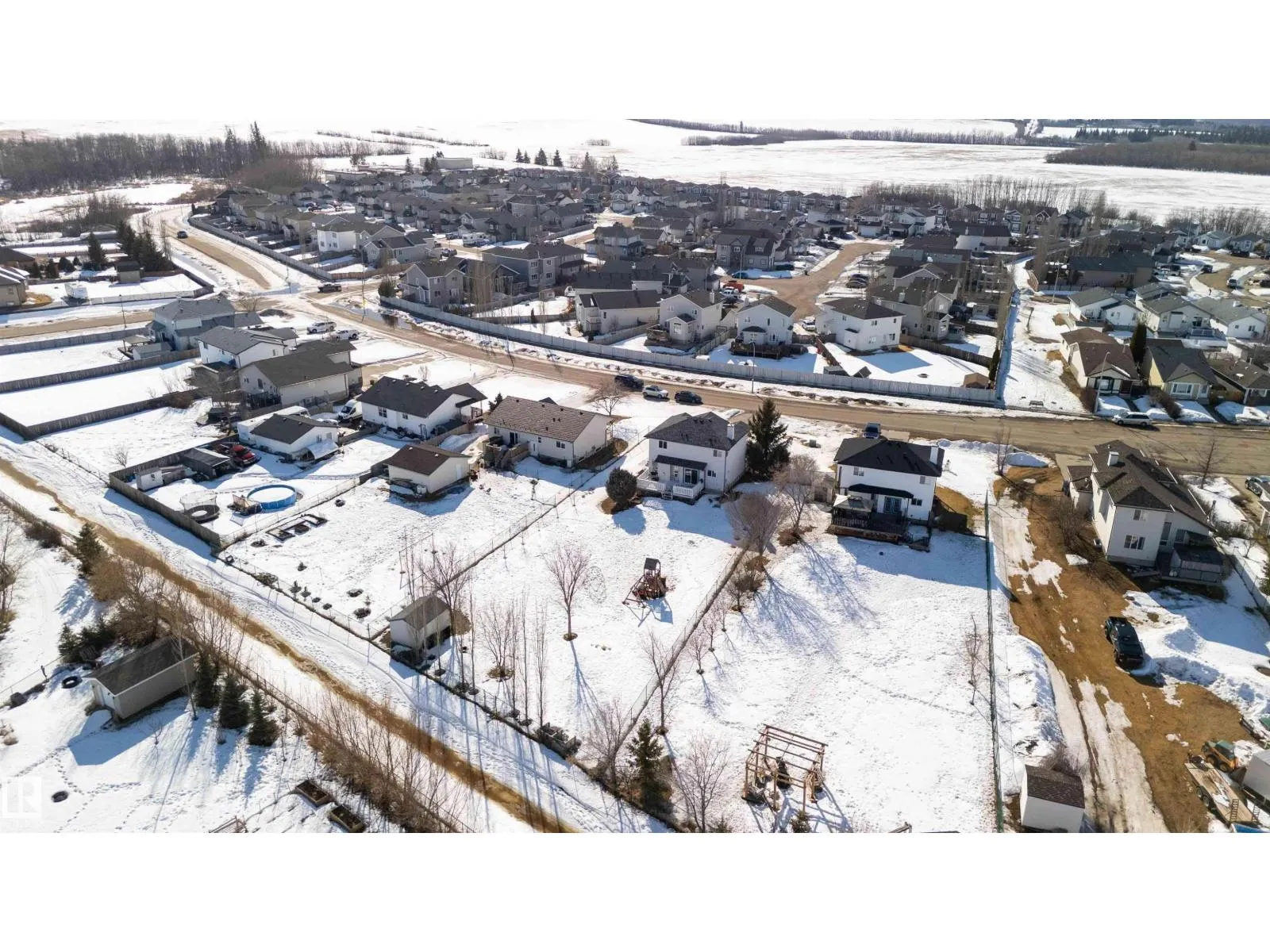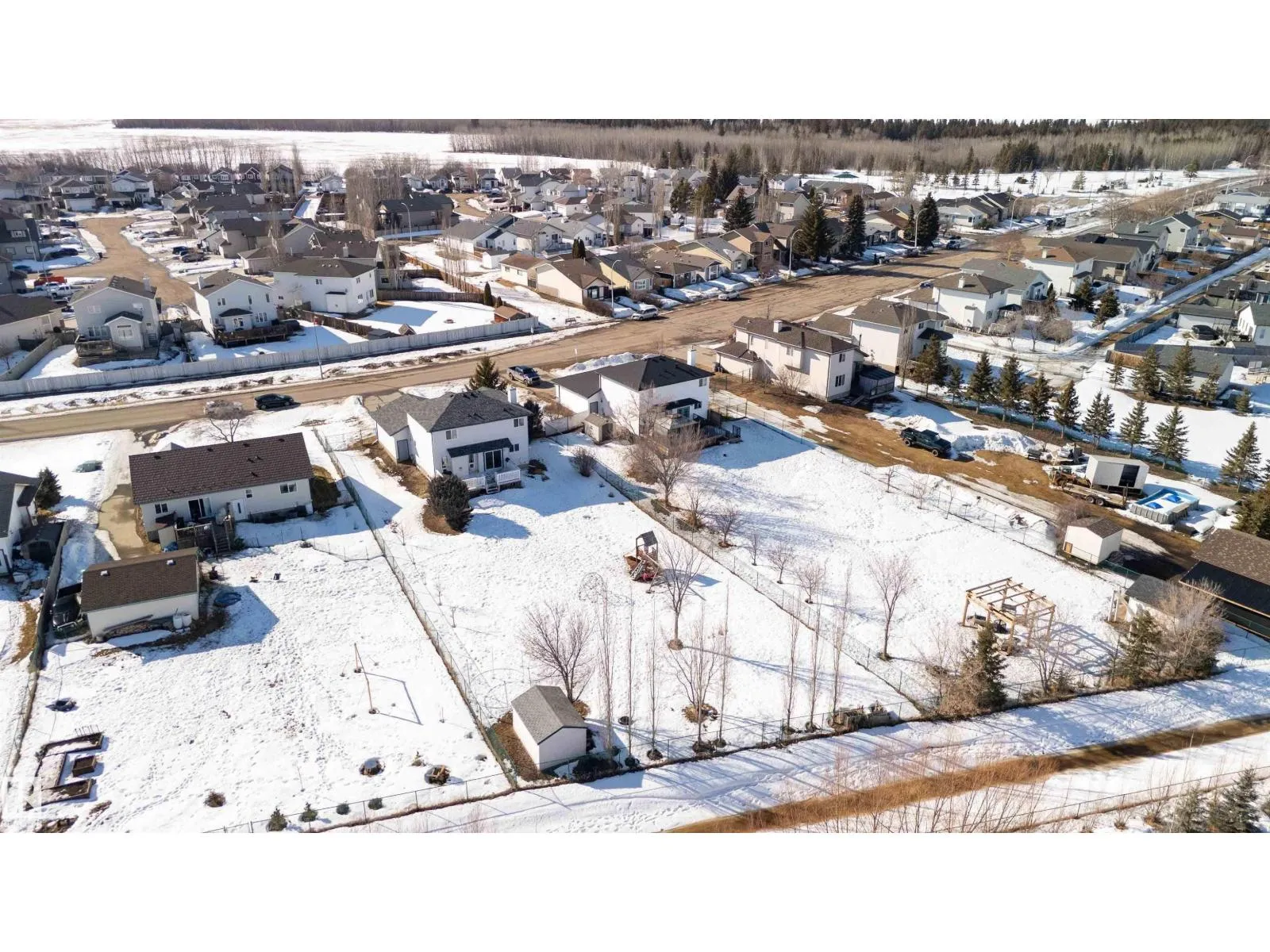 Ever dream of owning a .4-acre lot with the convenience of city water? This solid 2004-built, 1,816 sq. ft. two-storey home offers the perfect balance of massive outdoor space for the kids to play without the high maintenance of full acreage living. Featuring 5 bedrooms, two main-floor living rooms, and a fully developed basement with an additional rec room, there is space for everyone. The home is topped with a new roof (2024) and features a bright, west-facing layout. Outside, youâll find a large garden, numerous fruit trees, a shed, and a deck with a gas BBQ hookup. The property includes a double attached garage and ample parking for an RV. Perfectly situated for convenience, you are walking distance to the elementary school and just 15 minutes from CFB Edmonton. This is a rare opportunity to secure a spacious family home on a prime, oversized lot. (id:27476)