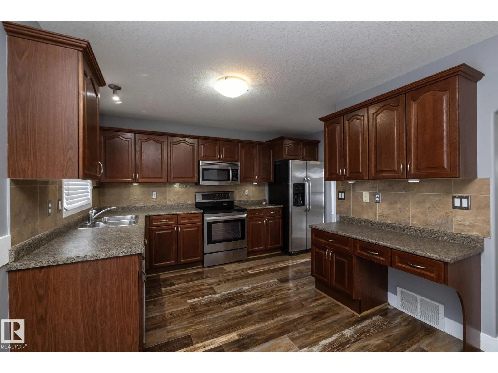 Welcome to this Immaculate & renovated 2 storey with 3 bedrooms, 3 bathrooms, finished basement, Central A/C, heated oversized double detached garage with 220 wiring This home is in a premiere location & only a farmers field behind you & short walk to Landing Trail School as well as the new water play park. Inside you will find a warm inviting atmosphere with brand new paint, flooring, fixtures & much more. Large living room with a fireplace feature wall, spacious updated kitchen with lots of cabinets, stainless steel appliances & good sized dining room with double French doors leading to your private deck. Main floor bathroom completes this level. Upstairs offers 3 good sized bedrooms, 2 full bathrooms including a 4 piece en-suite & walk-in closet in primary bedroom. 2 additional bedrooms, 4 piece common bath & plenty of closet space completes the upper floor. Basement is fully developed with family room, storage room & convenient den. This move in ready home is immaculate & in a great location. (id:27476)