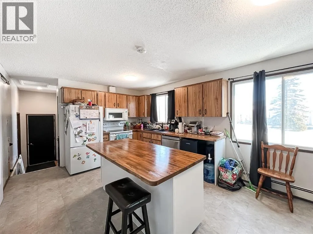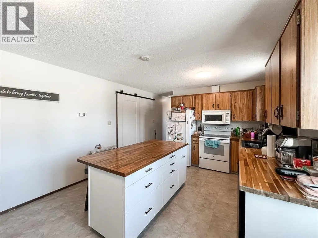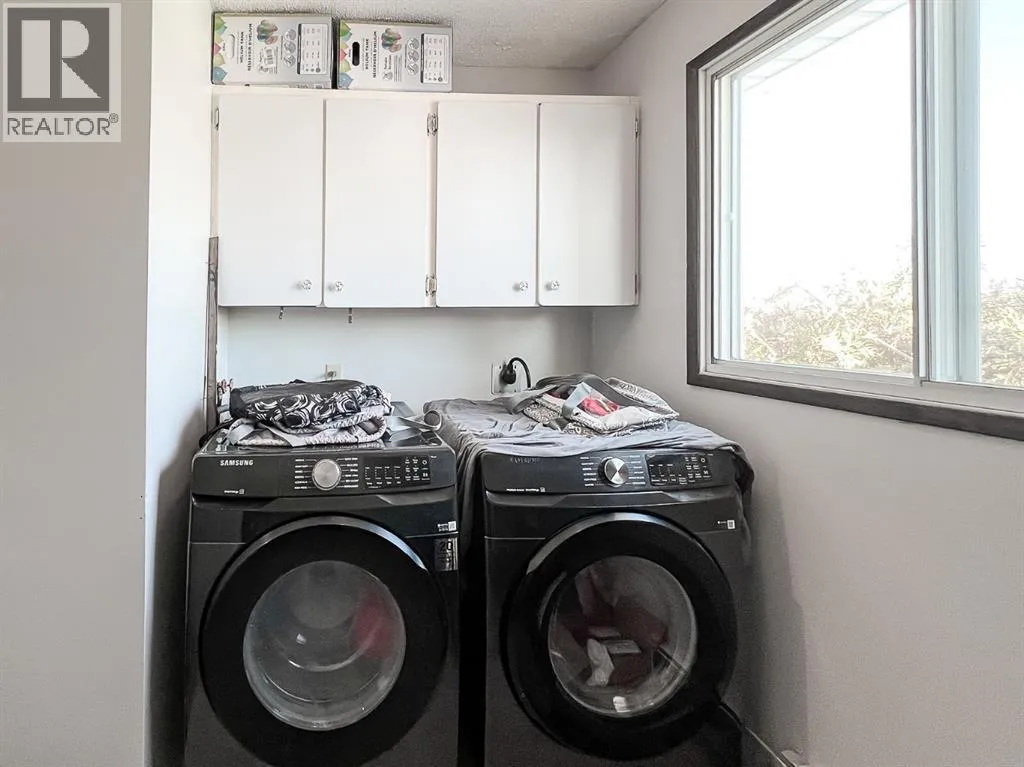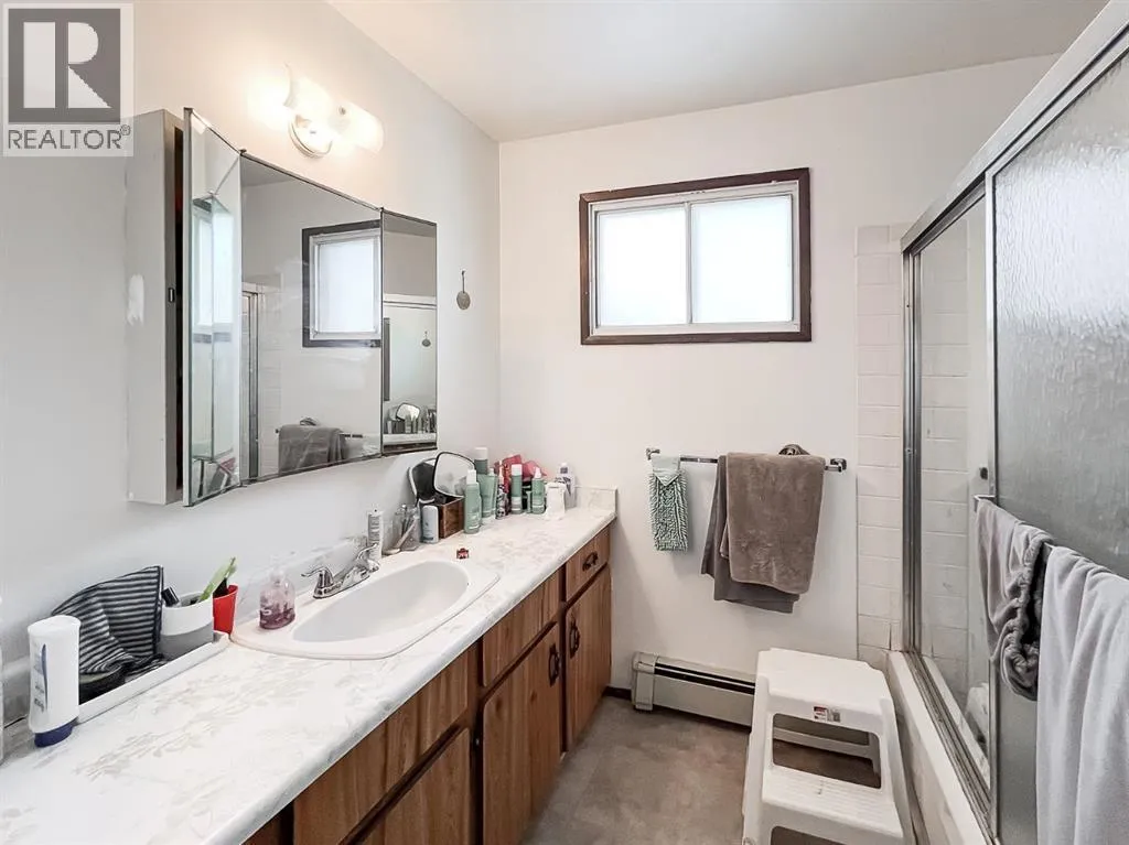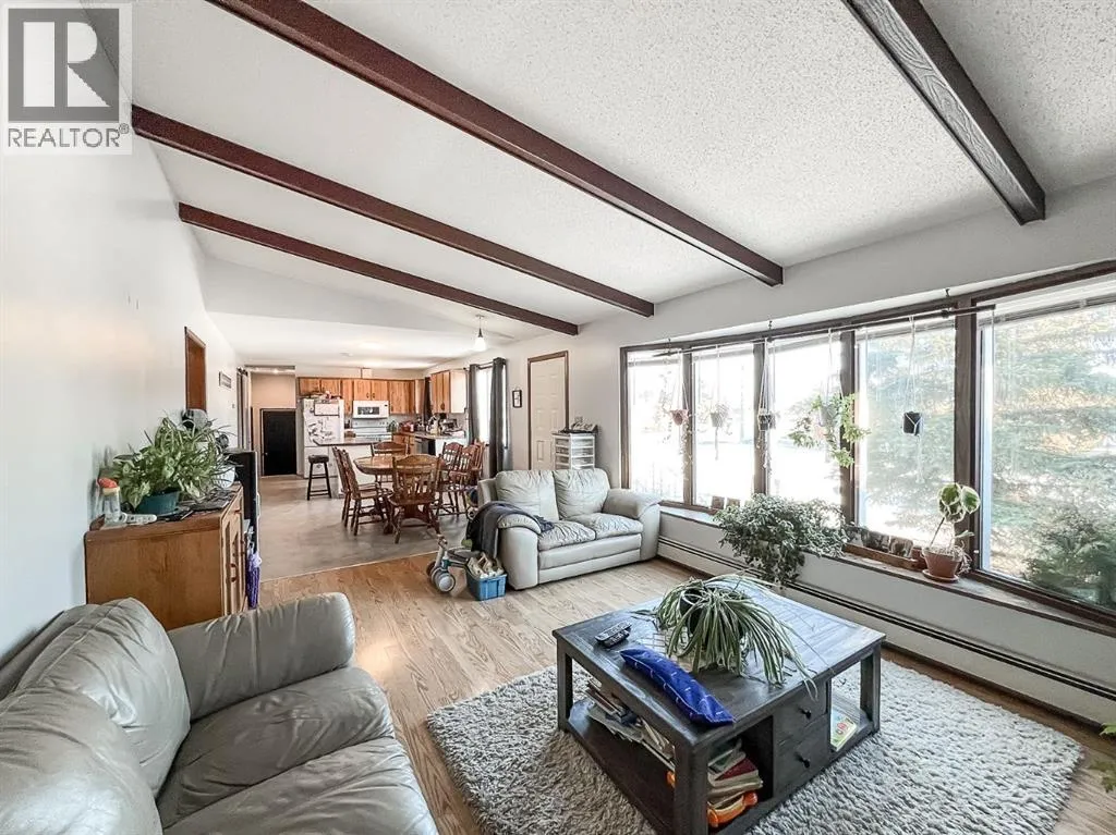This welcoming 5-bedroom, 2-bathroom home sits on a generous corner lot in Girouxville and truly offers everything a family could want. The open-concept main floor boasts a bright, airy layout with large windows, an eat-up kitchen island, and abundant cabinetry that flows seamlessly into the dining and living areas. Ideal for both everyday living and effortless entertaining. 3 main-floor bedrooms and a 4-piece bathroom provide convenience and comfort, while the primary bedroom offers direct access to the back deck and yard through sliding patio doors. Youâll also appreciate the main-floor laundry and a spacious mudroom-style entrance off the attached garage. The fully finished basement adds incredible versatility, featuring a large rec room, 2 additional bedrooms, a 3-piece bathroom, a flexible bonus room perfect for an office or home gym, and 2 oversized walk-in storage closets complete with built-in shelving. Outside, the expansive lot delivers ample space for outdoor activities, and the back-lane access is perfect for RV parking or extra storage. Move-in ready and packed with value, this home is the perfect fit for a growing family. Book your showing today! (id:27476)