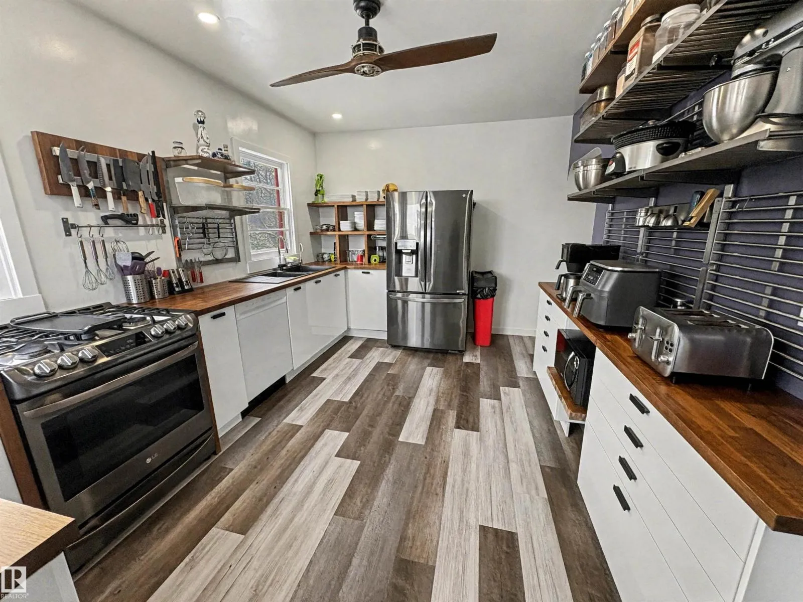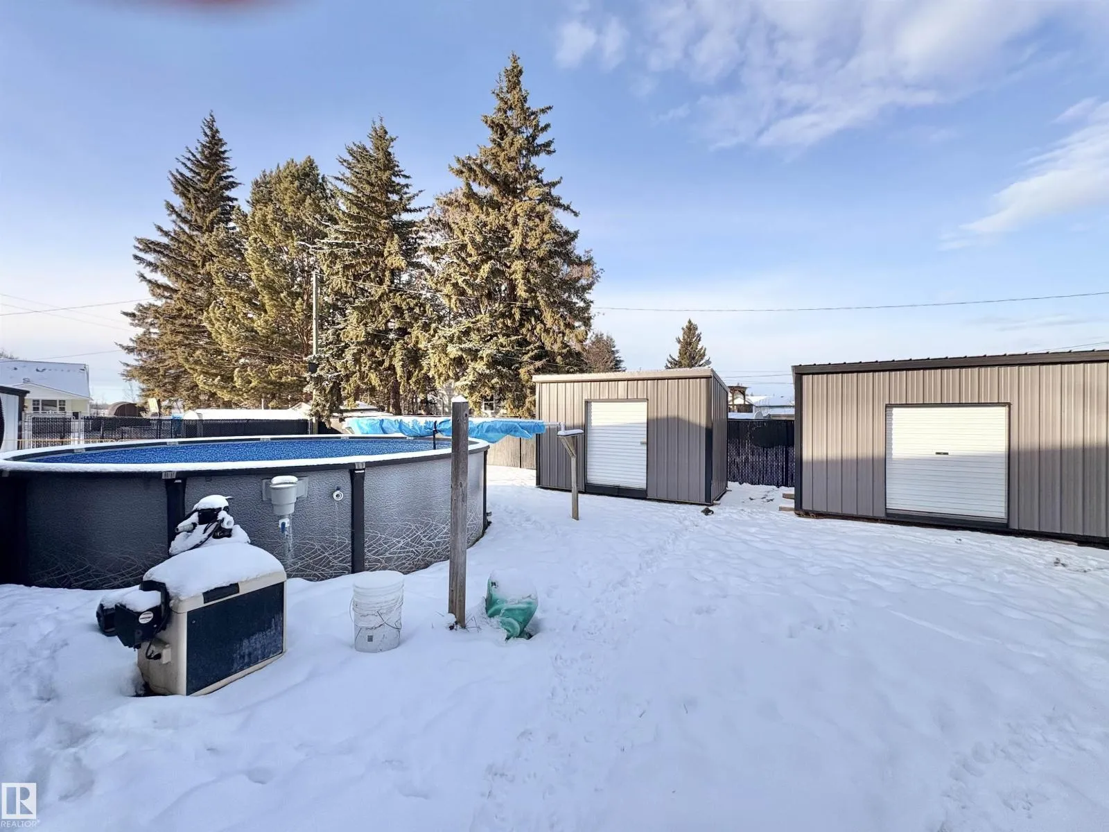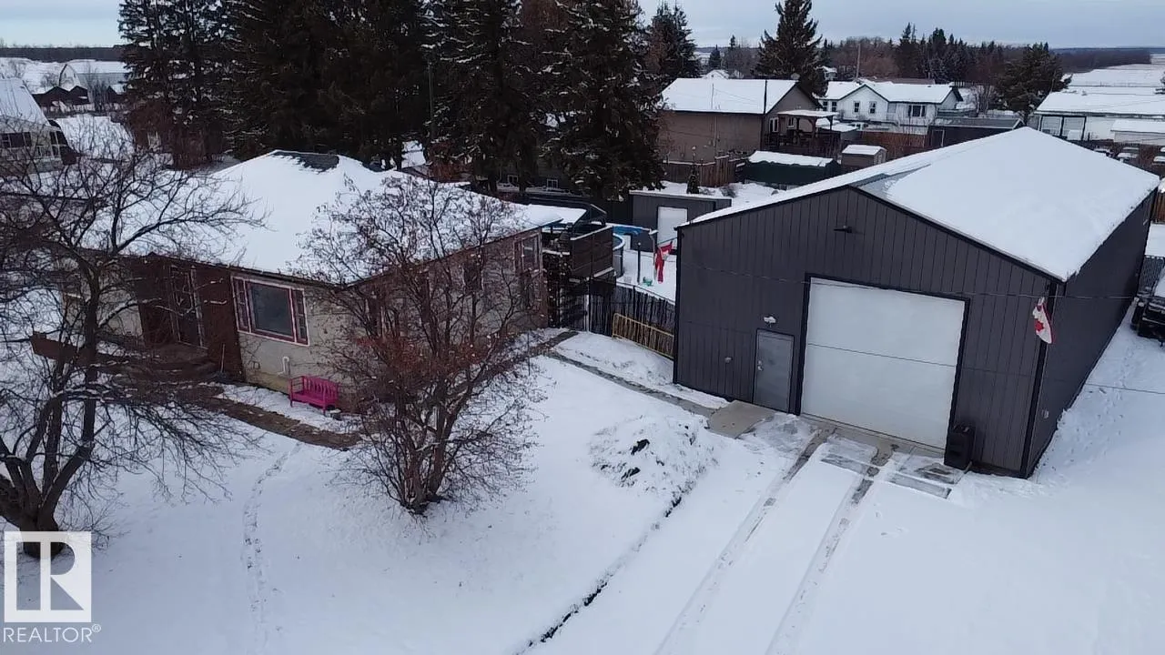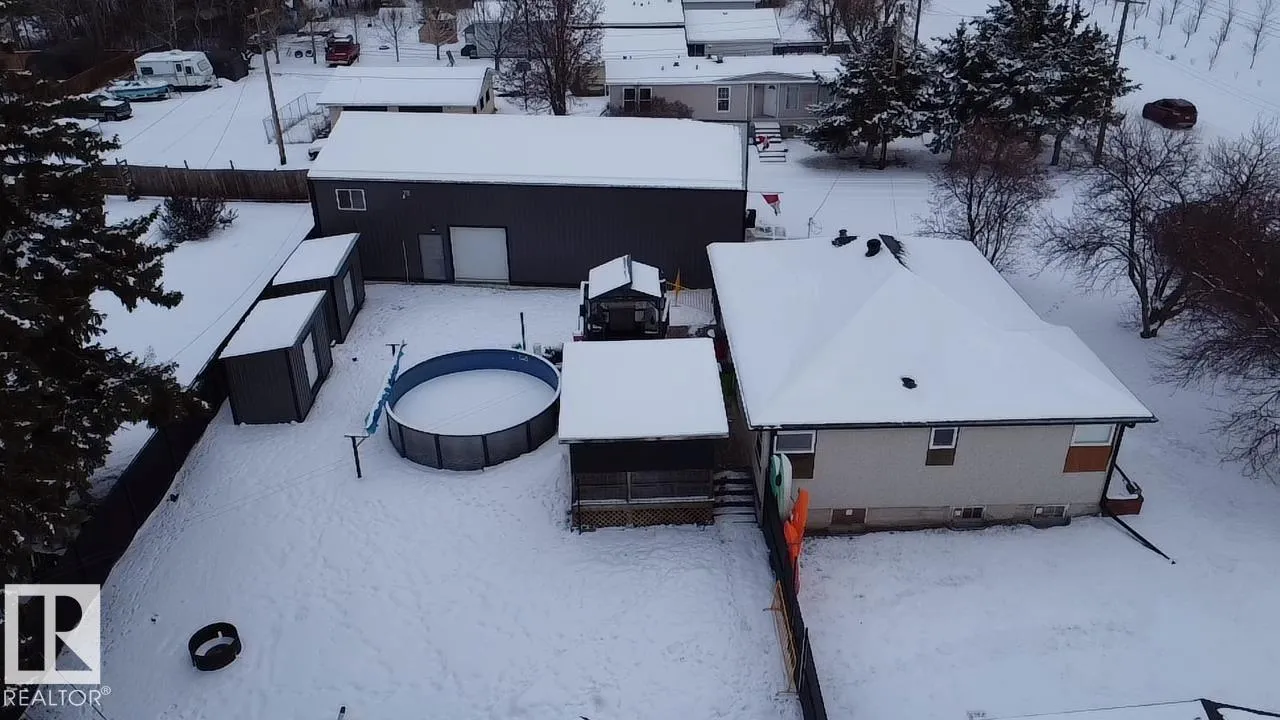 Charming Character Home w/ Endless Possibilities! Adorable bungalow in the village of Glendon perfectly blends character w/ modern upgrades. Bright front living room flows into a dining area. Updated kitchen features butcher block countertops, gas stove, sleek pull out cabinets & shelving. 3 bdrms & 2 baths including a primary w/ large closet. Partially developed basement provides ample storage, laundry & room for additional living space. Step outside to a private entertainment oasis, huge deck w/ covered seating, gazebo for cooking station w/ gas hookup & above-ground pool complete w/ heater & newer lining. Large, fully fenced lot includes 2 sheds, firepit & RV parking w/ power. 30' x 60' shop is truly impressive featuring an engineered concrete slab, in-floor heating, 220 power, 2 roll-up doors & a 10' x 30' mezzanine/developed office, perfect for a home business or hobby workspace. Close to school, park, village amenities & conveniently located between Bonnyville & St. Paul! Comfort & Opportunity! (id:27476)