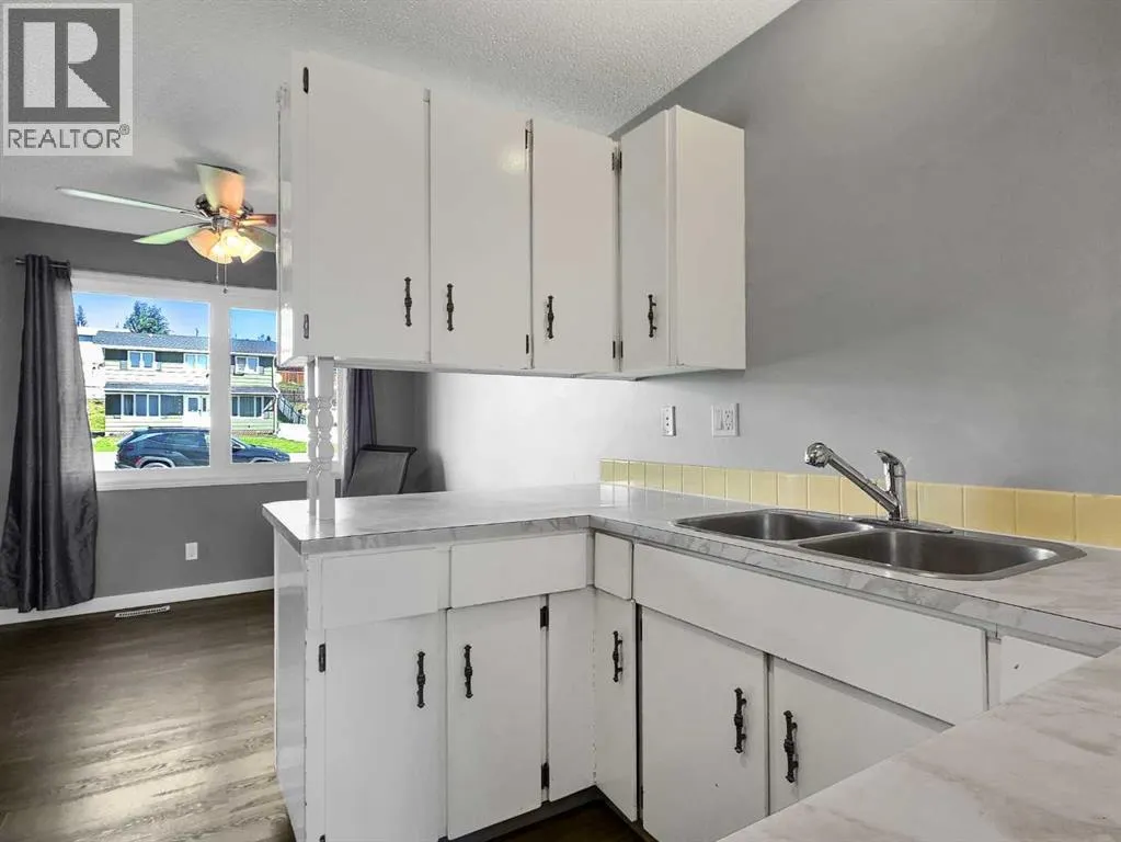 Welcome to 98 97 Ave in Grande Cacheâan inviting townhouse condo that offers comfort, space, and some incredible views. Sunlight pours in through the south-facing windows, highlighting the stunning Rocky Mountains, treetops, and morning sunrises. The home features three bedrooms upstairs, including a generous primary with a large closet, plus a full bathroom on the upper level and a convenient half bath on the main. The main floor layout includes a functional kitchen with plenty of storage and counterspace, and a bright, cozy living room that frames the mountain views perfectly. The basement offers even more living space and laundry area, plus a walkout to a small fenced yardâideal for relaxing outdoors. Affordable, low-maintenance, and move-in readyâthis home is a great opportunity to make your start in the mountains! (id:27476)