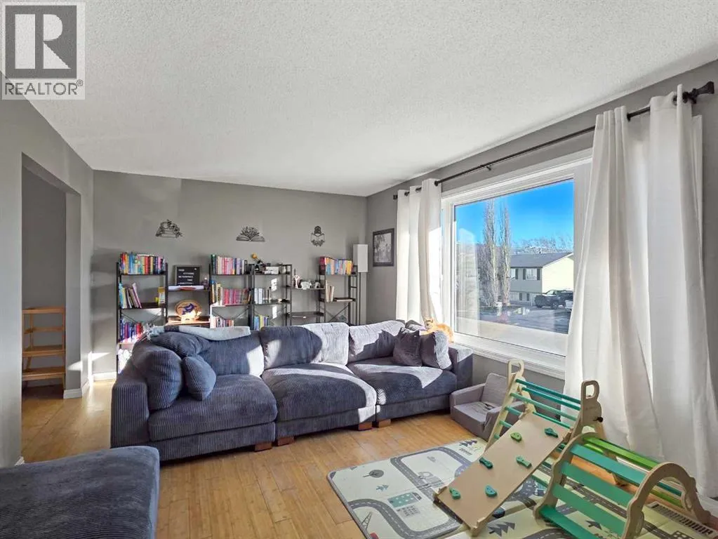 This 4-level split home is located on a quiet street and offers comfort and functional living space throughout. The main level features a comfortable living room and an open dining area, ideal for gatherings, with a separate kitchen offering ample cabinet and counter space. The upper level has two bedrooms, including a primary bedroom that fits a king-sized bed, and a full bathroom. On the lower level, you'll find a third bedroom and a family room currently used as an additional bedroom. The backyard, accessible from the kitchen, includes a deck and plenty of space for pets or children. The basement offers extra storage and a laundry area. The home has hardwood floors and tile throughout. Call your realtor to book your in person showing! (id:27476)