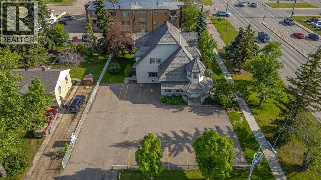 Introducing an exceptional opportunity to establish your business in an iconic office building located in the heart of Grande Prairie. Situated directly off 100th Street, this building boasts a total of 6,030 SF, which includes the basement area. Upon entering the 2,301 SF main floor, you'll be greeted by a functional and inviting reception area. The floor plan includes three spacious offices, a large bullpen with great windows for natural light, and a washroom. Upstairs, the 1,428 SF space offers three additional offices, a boardroom, and flex space. The property features a paved parking lot with 10 stalls, ensuring convenient and secure powered parking for your employees and clients. Moreover, ample additional street parking in the area further enhances accessibility. This is an exceptional opportunity to establish your business in a sought after location with incredible exposure, locations like this simply do not come available often. Call your Commercial Realtor© for more information or to book a showing today. (id:27476)