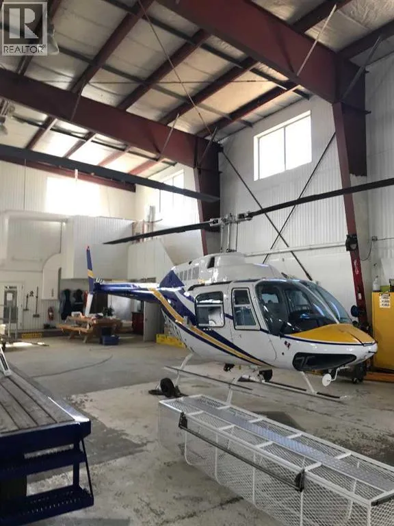 Airport Hanger at the Grande Prairie Airport. Hanger is 70 x 90 wide with an 84 ft bifold power door. Steel Construction, metal exterior, bright white metal interior. Windows around the top of the building, the owner installed after purchase. The hangar has 2 unit heaters, 2 radiant heaters, concrete floors, 220 power and a 2 piece bath. The office is 36 x 42, has 5 offices, 2 baths, reception area and kitchen. Very nicely done with tile floors and upper-end finishings. In-floor heat and municipal water, septic pumps into the airport system. The airport lease assumable expires October 31st, 2026, the new owner can enter into a new lease for 15 years. Aviation uses only. Call your Realtor today to book a viewing. (id:27476)