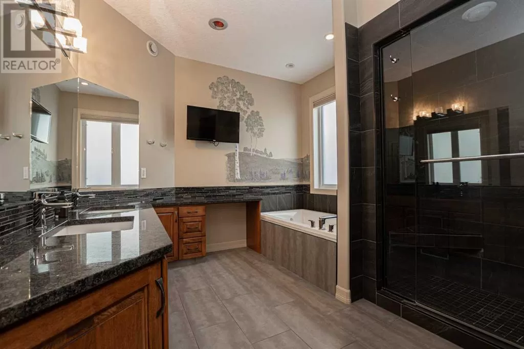 Welcome to this stunning home located in the highly sought-after Mission Estates, where luxury and convenience come together seamlessly. Nestled on a massive, treed lot, this property offers unparalleled privacy and tranquility, making it the perfect retreat while still being close to all the amenities you could need. Designed with hosting in mind, this home is ideal for entertaining family and friends. The spacious theatre room provides a dedicated space for movie nights, while the bar area creates the perfect ambiance for gathering, only feet away from an entrance to a second level balcony. The huge bonus room offers versatile space, whether you're looking to create a play area, a home gym, or an additional entertaining area. The basement features in floor heating along with 5 spacious bedrooms, and a bonus room. The heart of the home is the chef-inspired kitchen, which boasts a walk-through pantry for ultimate convenience and double wall ovens to accommodate large meals with ease. Whether you're preparing a quiet dinner for two or cooking for a crowd, this kitchen is up to the task. This luxurious primary bedroom offers a serene retreat with ample space, featuring a large walk-in closet, a private entrance to the balcony allows you to step outside and enjoy the fresh air. The 5-piece en-suite bathroom is a true oasis, complete with in-floor heating for ultimate comfort.For those in need of extra storage, the 3-car heated garage provides ample space to park vehicles or store belongings. It also features a separate entrance to the basement. The large driveway further adds to the appeal, offering plenty of room for additional parking.This property truly has it allâa prime location, expansive lot, and thoughtfully designed spaces perfect for both relaxation and entertainment. Don't miss your chance to make this dream home your reality. Reach out to your agent today to view! ** Two brand new furnaces just installed** (id:27476)