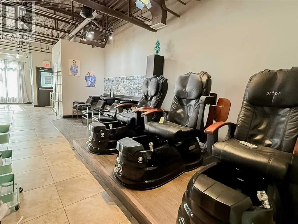 This prime commercial space is a fully built-out, nearly turnkey spa, offering a cost-effective and quick opening for a salon or spa. Featuring high-end tenant improvements, the space boasts a polished and inviting atmosphere with an open-concept layout ideal for a salon, private treatment rooms, and a dedicated staff area. The property also offers an option for an additional 1,000 SF at the rear for future expansion options or additional storage. With excellent exposure, ample parking, and generous storage, this location is designed to support a thriving business. Donât miss outâcall your local Commercial Realtor® today to book a showing or for more information. (Base Rent: $20 PSF = $3,231.67/month + GST. Additional Rent: $13 PSF = $2,100.58/month + GST (includes gas, power, and water). Total All-In Monthly Payment: $5,332.25/month + GST.) (id:27476)