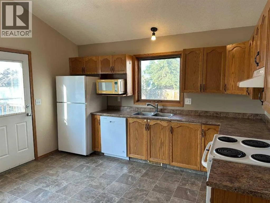 Fully-developed, family home on low traffic road with park & playground right across the street! Now is the time to move & this property could have you in sooner than you think with immediate possession possible! Lots of great things about this 4 bedroom & 3 bathroom, 4 level-split that you are sure to value. Some highlights are the south facing living room on main level with large windows, vaulted ceilings providing that extra spaciousness feeling, and huge main entry with tiled flooring. Main level also has heaps of cabinets in the kitchen with dining area combined and door leading to your backyard. Two bedrooms are upstairs including the primary with handy ensuite, as well on this floor is hallway linen closet and the main bathroom with tiled shower surround. 3rd level has big family fun room & another bedroom with 2 separate closets. Great for the kid with a lot of stuff and or clothes! 4th level has the home's 4th bedroom, a great flex room that could be a playroom, office, den, or storage room; the utility & laundry area, storage space and 3-piece bathroom. Awesome utilization of the whole space will meet a ton of a familiesâ needs. Property would make for a superb rental in this booming Grande Prairie market. Attached double garage, fenced backyard and two-level deck to enjoy our great outdoors on are also more benefits to enjoy. Contact a REALTOR® for more information or to view! (id:27476)