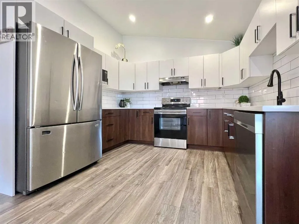 Welcome to Westgate! One of Grande Prairieâs most sought-after communities, known for its striking modern streetscapes, newly constructed homes, and unbeatable location near the airport, Costco, local restaurants and favourite retail outlets, this neighborhood blends style, convenience, and prestige.Built in 2018 by Grande Built Homes, this executive modified bi-level has been impeccably maintained by its original owner. From the moment you enter, the open-concept design draws you in⦠seamlessly connecting the kitchen, dining, and living spaces in a way that feels airy and inviting. The kitchen is practical and dreamy, featuring quartz countertops, two-tone cabinetry, stainless steel appliances, and a gleaming white tile backsplash. Modern lighting, including sleek fixtures and recessed pot lights, ensures every detail shines.The main level offers two well-appointed bedrooms and a full bathroom, while the upper level is reserved for the chic and spacious primary suite. This private retreat boasts a generous walk-in closet and a bright ensuite, offering a private escape at the end of the day.The fully finished basement expands your living space with style, featuring a wet bar, durable vinyl plank flooring, a large bedroom with an oversized closet framed by trendy barn doors, and a stunning bathroom with a tiled 5-foot shower. A spacious utility room houses the washer, dryer, and tankless hot water system.Outdoors, the property continues to impress. The backyard houses a sizeable deck, optional ramp access, a paved lower pad, lush lawn, and raised garden beds with greenhouse stands⦠ideal for growing your own fresh produce. An oversized side gate adds convenience, and the fully finished double garage ensures ample space for storage or parking.Enjoy the lifestyle of Westgate, where walking trails and a scenic pond are just steps from your door, all while remaining minutes from the cityâs best amenities. This home is a statement of practical modern living. Giv e your favourite agent a call to view it person today! (id:27476)