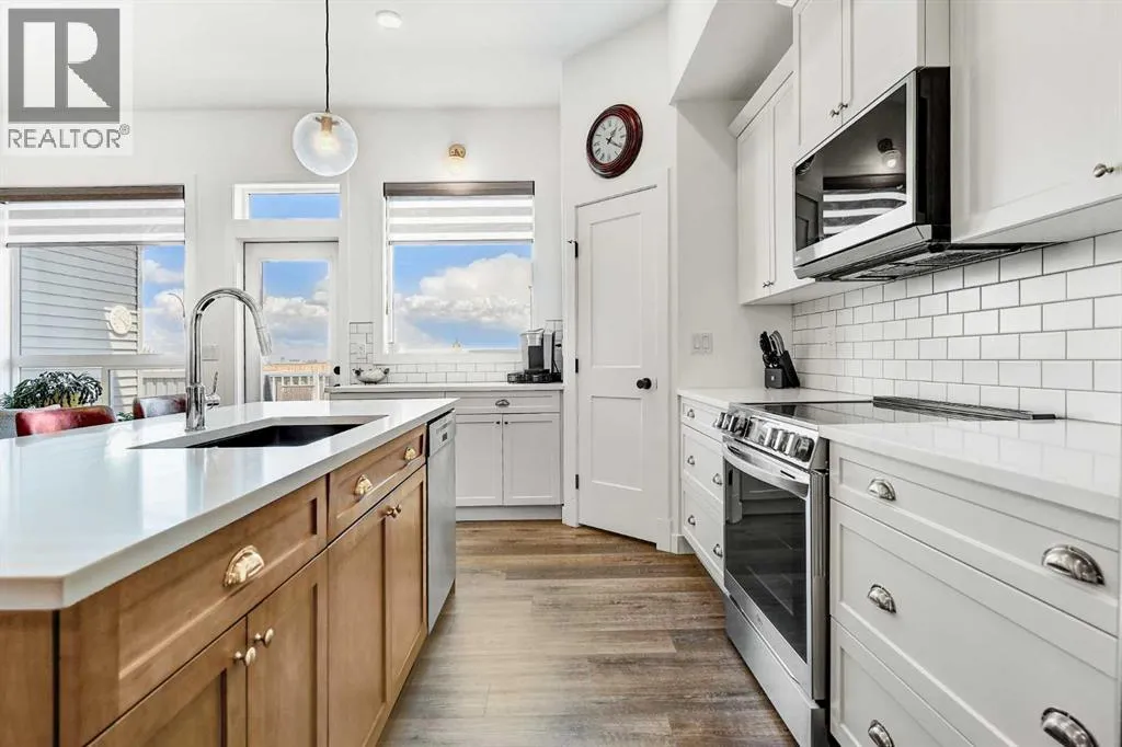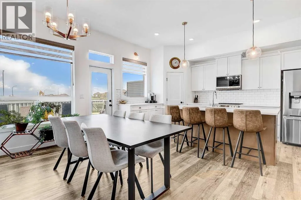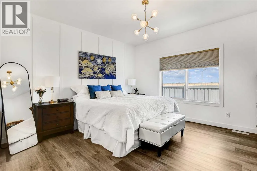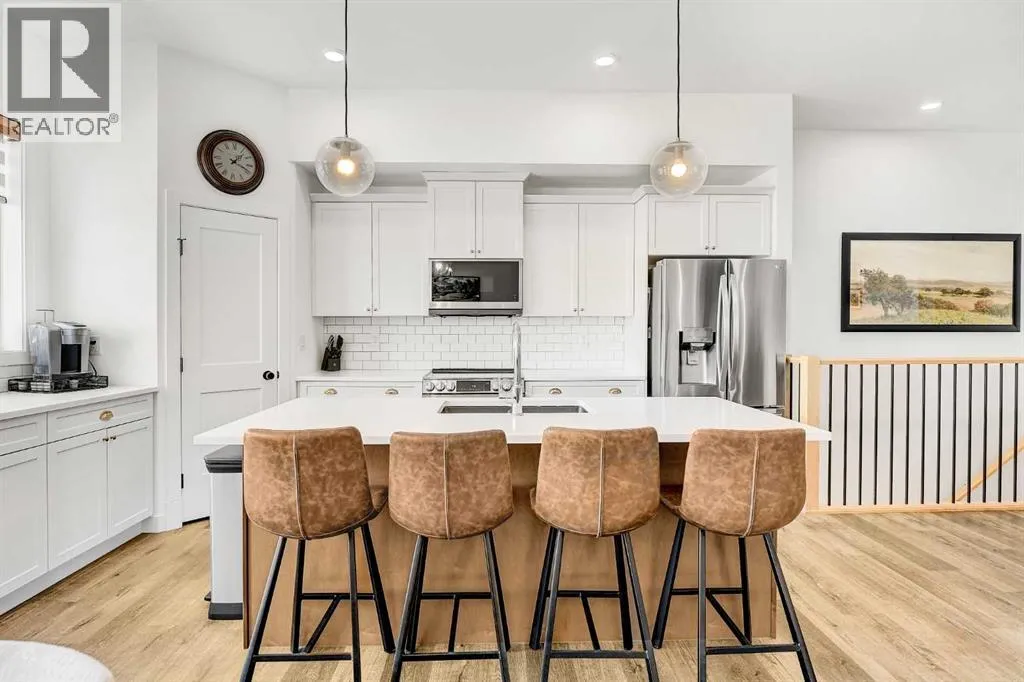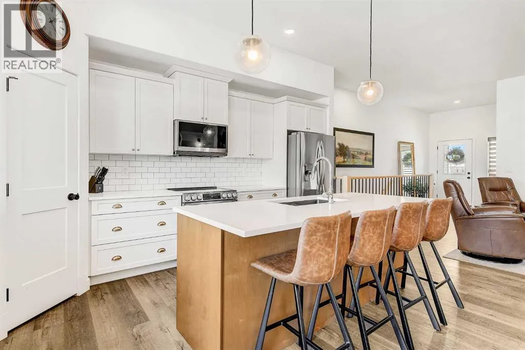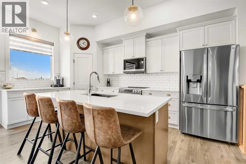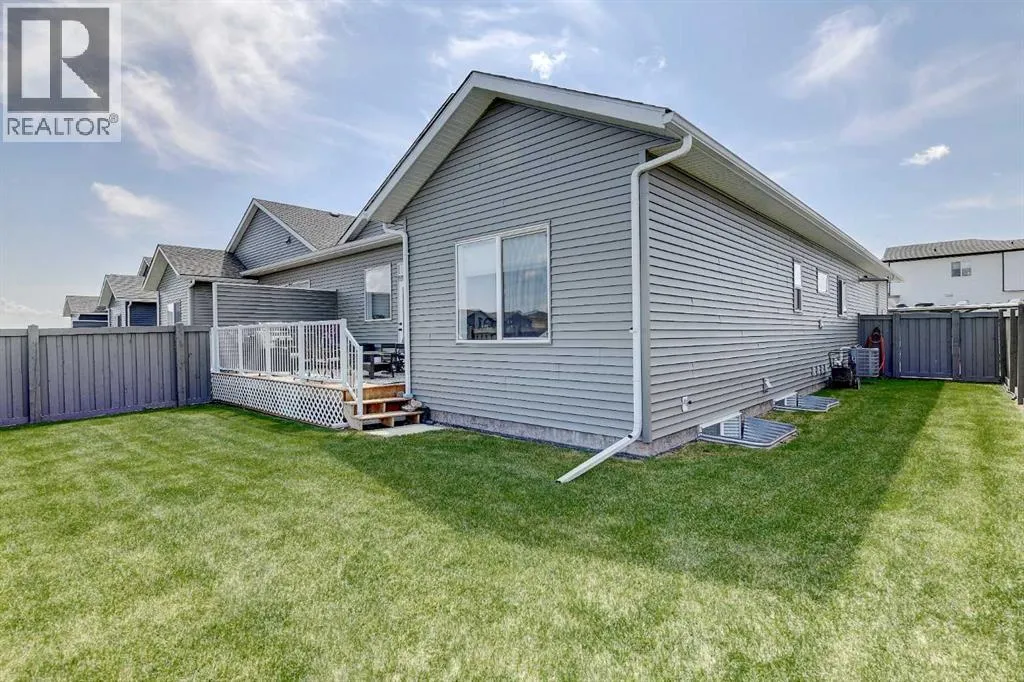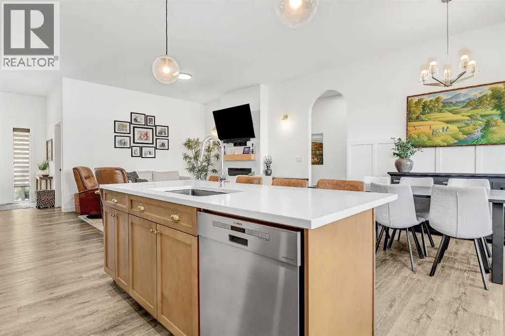 Welcome to this stunning 4 bed + den, 3 full bath bungalow nestled in the heart of the desirable Kensington Living community. Offering 1,382 sq ft of thoughtfully designed living space, this home is perfect for those seeking comfort, elegance, and a low-maintenance lifestyle.Step inside and be greeted by a perfect open-concept layout featuring top-tier stainless steel appliances, a reverse osmosis water system, and premium vinyl plank flooring that adds both durability and beauty. The designer lighting and elegant zebra blinds elevate every space, while central A/C ensures year-round comfort.On the main floor, youâll find 2 spacious bedrooms, including the primary suite, along with the convenience of upstairs laundry. The fully developed basement features an additional 2 bedrooms, a versatile den, and a full bathroomâideal for guests, home office, or extra family space.Enjoy entertaining in your private backyard with a BBQ gas line or take advantage of the impressive 3-car epoxy-coated garage floor complete with a garage heaterâperfect for Alberta winters. Need more space? Thereâs even RV parking!This home offers luxury, practicality, and pride of ownership in every detailâjust move in and enjoy. (id:27476)