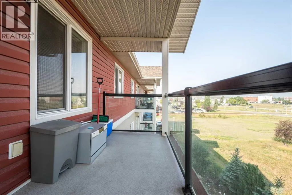 Top Floor 2 Bed, 2 Bath Condo â Bright, Spacious & Ideally Located/Welcome to this beautifully designed top-floor unit offering an abundance of natural light and unobstructed sky views. With two spacious bedrooms and two full bathrooms, this home delivers both comfort and convenience in one of Grande Prairie's most sought-after locations. Interior Highlights: Thoughtfully designed open-concept floor plan /In-suite laundry featuring a stackable washer/dryer, plus space for a stand-up freezer or extra storage/Two generously sized bedrooms, both accommodating king-sized furniture/Primary bedroom includes a walk-in closet, a full ensuite bath, and a stylish custom feature wall with an electric fireplace Outdoor Space:/Covered balcony with sleek glass railing/Equipped with a natural gas hookupâperfect for BBQing/Private corner unit placement enhances the airy, open ambianceParking & Condo Fees: Includes one assigned parking stall/Option to rent an additional stallConvenient street parking available nearby/Condo fee: $418/month, covering heat, water, sewer, garbage, snow removal, common area maintenance, and professional property managementBuilding Features: Clean, well-maintained complex with tiled common areas/Elevator access for ease and mobility Secure mail and parcel delivery area/Prime Location :Just minutes from downtown Grande Prairie/Close to gas stations and Keyera Placeâa vibrant recreation hub offering pickleball, basketball, roller skating, badminton, skateboarding, a climbing wall, and more/Experience modern condo living with space, style, and unbeatable convenience!Discover tranquility in the heart of the city at Center Court! With all-concrete construction, this condominium building offers unmatched soundproofing, ensuring your home is a serene escape from the hustle and bustle. Say goodbye to noisy neighbors and late-night disturbances! (id:27476)