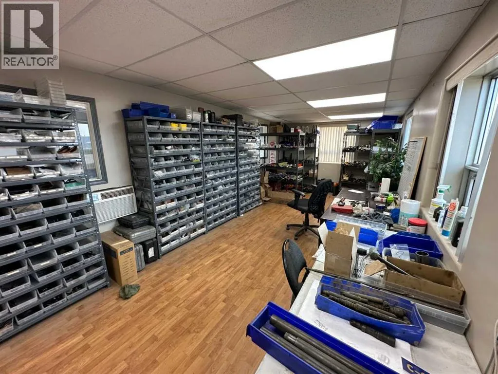 A prime industrial offering in the heart of Grande Prairieâs Richmond Industrial area, this property spans two separately titled lots totaling 1.34 acres, providing future flexibility and expansion potential. The 9,600 sq.ft. shop (built circa 2000) is zoned General Industrial (IG) and features five 60â bays, including a dedicated wash bay, all serviced by 14â x 14â overhead doors. Inside offers approximately 1,500 sq.ft. of air-conditioned office space and 8,100 sq.ft. of shop and mezzanine with two parts rooms. Excellent access in all directions and a functional layout make this property stand out. Please note, the loading deck is not included in the list price. Call your Commercial Realtor© today to arrange a private tour. (id:27476)