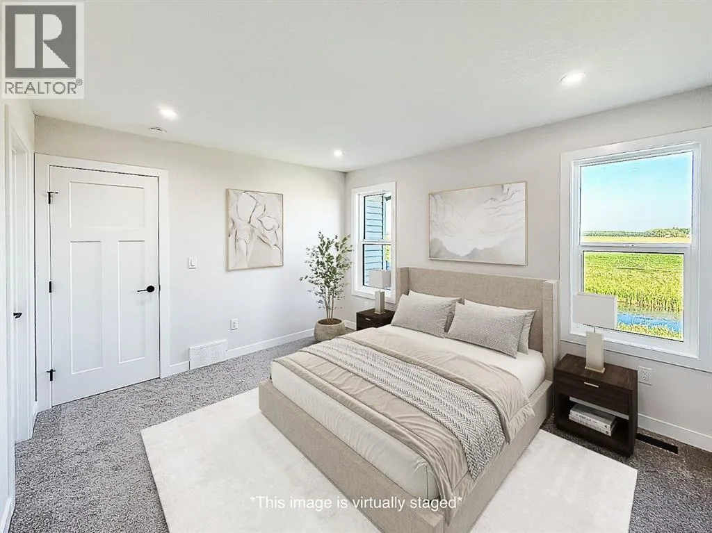 **PRICE REDUCED + $10,000 Appliance Package!** This beautifully crafted 3-bedroom, 2.5-bathroom 2-storey home offers the perfect blend of luxury, comfort, and nature. Backing onto a serene pond with expansive green space, it sits in the furthest developed area on the East side of the city, ensuring privacy for years to come. Step inside to an impressive foyer with 18' ceilings and a modern, eye-catching design. The open-concept main floor is filled with natural light from large triple-paned windows overlooking the pond. The living room showcases a gas fireplace, framed by custom millwork, creating a warm yet refined focal point. The kitchen is a chefâs dream with timeless two-tone cabinetry, quartz countertops, and sleek black fixtures and hardware that tie the design together beautifully. Upstairs, a custom steel railing highlights the extra-wide staircase, leading to a spacious bonus room with bright windows and plenty of room for family time. The primary suite offers a luxurious retreat with plush carpet, a spacious walk-in closet, and a spa-inspired ensuite featuring a double vanity and an impressive tiled walk-in shower. Two additional bedrooms and a full guest bathroom complete the second floor. With no rear neighbours, a stunning backyard, and unobstructed views of the pond, this home is the perfect balance of elegance and tranquillity. This home is built with comfort and efficiency in mind, featuring an HRV system for improved air quality, upgraded insulation in walls and ceilings, and high-efficiency overhead garage doors. With schools, shopping, and walking trails nearby, this home combines comfort and location beautifully. Donât miss your chance to call this home yours. Book your showing today! (id:27476)