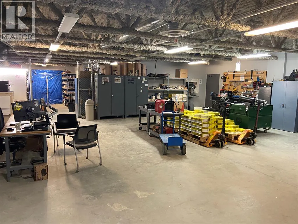 This incredible 38,513 square foot steel framed and concrete block fabrication shop is situated on two titled lots totaling 5.82 acres. With a footprint of 31,224 square feet on the main floor, the building offers 26,920 SF of shop, storage and mechanical space, a ceiling height of 32' in the main warehouse, with four 5 ton cranes scattered throughout and 4,304 SF of immaculate office space. In addition to the main floor there is 7,289 SF of second floor office, board room and a training room area which ensures this property provides the space that any large operation would need. The auxiliary building is a functional 3,540 SF pole frame storage building tucked into the west portion of the graveled and fenced yard. This is a must see for any company entering or expanding their operations in the Grande Prairie area. Call the listing Realtor© for more information or to book a showing today. (id:27476)