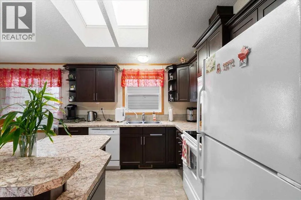 Home sweet home in affordable living! Situated on a corner lot, this an exceptional opportunity to own a lovingly maintained residence. The functional layout is designed to accommodate families. Enjoy the spacious terrace for barbecues and entertaining guests, particularly during summer. Kitchen upgrades include cupboards, an island, backsplash, counter top, sink (2024), Hot water tank (2023), and low maintenance surroundings with its wash rock landscape. The generously sized living room warmly welcomes guests and families, while the master's bedroom features a walk-in-closet and 4-pc ensuite. Two additional well sized bedroom and another 4-pc bathroom are located in the opposite side of the home. Don't miss this opportunity to live in the welcoming community of Trumpeter Village! (id:27476)