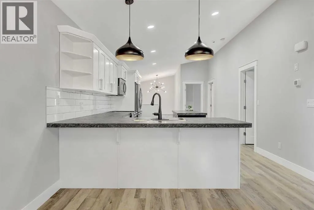 Experience the appeal of a quality well built home that looks and feels brand new! This immaculate property boasts current colors and decor, trendy lighting and modern finishes throughout. Designed for efficiency, it features triple pane windows, R50 attic insulation, and a high-efficiency furnace. The bright, open floor plan has vaulted ceilings, and durable vinyl plank flooring. The custom kitchen is a chef's dream with white shaker soft-close cabinets and drawers, a movable grey island with pull-up seating, built-in desk, subway tile backsplash, and high-end stainless steel appliances: a Samsung double convection oven, Bosch dishwasher, and convection microwave range hood. This spacious residence offers 4 bedrooms (2 up/2 down) and large 3 full bathrooms The large primary suite has a generous closet with custom organizers and a full ensuite. Built-in shelving and custom blinds are featured throughout. The bright, finished basement includes a large living space, high ceilings, large windows, laundry room with extra storage, and a finished play space under the stairs. Enjoy the convenience of a central location within walking distance to all amenities. Concrete parking for 4 vehicles or long enough for RV Parking. The single finished garage is roughed in for heat, and the tiled front entry provides a comfortable welcome. This fine property is ready for immediate possession and will look and feel newer than anything else you can find in the price range. (id:27476)