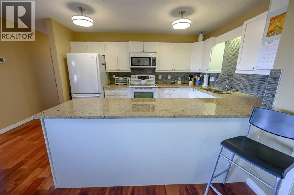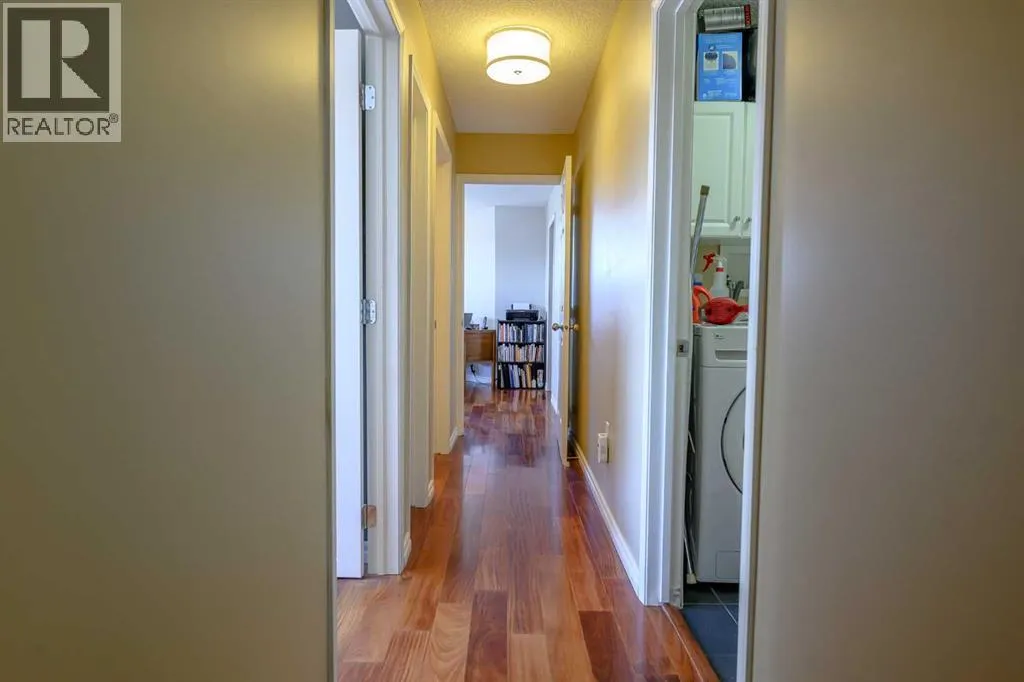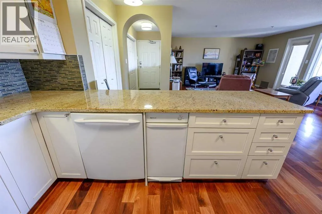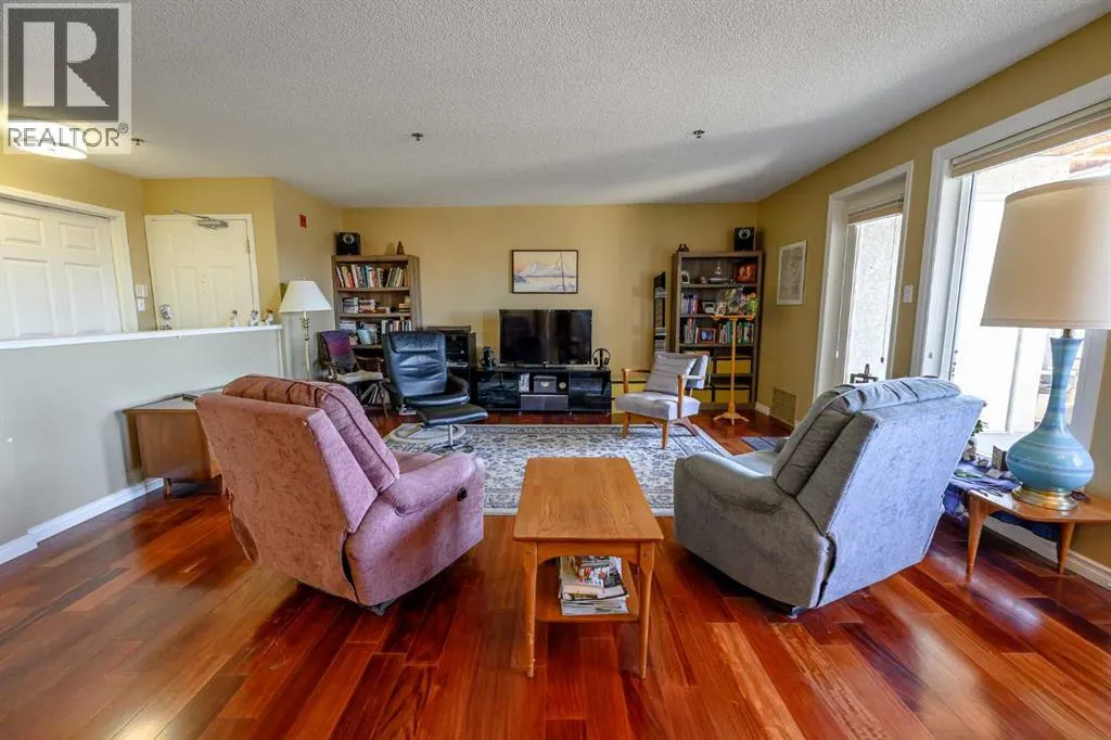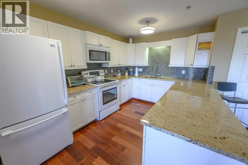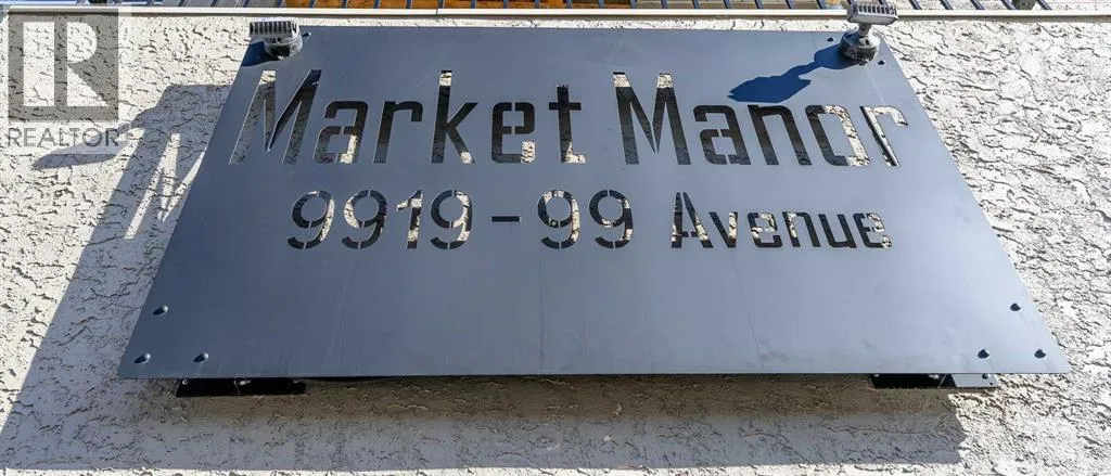 Downtown Condominium Living at its Finest! Experience Market Manor - comfort, convenience, and class in this beautifully designed 2 bedroom, 2 bathroom condominium located right in the heart of Grande Prairie. Perfect for professionals, couples, or small families looking for a modern urban lifestyle. It is close to everything - shopping, restaurants, library, healthcare, recreation & other professional services. Spacious and open design in this unique fully renovated condominium. Enjoy quality hardwood and tile flooring, lovely kitchen with white cabinets and granite counters, new windows just installed, the master bedroom has a private ensuite and walk in closet, separate laundry room with storage, and Air Conditioning for warmer days. Designed in the middle of this concrete building is a large atrium common area with high ceilings with skylights that offer tons of natural light; it is a wonderful space to gather for social events to enjoy your friends & family or just have a walk around in the colder months. This is a secure, well-maintained building with many recent upgrades and heated underground assigned parking. There is a car wash by in the underground heated parking and the entrance ramp is heated so no ice accumulates. The monthly condominium fee is $588.33 and includes heat, water, sewer, garbage & recycling, interior & exterior maintenance of common areas, professional management, building insurance & reserve fund contributions. This is an extremely nice unit! Take a look today! (id:27476)