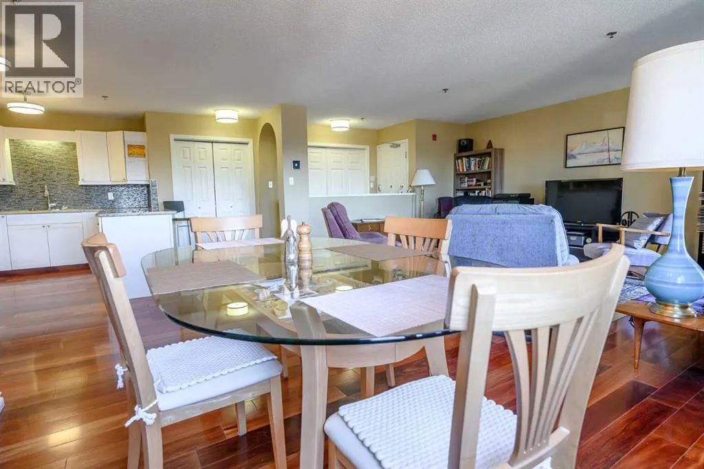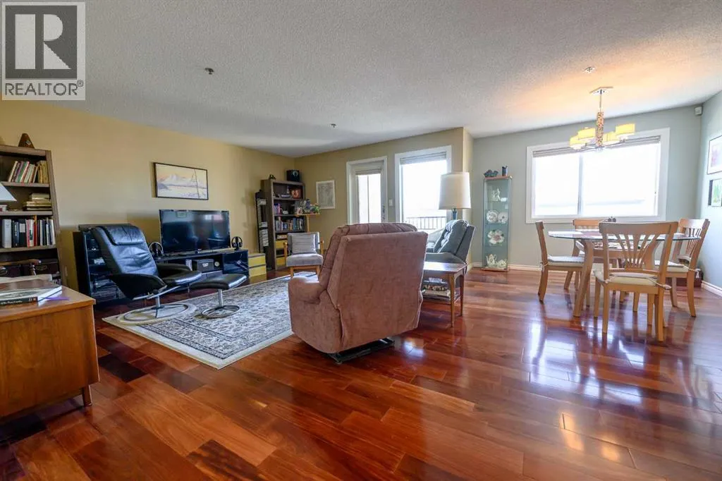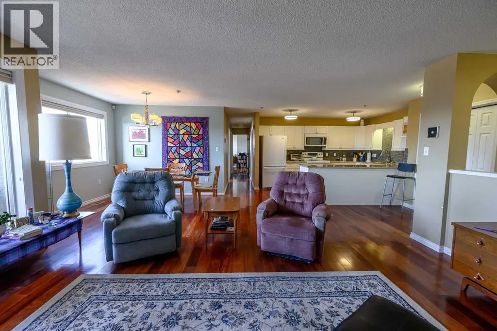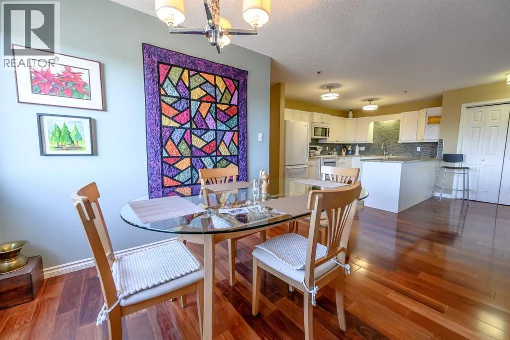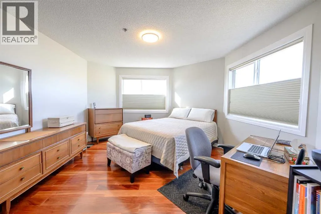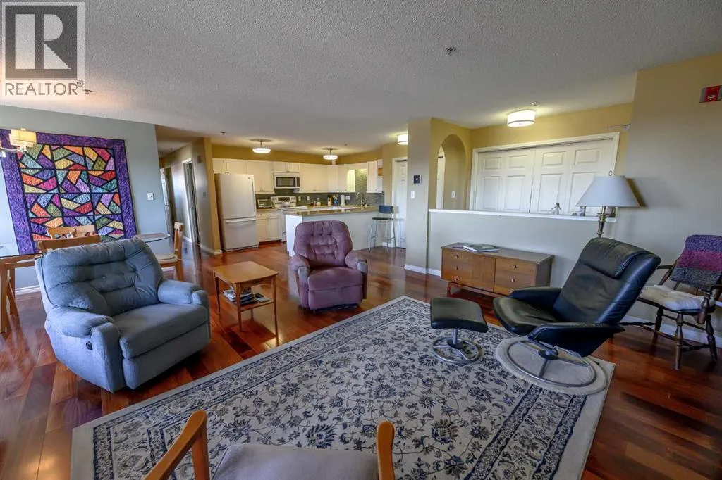Downtown Condominium Living at its Finest! Experience Market Manor - comfort, convenience, and class in this beautifully designed 2 bedroom, 2 bathroom condominium located right in the heart of Grande Prairie. Perfect for professionals, couples, or small families looking for a modern urban lifestyle. It is close to everything - shopping, restaurants, library, healthcare, recreation & other professional services. Spacious and open design in this unique fully renovated condominium. Enjoy quality hardwood and tile flooring, lovely kitchen with white cabinets and granite counters, new windows just installed, the master bedroom has a private ensuite and walk in closet, separate laundry room with storage, and Air Conditioning for warmer days. Designed in the middle of this concrete building is a large atrium common area with high ceilings with skylights that offer tons of natural light; it is a wonderful space to gather for social events to enjoy your friends & family or just have a walk around in the colder months. This is a secure, well-maintained building with many recent upgrades and heated underground assigned parking. There is a car wash by in the underground heated parking and the entrance ramp is heated so no ice accumulates. The monthly condominium fee is $588.33 and includes heat, water, sewer, garbage & recycling, interior & exterior maintenance of common areas, professional management, building insurance & reserve fund contributions. This is an extremely nice unit! Take a look today! (id:27476)