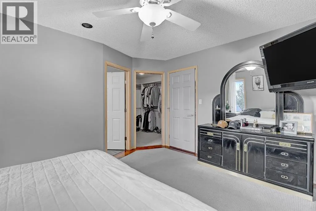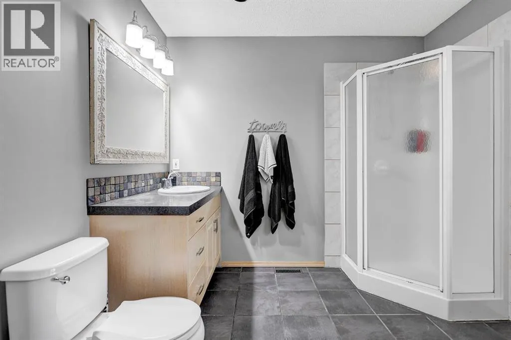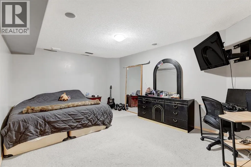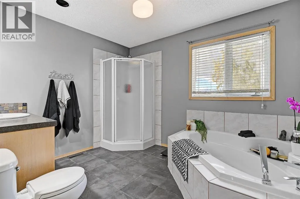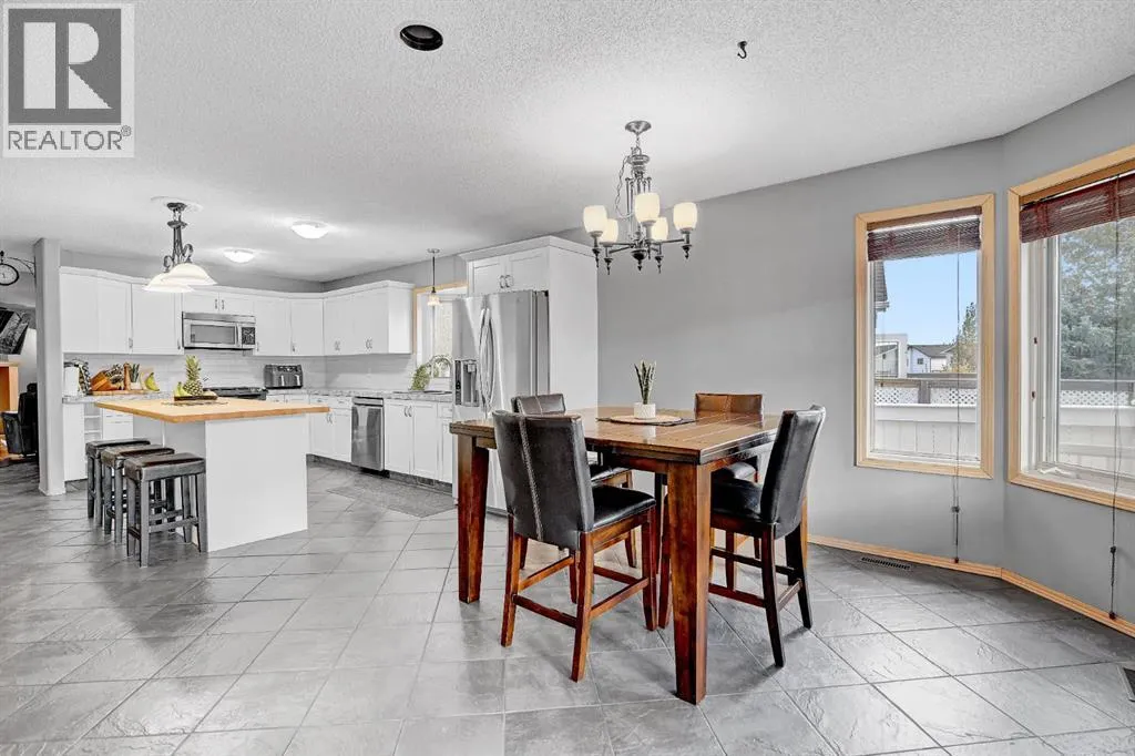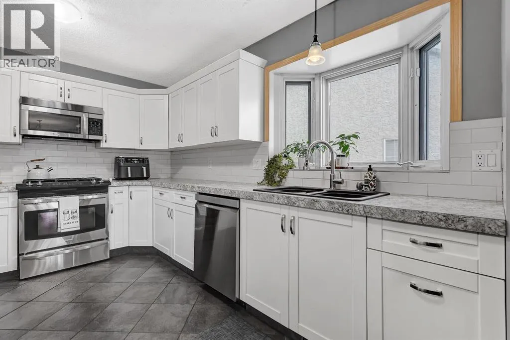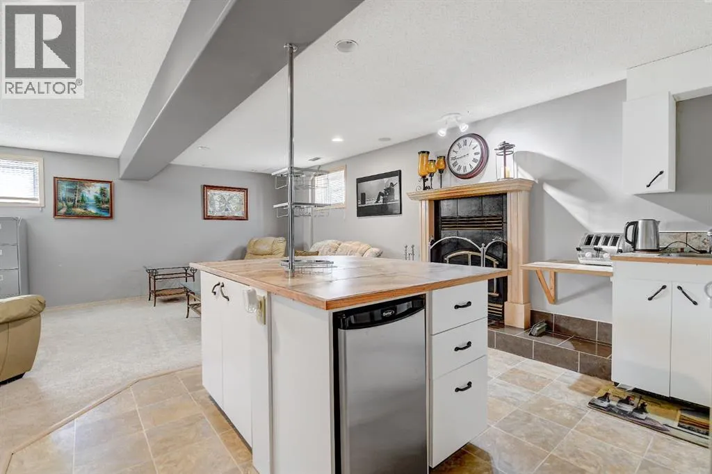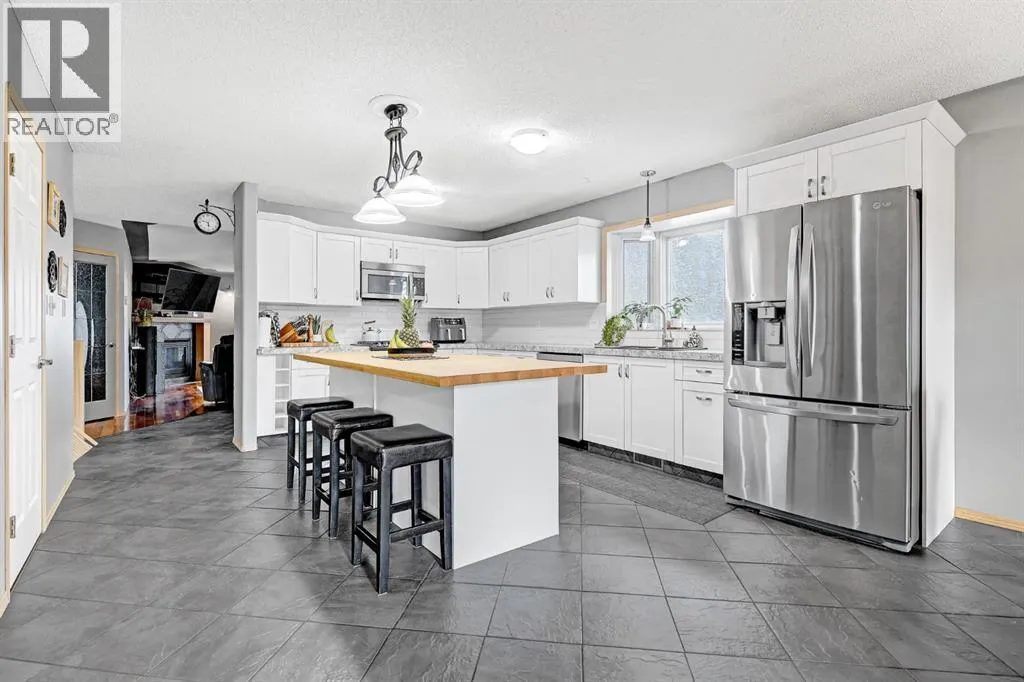 EXCELLENT FAMILY HOME IN A HIGHLY DESIRABLE NEIGHBOURHOOD!This stunning and extensively upgraded home offers exceptional quality, comfort, and style throughout. Featuring hardwood and tile flooring, a bright open-concept main floor with large windows, and a cozy natural gas fireplace, this home is ideal for families and entertainers alike.The spacious kitchen includes a large island, tile backsplash, updated stainless steel appliances, and ample cabinetry. Patio doors off the dining area lead to a 10â x 14â covered deck and concrete patio, overlooking the beautifully landscaped yard complete with a fire pit and stained fencing.The primary bedroom features a walk-in closet and 4-piece ensuite, while the second bedroom, full bathroom, and main floor laundry complete the upper level.The fully developed basement provides incredible versatility, featuring a second kitchen with large island, family room with gas fireplace, theatre room, wet bar, three additional bedrooms, and a 3-piece bathroom. The basement also includes dual-zone in-floor heating, and access to a cold storage room from the garage.Additional highlights:â¢Superior wood fireplace with heat-circulating fan ducted through homeâ¢Built-in speakers & surround sound throughout (including garage)â¢Insulated, heated garage with floor drain and radiant heatâ¢10â x 16â powered storage shedâ¢Triple concrete driveway (27â x 39â)â¢Concrete RV parking pad (12â x 85â)â¢Furnace and ducts recently servicedâ¢Roof replaced 4 years agoâ¢Hot water tank (6 years old)â¢Fresh interior paint and updated fence stainThis executive-style family home has been meticulously maintained and thoughtfully upgraded â offering space, comfort, and quality in one of Grande Prairies best subdivisions! (id:27476)