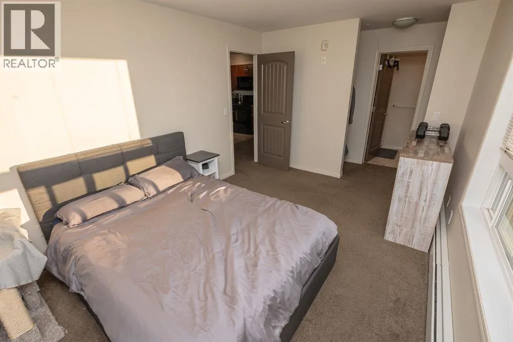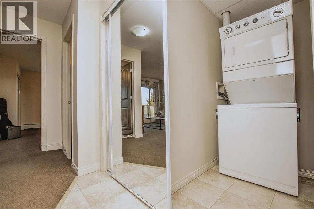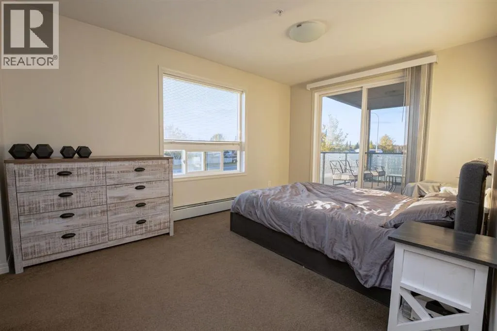 Step inside this bright and inviting two bedroom, two bathroom corner condo in Aurora Estates, where comfort and style blend effortlessly. The open concept layout connects the modern kitchen, equipped with six appliances, to a spacious living and dining area thatâs filled with natural light. The primary bedroom offers a walk through closet leading to a private four piece ensuite, while the second bedroom and additional full bathroom provide flexibility for guests, family, or a home office. In suite laundry adds convenience, and every detail of the design supports easy, low maintenance living. From the living room, step out onto the MASSIVE 8' x 22' deck, a perfect space to relax or entertain while enjoying your private corner location. An assigned underground heated parking stall keeps your vehicle protected through the winter months. Aurora Estates is one of Grande Prairieâs most sought after condominium communities, admired for its professional on site management, cleanliness, and peaceful setting. Condo fees include heat, water, garbage removal, snow clearing, landscaping, and full building maintenance, allowing you to enjoy a quiet and worry free lifestyle in a beautifully cared for environment. (id:27476)