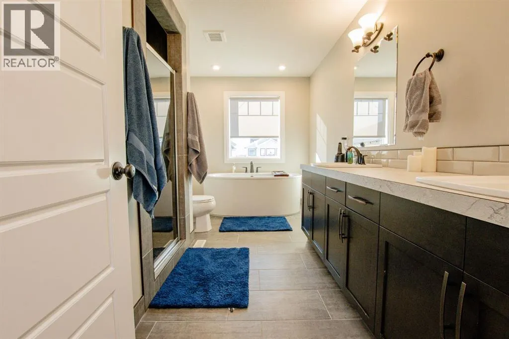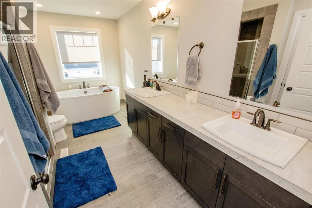 Located in the desirable community of Copperwood, this stunning two storey "Monte Carlo" floorplan by Unique Home Concepts offers modern comfort and thoughtful design throughout. Boasting a fully developed layout and a heated double attached garage, this home also features air conditioning and low-maintenance landscaping, ideal for effortless year-round living. The main floor showcases a bright open-concept design, where the living room with a cozy fireplace flows seamlessly into the stylish kitchen, complete with stainless steel appliances including gas stove, a corner pantry, and an oversized island with seating. The adjacent dining nook offers direct access to the back deck, perfect for entertaining or relaxing outdoors with no neighbours directly behind. Garage entry is made simple with built in shelving and coat hooks for organization. A convenient 2-piece bathroom completes the main level. Upstairs, a spacious bonus room provides additional living space perfect for home office or playroom. The serene primary suite impresses with a large walk-in closet and a luxurious 5-piece ensuite, including dual vanities, a soaker tub, and a separate shower. Two additional bedrooms, a full bathroom, plus a well-appointed laundry room with cabinetry and sink add functionality to the upper floor. The fully developed basement features a generous secondary living room, a fourth bedroom, and another full bathroom, ideal for guests, teens, or extended family. This beautifully finished home combines style, space, and comfort in one of the cityâs most sought-after neighbourhoods. Book your showing today! (id:27476)