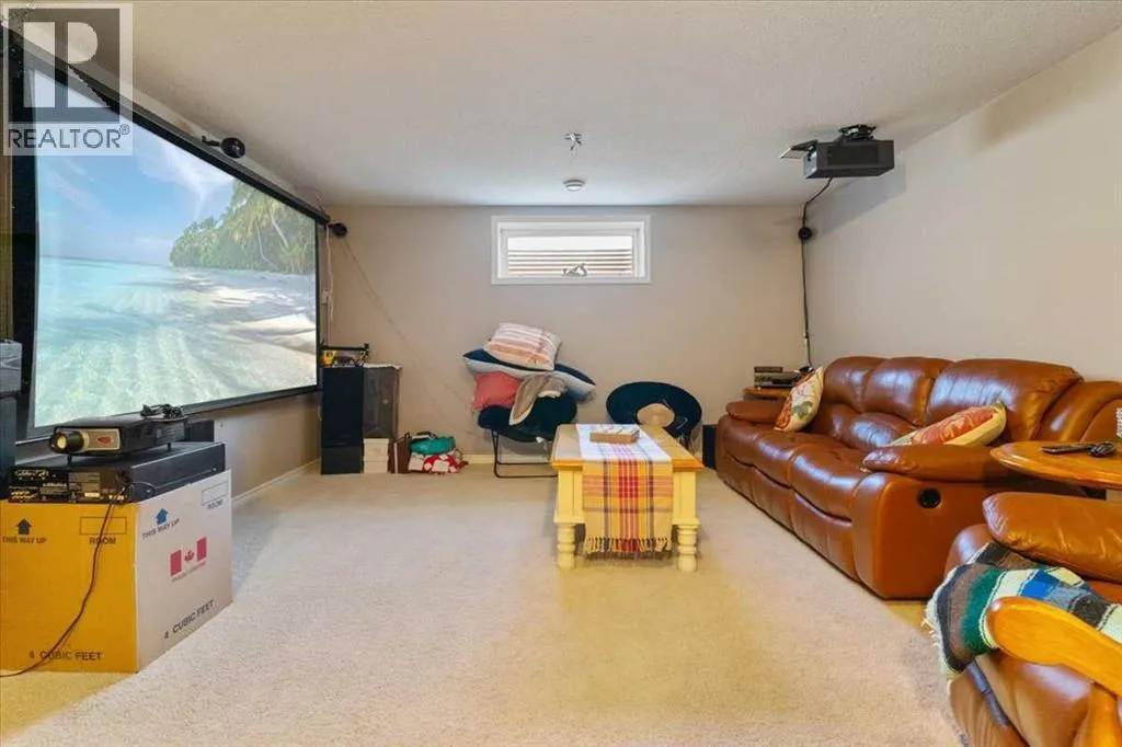 Welcome to this beautiful 2-storey home in Riverstone, where modern comfort meets natural tranquility. With 4 bedrooms, 3.5 baths, and an ideal layout for family living, this property offers space, style, and thoughtful design throughout.The main floor welcomes you with an open-concept layout filled with natural light. The spacious living area flows seamlessly into a well-appointed kitchen and dining space overlooking the private backyard. Convenient main-floor laundry, a 2-year-old air conditioner, and a built-in vacuum make daily living easy and efficient.Upstairs, youâll find a large primary suite with a luxurious ensuite and generous closet space, plus three additional bedrooms for family, guests, or office use. A bonus recreational room provides flexible living â perfect as a playroom, lounge, or home gym.Downstairs, enjoy movie nights in the theater room, complete with an automated projector and screen that stay with the home. Itâs a true entertainment haven, ideal for relaxing or hosting friends.Step outside to a peaceful oasis with no rear neighbours, mature cherry and mayday trees, and direct access to a walking trail right behind the fence. The yard offers privacy and natural beauty in every season.Located in one of the cityâs most sought-after communities, this home provides easy access to parks, schools, and amenities while maintaining the calm, scenic charm Riverstone is known for. Furniture is negotiable, making it even easier to move right in and start enjoying your new home.This is more than just a house â itâs a place where comfort, convenience, and connection to nature come together beautifully. Experience the perfect balance of modern living and peaceful surroundings in this exceptional Riverstone property. (id:27476)