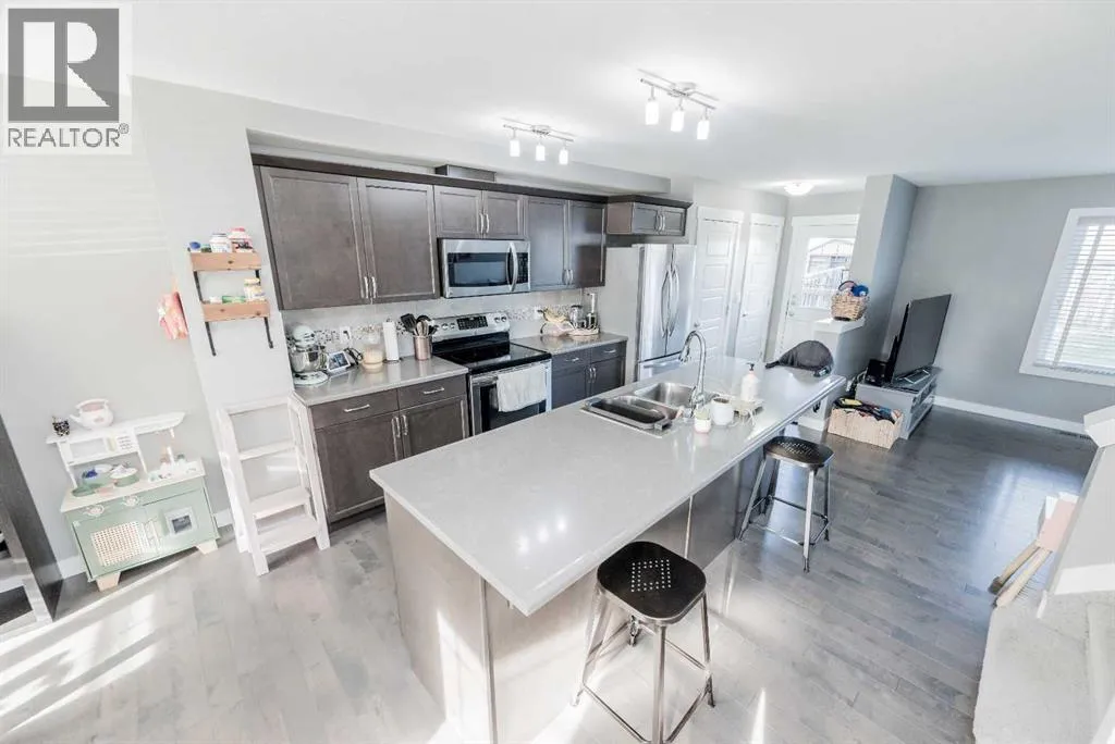This beautiful and modern 2-storey half duplex is tucked away in a peaceful part of the city. The main floor features a bright, open layout with a welcoming living room, spacious dining area, and a stylish kitchen complete with a large island, pantry, and plenty of counter space â perfect for entertaining or family meals. A convenient half bath rounds out the main level.Upstairs, youâll find three comfortable bedrooms, including a spacious primary suite with a walk-in closet and private ensuite. Another full bathroom serves the additional bedrooms, making it ideal for families or guests.The undeveloped basement is ready for your personal touch â create a rec room, home gym, or extra bedroom to suit your needs. Enjoy cool comfort year-round with central A/C, and take advantage of the concrete parking pad out back for easy off-street parking. A perfect blend of style, functionality, and value â this home is ready to welcome its next owners! (id:27476)