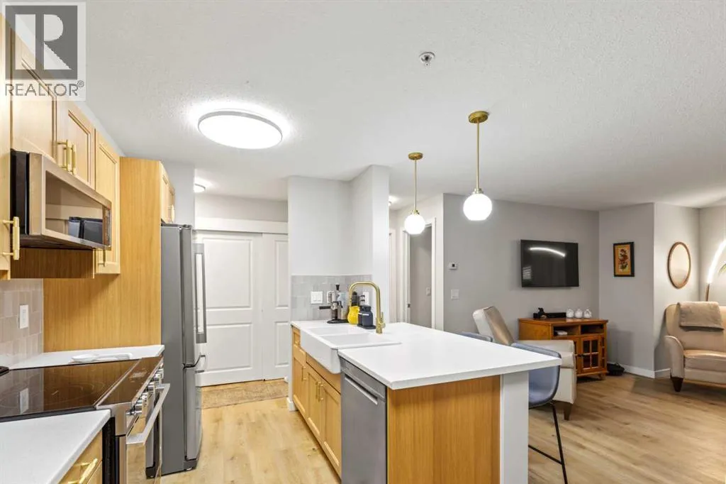 Discover modern, maintenance-free living with this fully renovated main-floor condo in Aurora Estates. Perfect for downsizers or retirees, this unit offers true single-level living with NO STAIRS, and is conveniently located away from busy 92 Street yet only steps from Fresco, Starbucks, Shoppers, and a variety of other amenities. Completely updated from top to bottom with no expense spared, it features a full kitchen upgrade with extended cabinetry, new stainless appliances, a custom pantry with pull-out drawers, farmhouse sink, and brushed gold fixtures. The interior boasts new flooring throughout with zero carpet, fresh paint, new lighting, updated trim and baseboards, and a fully redone bathroom with new vanity and tower storage. Every detail has been thoughtfully chosen to create a stylish, comfortable space thatâs move-in ready and designed for effortless living. If youâre looking for a low-maintenance, high-comfort home in a convenient, walkable location, this main-floor condo delivers on every level. Whether youâre downsizing, retiring, or investing, this turn-key unit is a rare find that combines quality, comfort, and unbeatable convenience. Call today to arrange your private viewing! (id:27476)