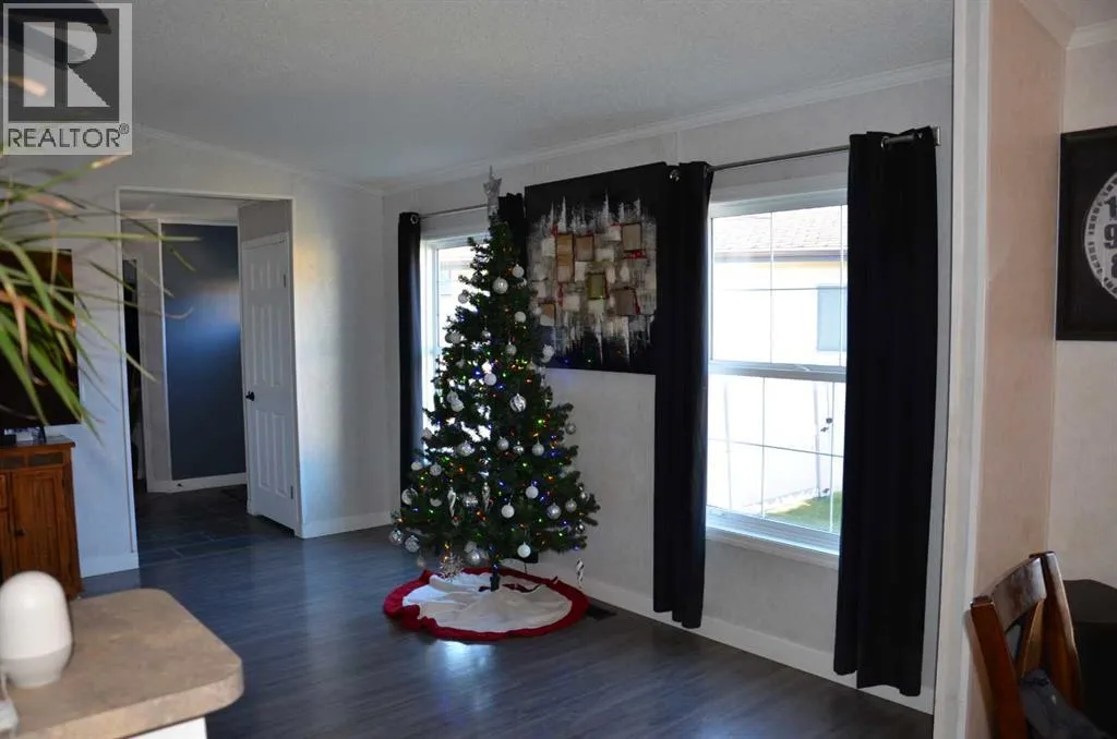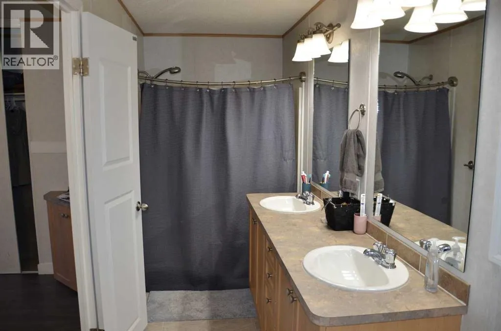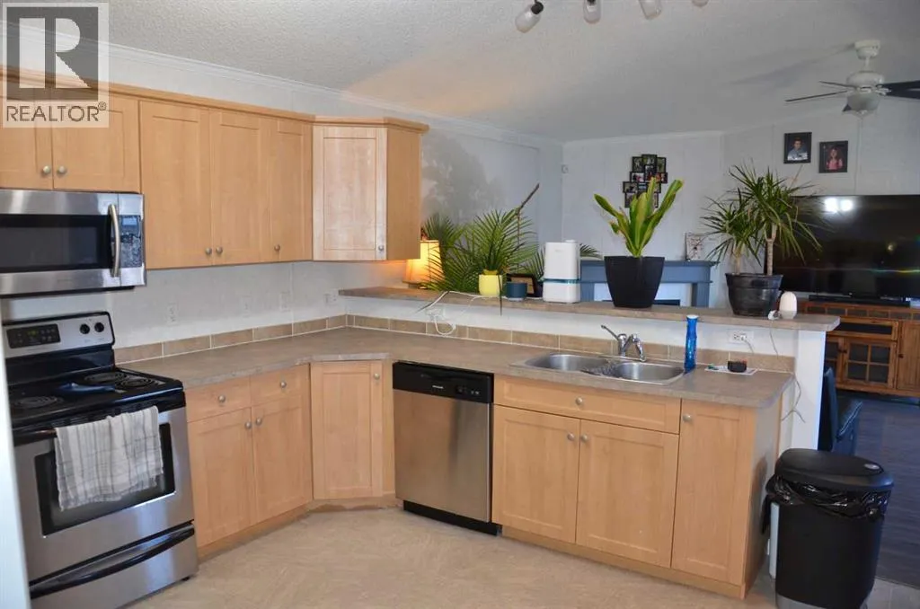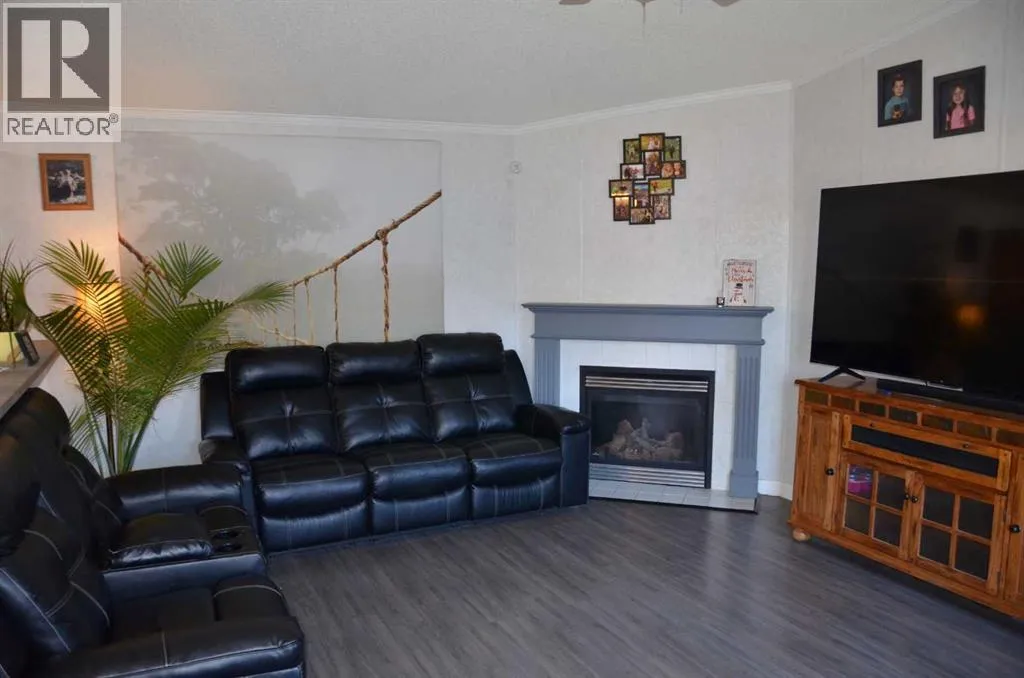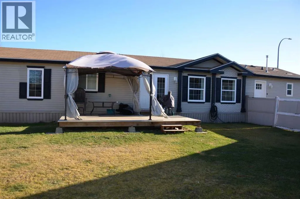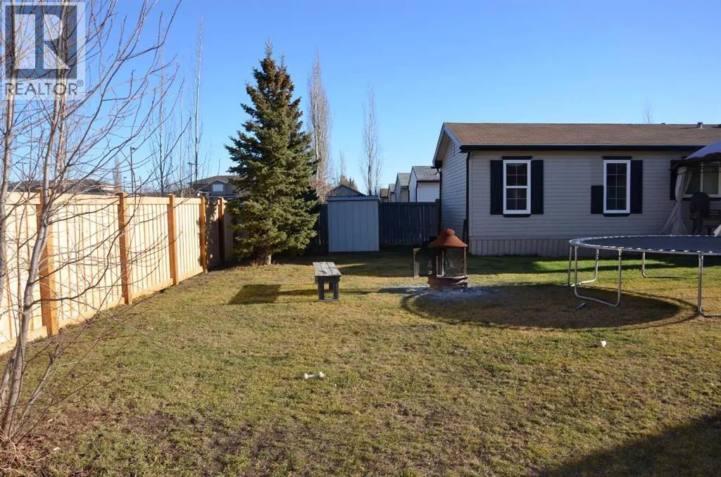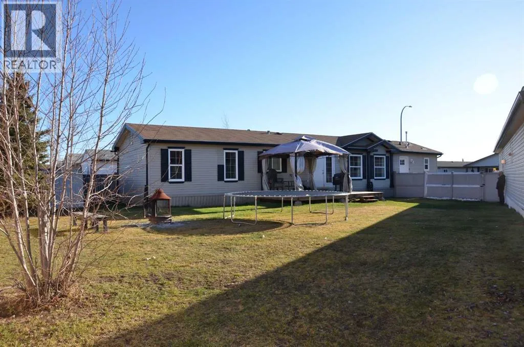 Located on its own large, pie shaped lot with no neighbors behind. This well kept 20 foot wide mobile home had 4 bedrooms and 2 bathrooms. Wide open floor plan with vaulted ceilings. Master bedroom has 4 piece ensuite and his and hers closets. New flooring in bedrooms, new toilets, new hot water tank, new stove and dishwasher. Yard is fully fenced with deck, small shed, and firepit area. (id:27476)