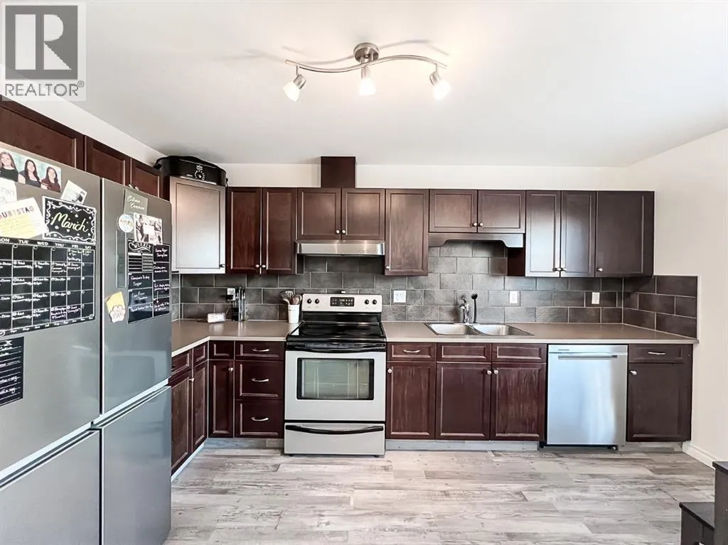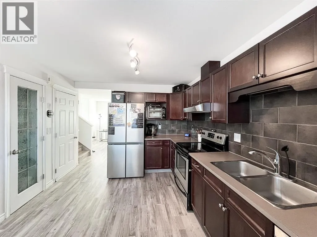 This 2-bedroom, 3.5-bathroom home features a thoughtful and functional layout, designed for comfort and convenience. The main floor features a bright, inviting living room with a cozy gas fireplace, flowing into a modern kitchen with rich dark cabinetry, updated stainless steel appliances, and a comfortable dining area. This level also includes main floor laundry, a 2-piece guest bathroom, and direct access to the back deck and backyard. Upstairs, youâll find two spacious primary bedrooms, each with its own private ensuite. One bedroom features a walk-in closet, while the other includes two separate closets, providing exceptional storage. This layout is ideal for families, roommates, guests, or a smart rental setup. The fully developed basement offers additional living space, featuring a generous rec room, a 4-piece bathroom, a walk-in storage area, a crawl space, and a utility room. Outside, enjoy a fully fenced backyard with a great-sized deck, plus a rear parking pad for added convenience. This move-in-ready property is a fantastic opportunity for first-time buyers or investors. With schools, shopping, walking trails, and a bus stop steps away, this location perfectly blends comfort, practicality, and lifestyle. Donât miss out, book your showing today! (id:27476)
