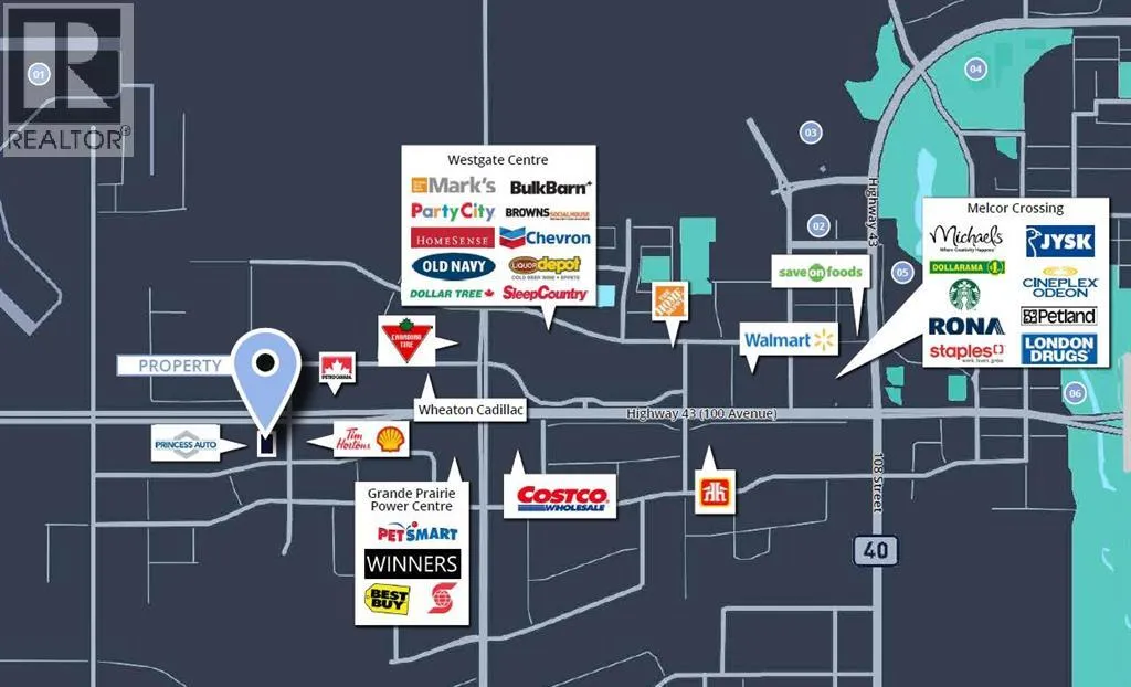 Situated in one of Grande Prairieâs strongest retail areas, this 3.52-acre Arterial Commercial (CA) site offers exceptional visibility along 100 Avenue and features a 31,549 sq. ft. building (28,800 sq. ft. footprint) built in 2012, supported by approximately 88 parking stalls. Surrounded by national and regional tenants along a major eastâwest commercial corridor, the property benefits from high daily traffic and steady activity from a regional catchment of roughly 300,000 people extending into northern British Columbia. This is a prime opportunity for high-exposure retail or service-commercial use, with the property also available for lease at $20 PSF. (id:27476)