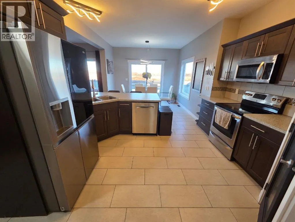Welcome to this beautiful two storey home in the desirable Cobblestone community, offering privacy with no rear neighbours and an easement on one side. Featuring air conditioning and a double attached garage, this open-concept home is perfect for modern living. The main floor boasts a spacious living area flooded with natural sunlight & feature gas fireplace. The bright kitchen showcases stainless steel appliances, corner pantry, and plenty of cupboards and counter space including seating. The dining space provides access to the deck and backyard while a half bath adds convenience to your main floor. Upstairs, youâll find a cozy bonus room perfect for playroom or tv room. The primary suite hosts a 4pc ensuite bath plus walk in closet while still providing space for a king size bed & furniture. Two additional bedrooms plus a full bathroom complete the upper level. The partially developed basement includes a fourth bedroom, providing extra space for family or guests. Enjoy the outdoors in the fully fenced and landscaped yard, ideal for relaxing or entertaining. Located in a great neighbourhood close to schools, shopping, and amenities, this home combines comfort, style, and convenience, it's perfect for your next move! Book your showing today! (id:27476)