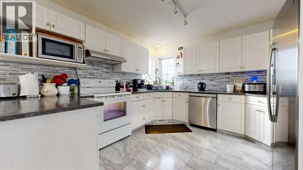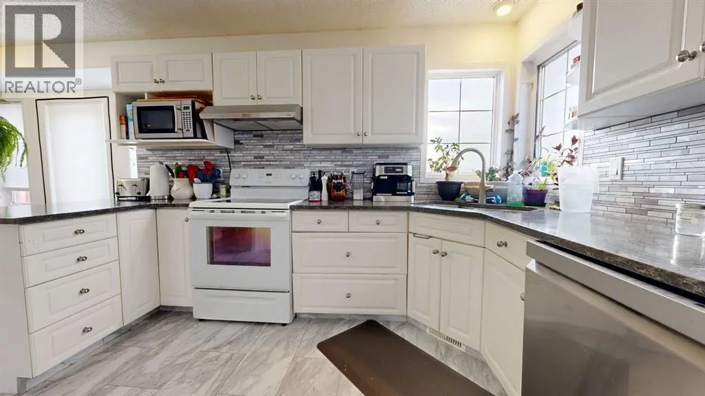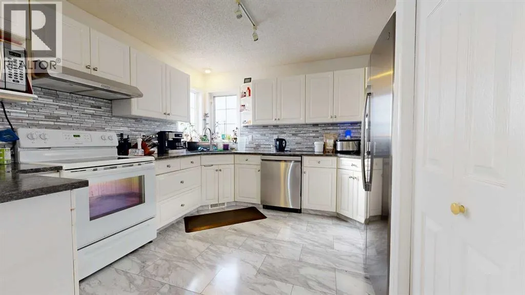 Welcome to this beautifully updated 4 level split in Crystal Heights, tucked away in a quiet cul-de-sac and surrounded by amenities everyone loves. Step inside to a bright main floor featuring updated flooring, a spacious living room, and an updated kitchen complete with modern cabinets and sleek quartz countertops. This layout offers room for the whole family with a large family room on the 4th level, perfect for movie nights or kidsâ space, plus generously sized bedrooms throughout. The lower level also features in-floor heating for added comfort. Outside, enjoy a big backyard that is ideal for pets, kids, or summer gatherings. with the large pie-shaped lot and 2 level decking. For added convenience, your double attached garage has a radiant heater, and provides access to the third level entry and laundry room. Youâre also walking distance to schools, parks, walking trails, and shopping, making this location hard to beat. A well-kept, move-in-ready home in one of Grande Prairieâs most family friendly neighbourhoods! (id:27476)