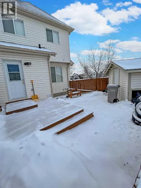 3 bed 2.5 bath END unit townhome in Pinnacle. Enter into bright front facing living room. Convenient half bath on main level. Separate dining area. Functional kitchen with black appliances. Laundry off the kitchen at the rear entrance. Large primary bedroom up stairs with 4 piece ensuite bathroom. 2 other bedrooms and 2nd full bathroom upstairs. Unfinished basement offers lots of heated storage. Full fenced backyard with storage shed and rear parking. *Pet friendly with $50/mo pet fee* Application required prior to viewing. (id:27476)