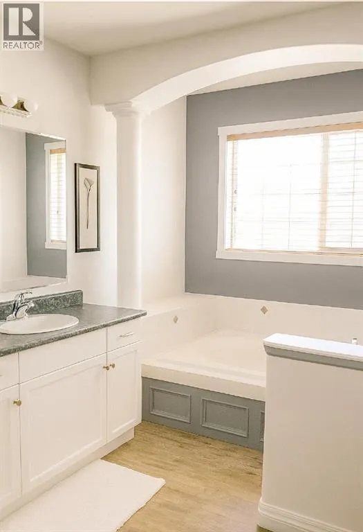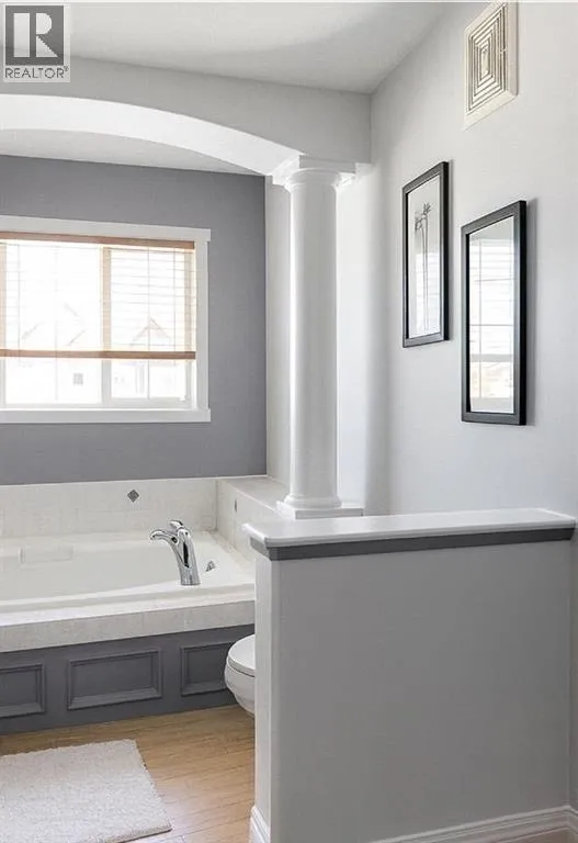 This stunning split level home blends warmth, character, and modern functionality, featuring impressive vaulted ceilings, elegant architectural pillars, and an abundance of natural light from large west and south facing windows that make every room feel bright and inviting. The spacious entry welcomes you with a large coat closet, leading into an open concept living area finished with rich bamboo and hardwood flooring throughout, no carpet anywhere. A cozy fireplace anchors the living room, flowing seamlessly into the dining area with garden doors to the deck and fenced yard, and a well planned kitchen offering a raised eating bar, maple cabinetry, a large corner pantry, and generous counter space. The primary bedroom is a comfortable retreat with a walk-in closet and private access to the luxurious main bathroom, complete with a 60" Ã 42" whirlpool jet tub, separate 36" shower, and decorative columns. Lower levels provide exceptional versatility with a large bedroom suite featuring its own walk-in closet and bathroom, plus an additional bedroom and a fourth level with laundry and ample flexible space for storage, a gym, or a man cave. Outside, enjoy plenty of rear parking, a private deck off the dining room, a fenced yard, and room to build a garage, with an extra lower level already wired and open for future development making this home the perfect blend of comfort, style, and long term potential. (id:27476)