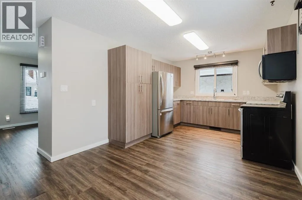 Welcome to this beautifully updated four-level split, ideally located in the highly desirable South Patterson neighbourhood. This inviting, family-friendly home offers a well-designed layout with space for everyone. Upon entry, youâre greeted by a bright and open living room flowing seamlessly into a modern kitchenâperfect for everyday living and effortless entertaining. The upper level features three generously sized bedrooms, all equipped with blackout blinds, along with a full bathroom. The lower level offers a warm and welcoming retreat, complete with a wood-burning fireplace, an additional full bathroom and laundry. The finished lowest level adds even more versatility with additional living space, perfectly suited for a playroom, home gym, or home office. Outside, enjoy a large, open backyard with no rear neighbours, fully fenced for privacy. Recent updates include newer windows, hot water tank, fridge, and microwave. Located on a quiet street close to schools, parks, walking trails, and shopping, this home truly checks all the boxes for comfortable family living in one of Grande Prairieâs most sought-after communities. (id:27476)