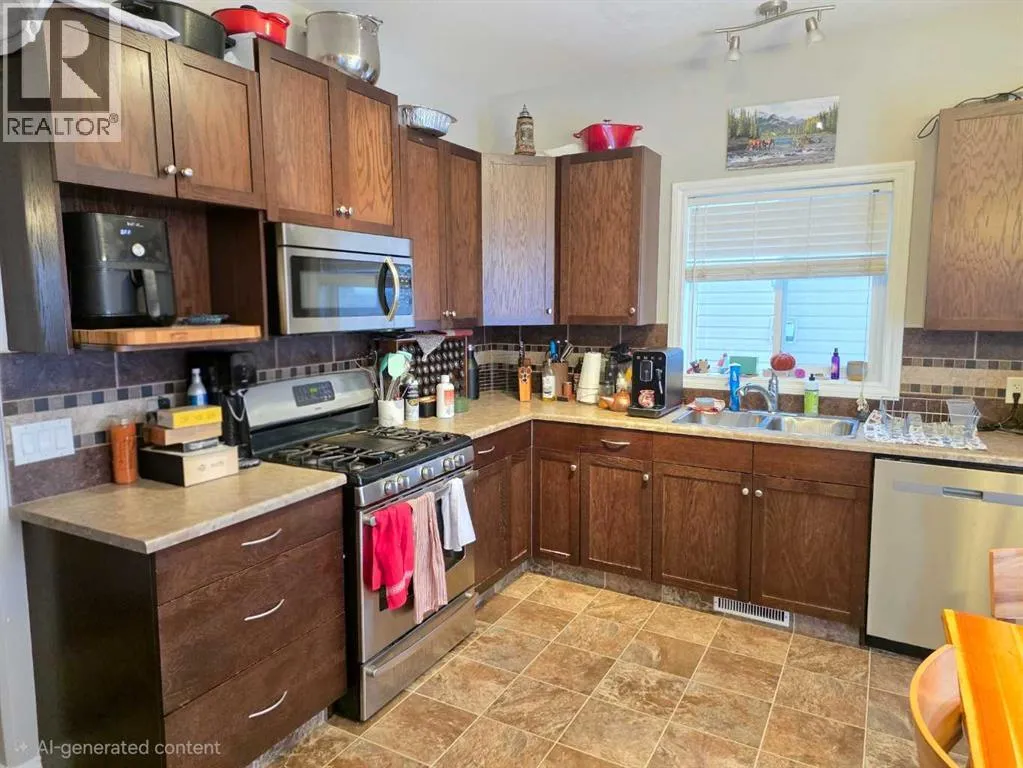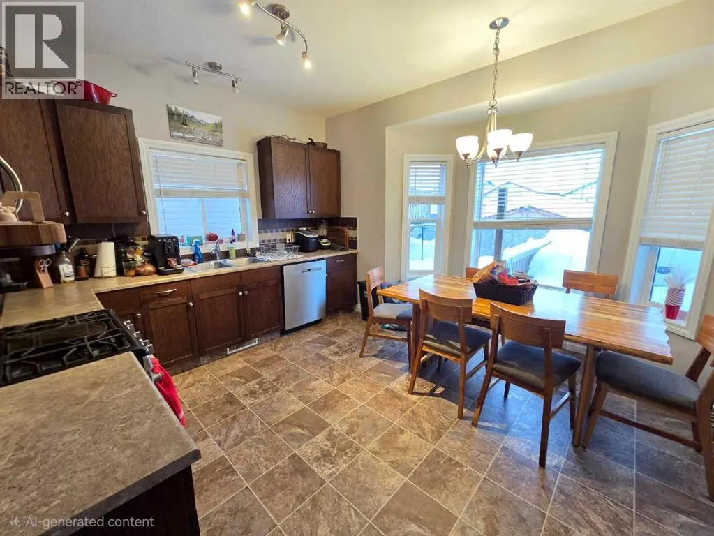 Welcome to this modern 1,447 sq. ft. two-storey home located in desirable Countryside North. The spacious front living room features 9-foot ceilings and a cozy gas fireplace, creating a bright and inviting atmosphere. The kitchen is both stylish and functional, showcasing Cappuccino Oak cabinetry. Upstairs offers three well-sized bedrooms and a full bathroom, including a generous primary bedroom complete with a walk-in closet and full ensuite. The basement is open and ready for your future development ideas. Rear alley access provides convenient double parking. Walking distance to Mother Theresa school. (id:27476)